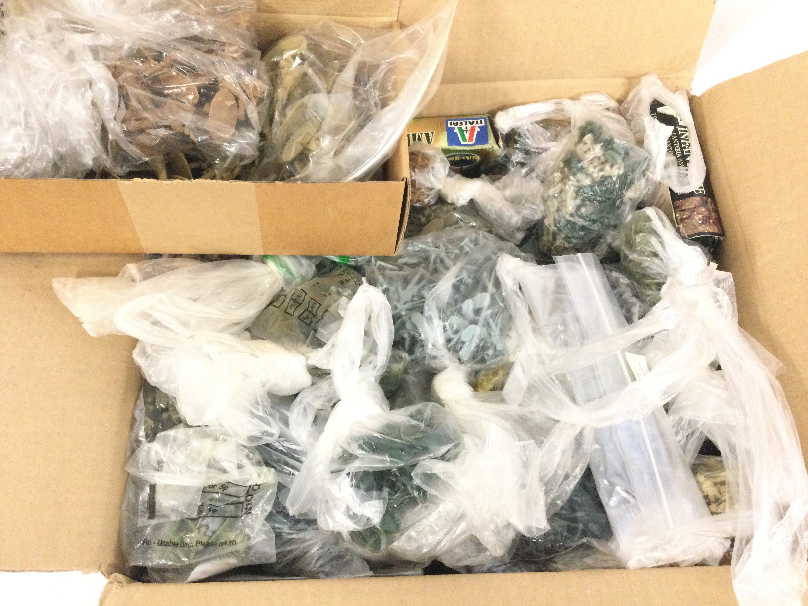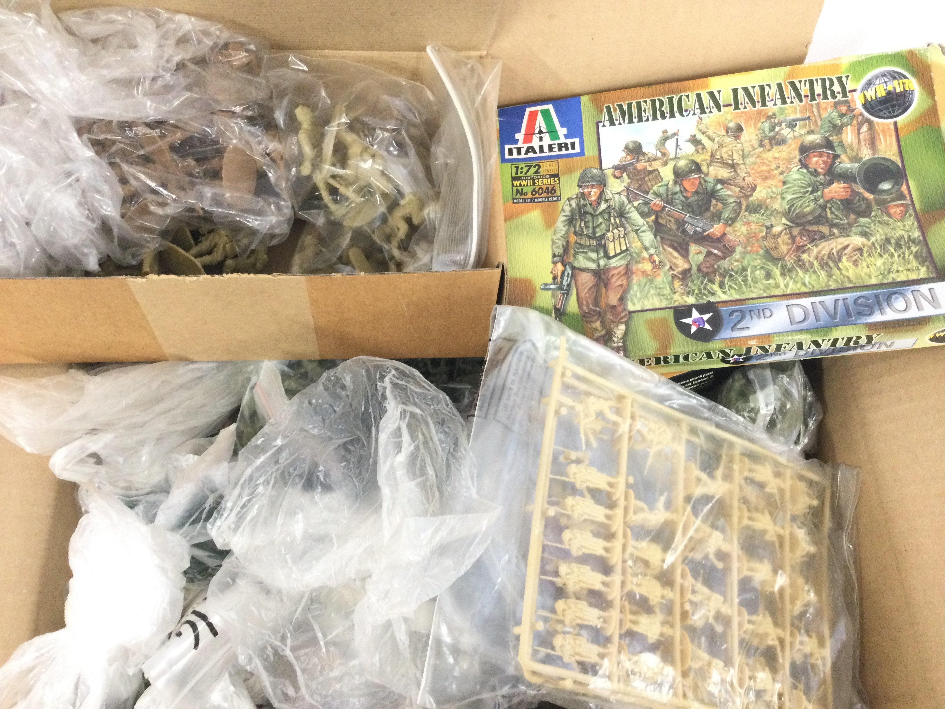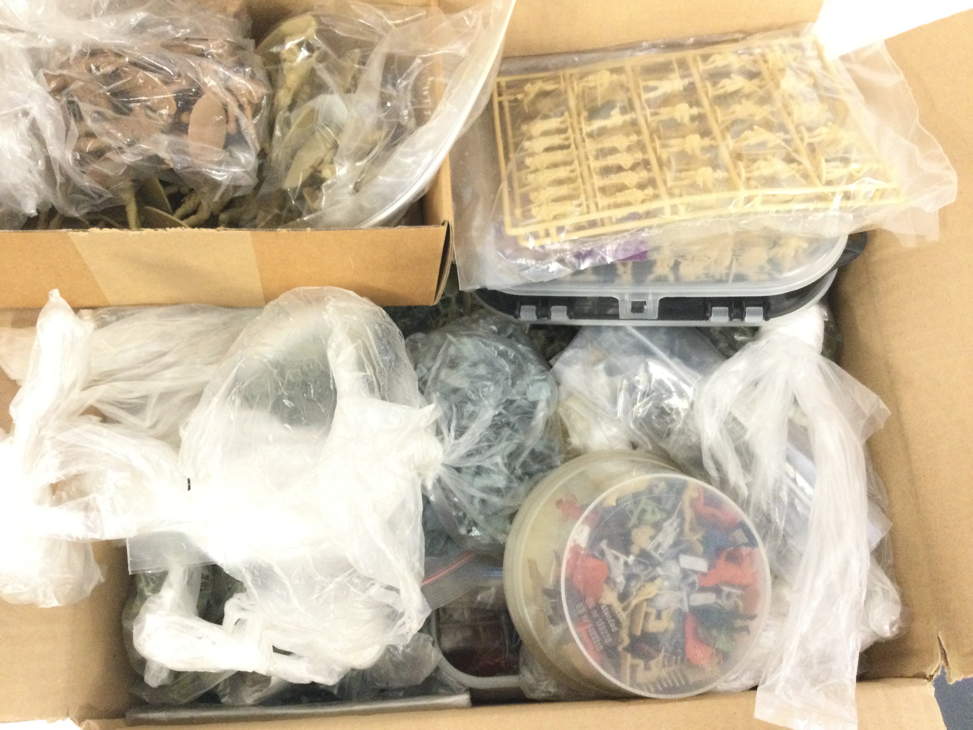 A Box Containing a Large Collection of small Plastic Model Kit Soldiers.
