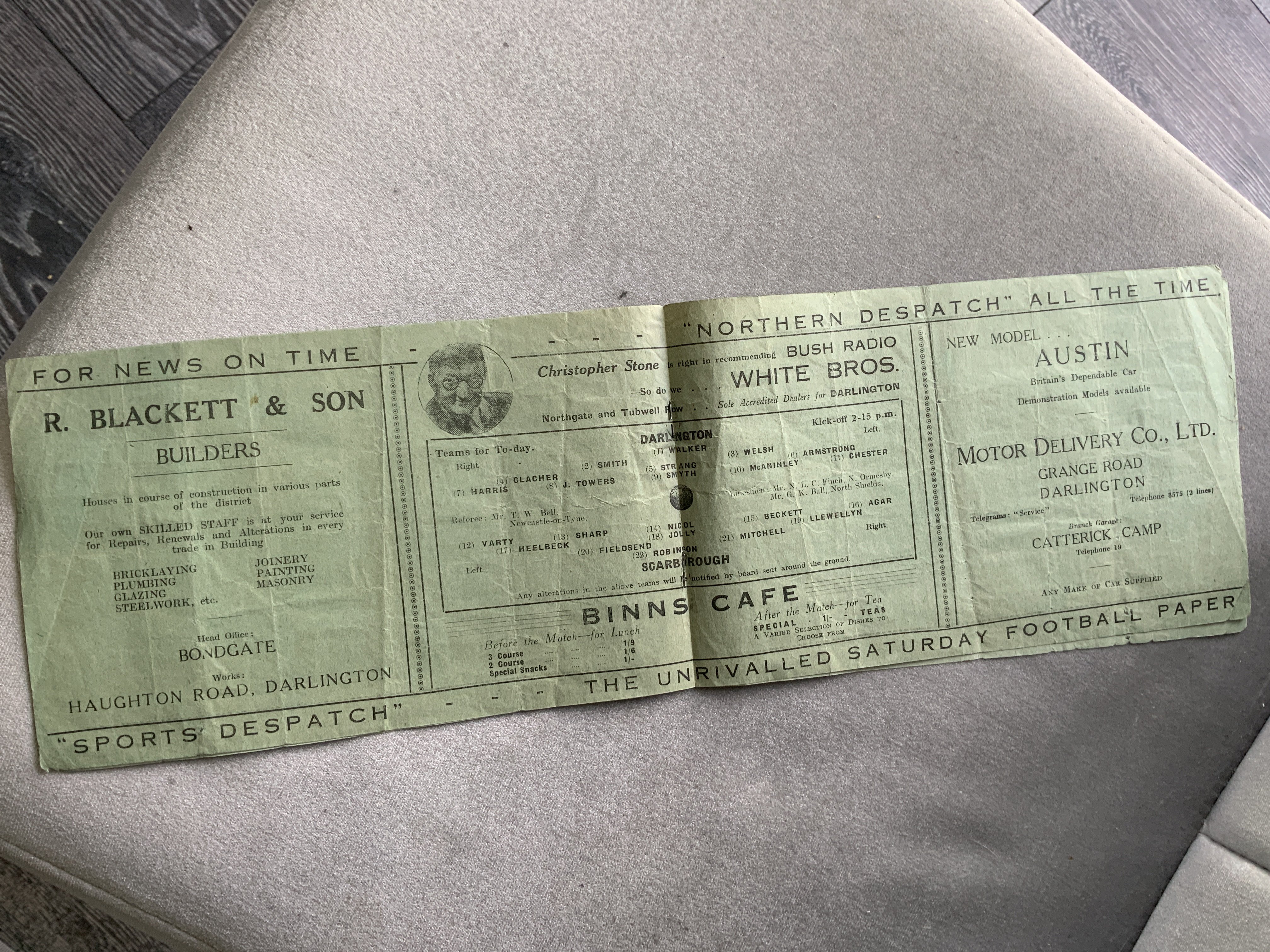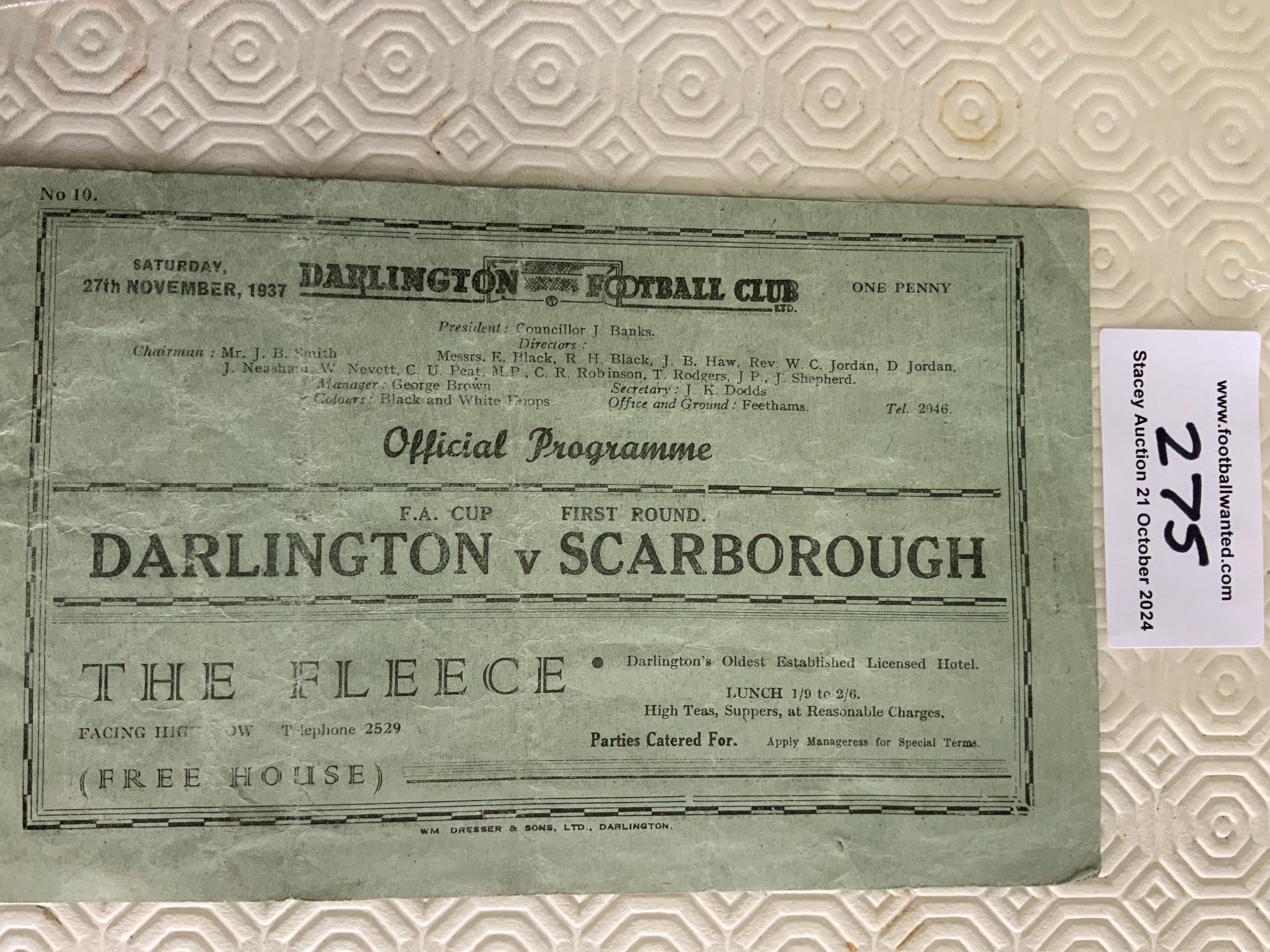 37/38 Darlington v Scarborough FA Cup Football Programme: Good condition first round match with no team changes. Folding.