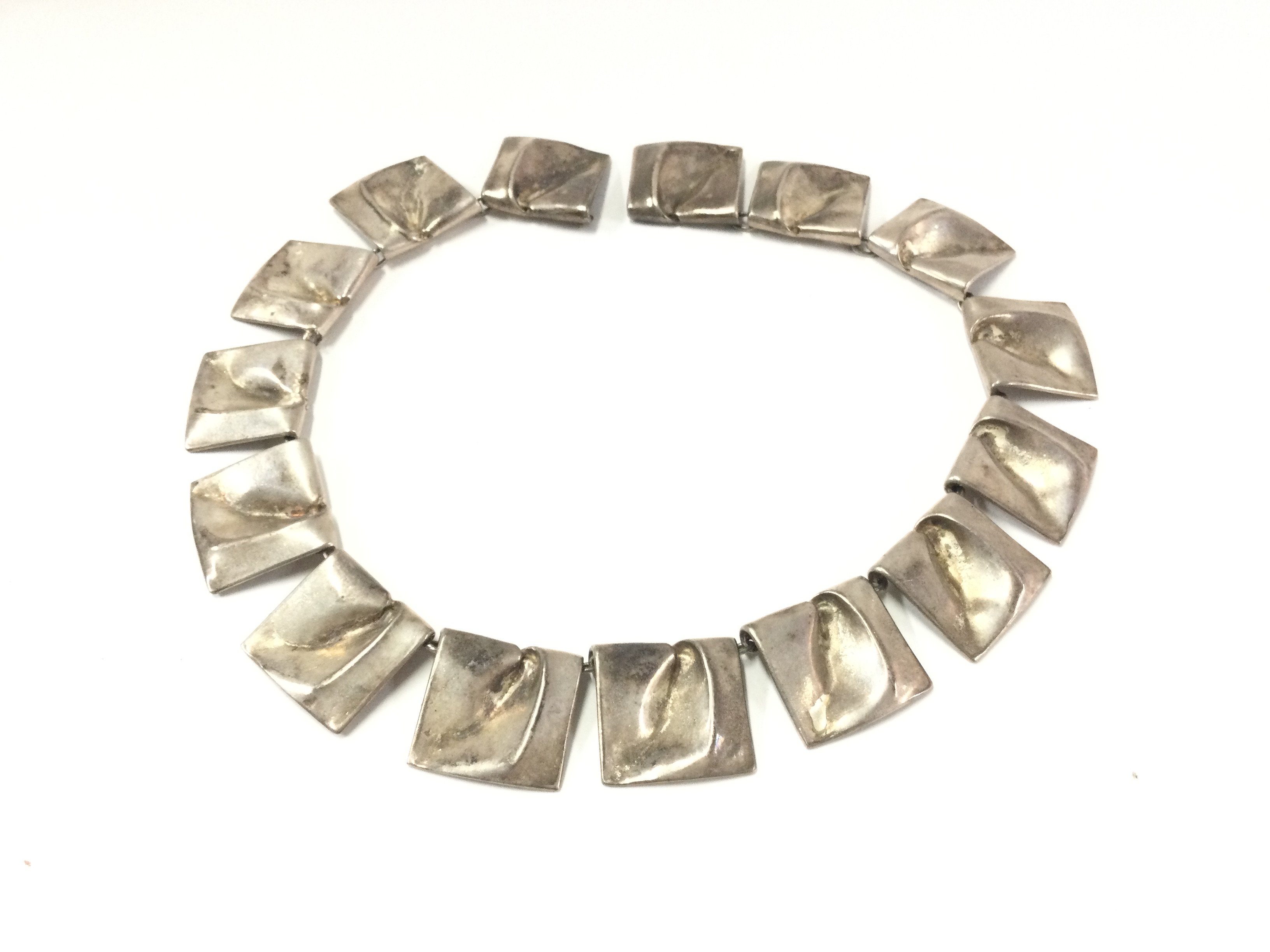 A Björn Weckström For Lapponia Sterling Silver 'Planetaariset Laaksot' (Planetary Valleys) Collar Necklace with hallmarks. Made famous by Carrie fisher who played Princess Leia in the original Star Wars trilogy in 1977. (Damage to one link in the necklace.