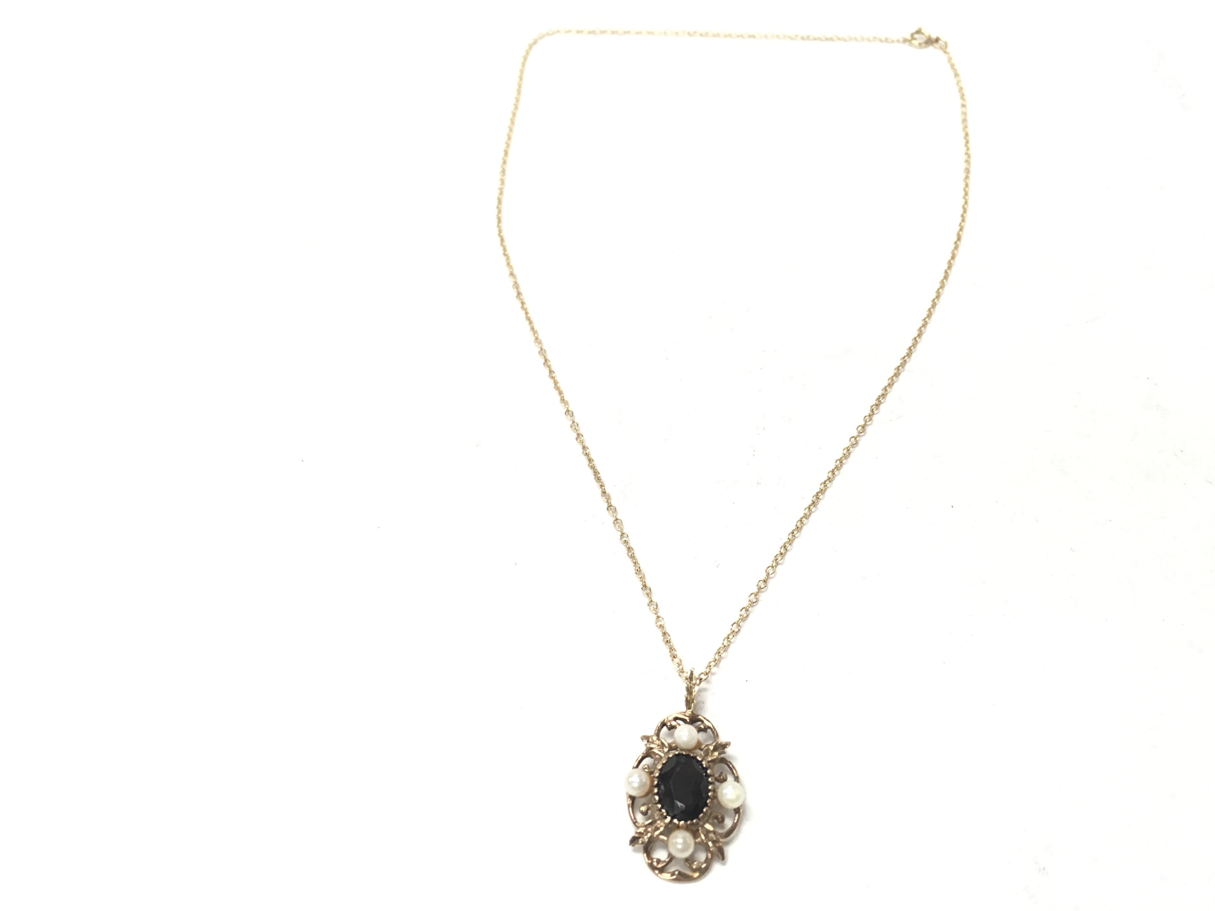 A 9ct gold chain and pendant set with pearls. 3.46g. Postage A