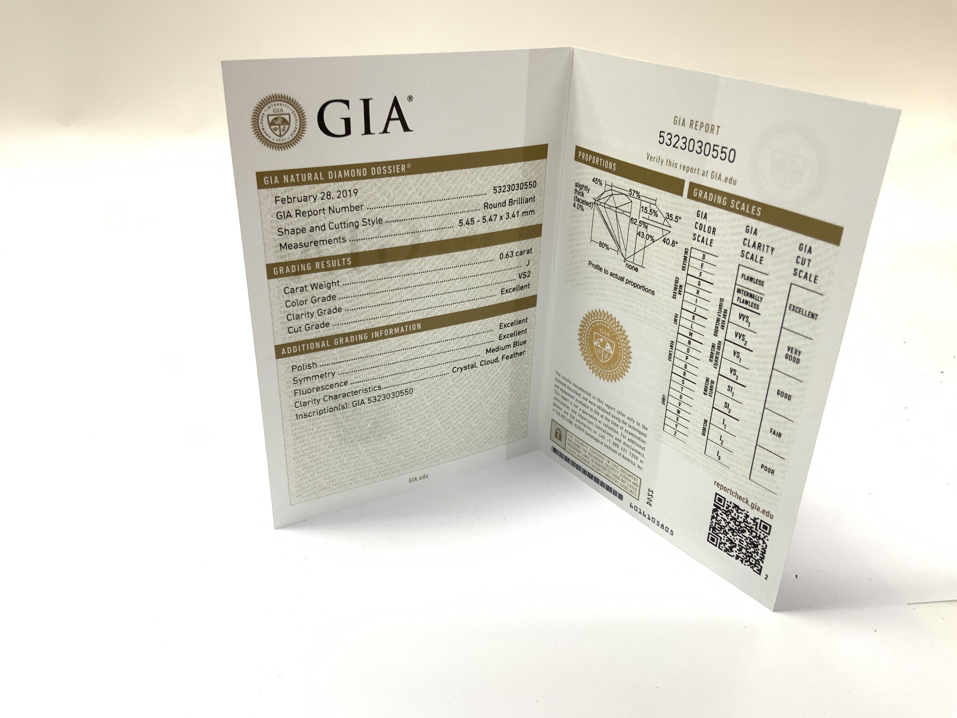 A 77 diamond solitaire ring with box. The diamond with GIA certificate. 0.63 of carat, colour J VS2, ring size approximately Q. Postage category A.