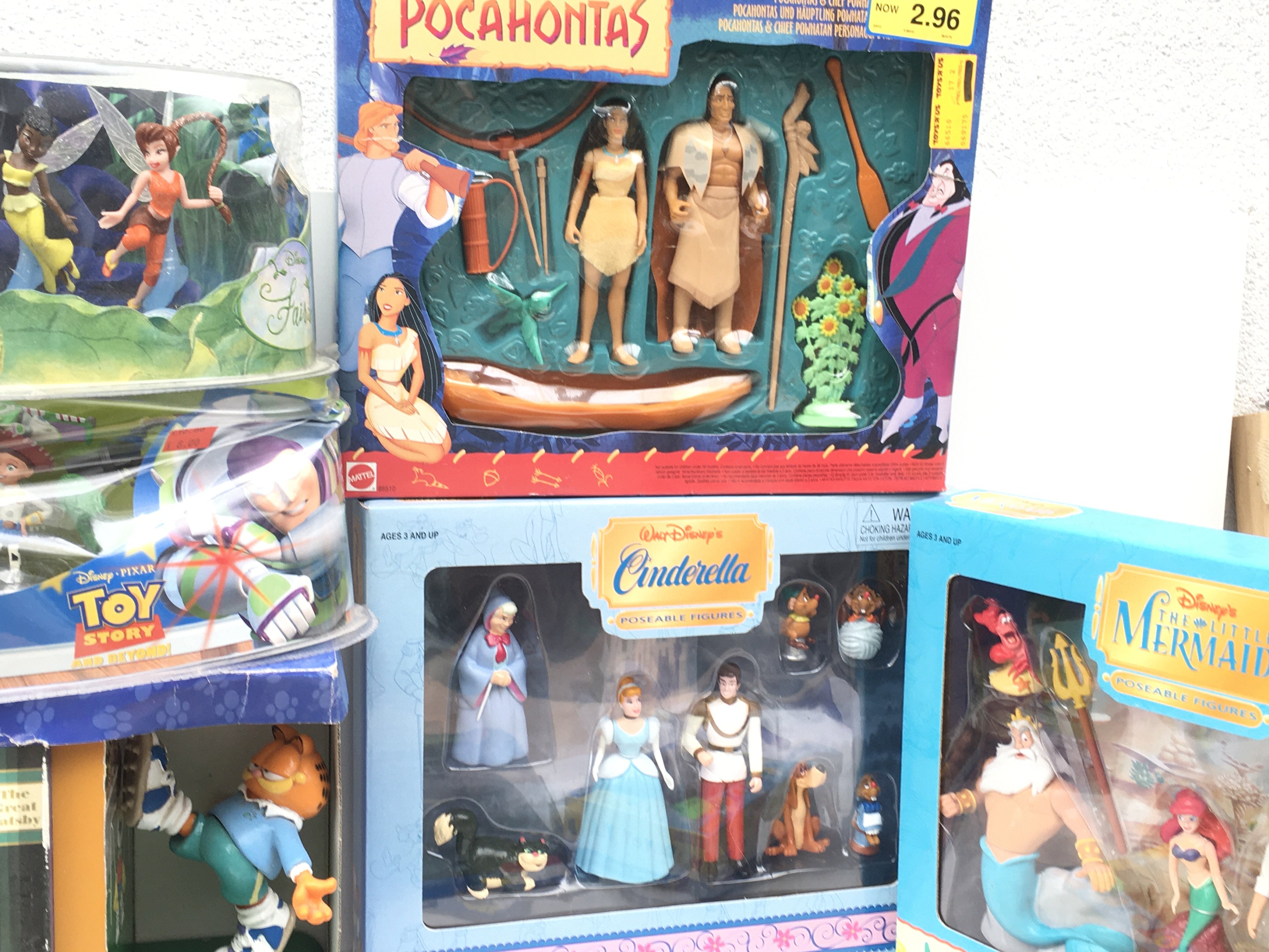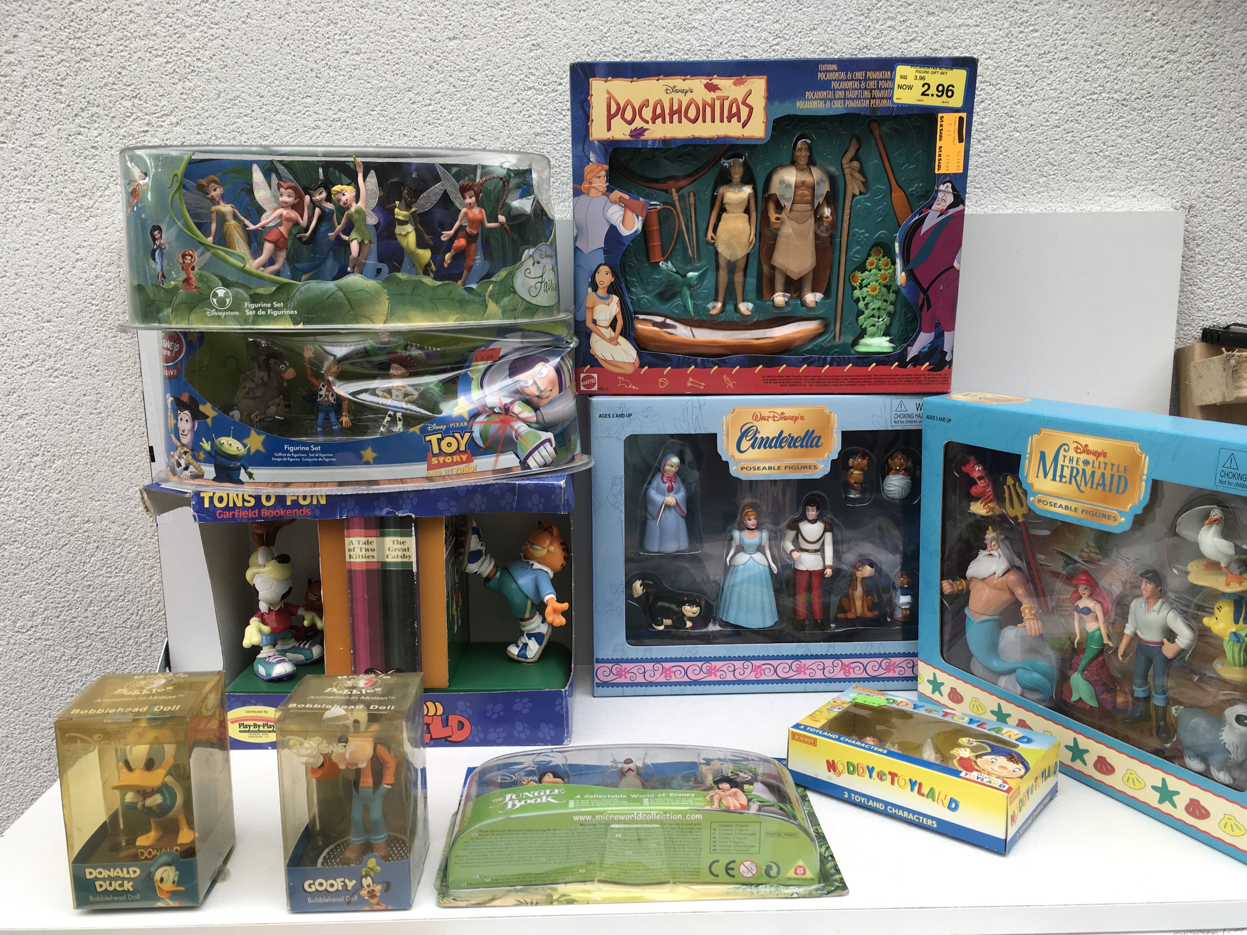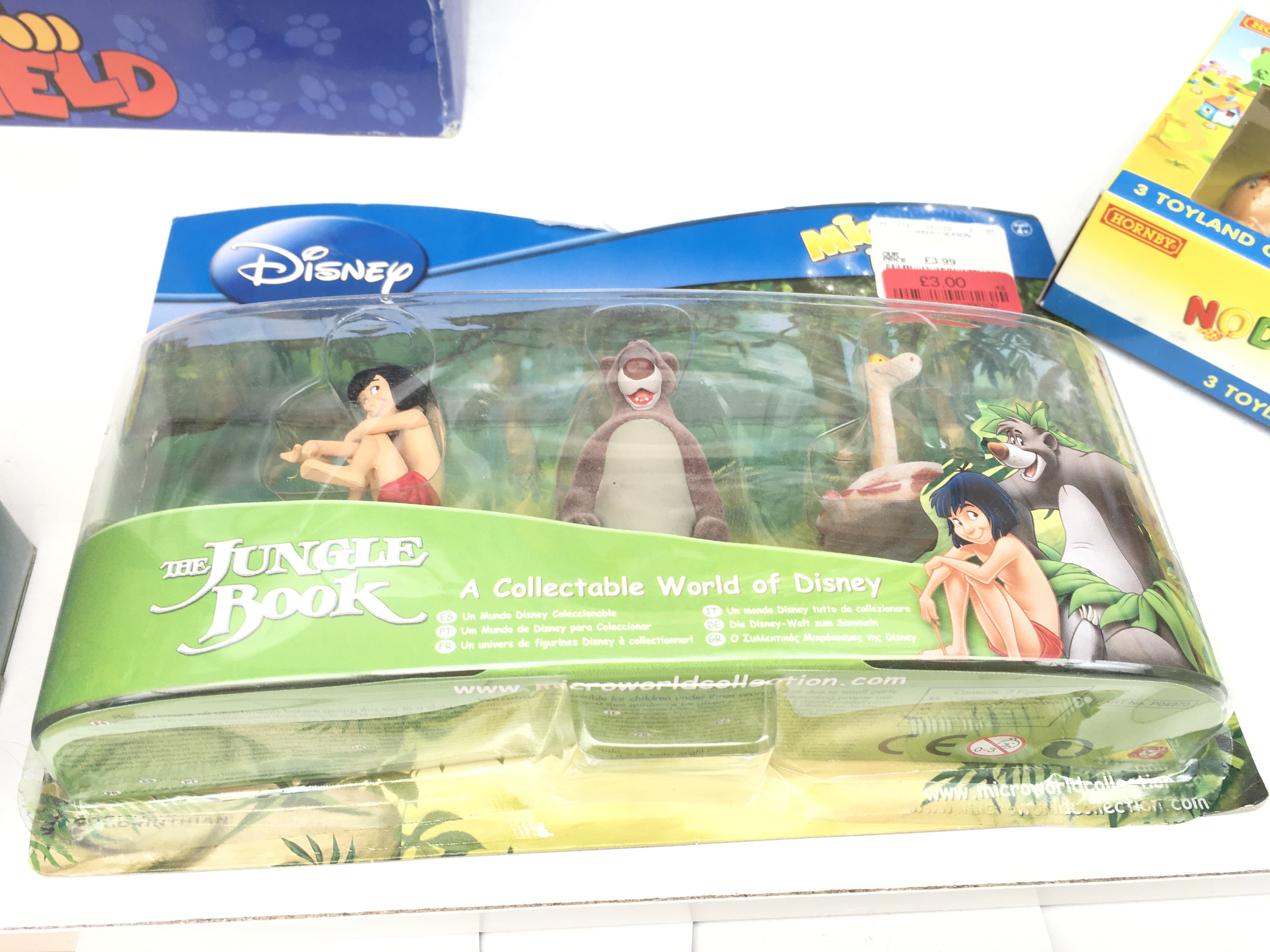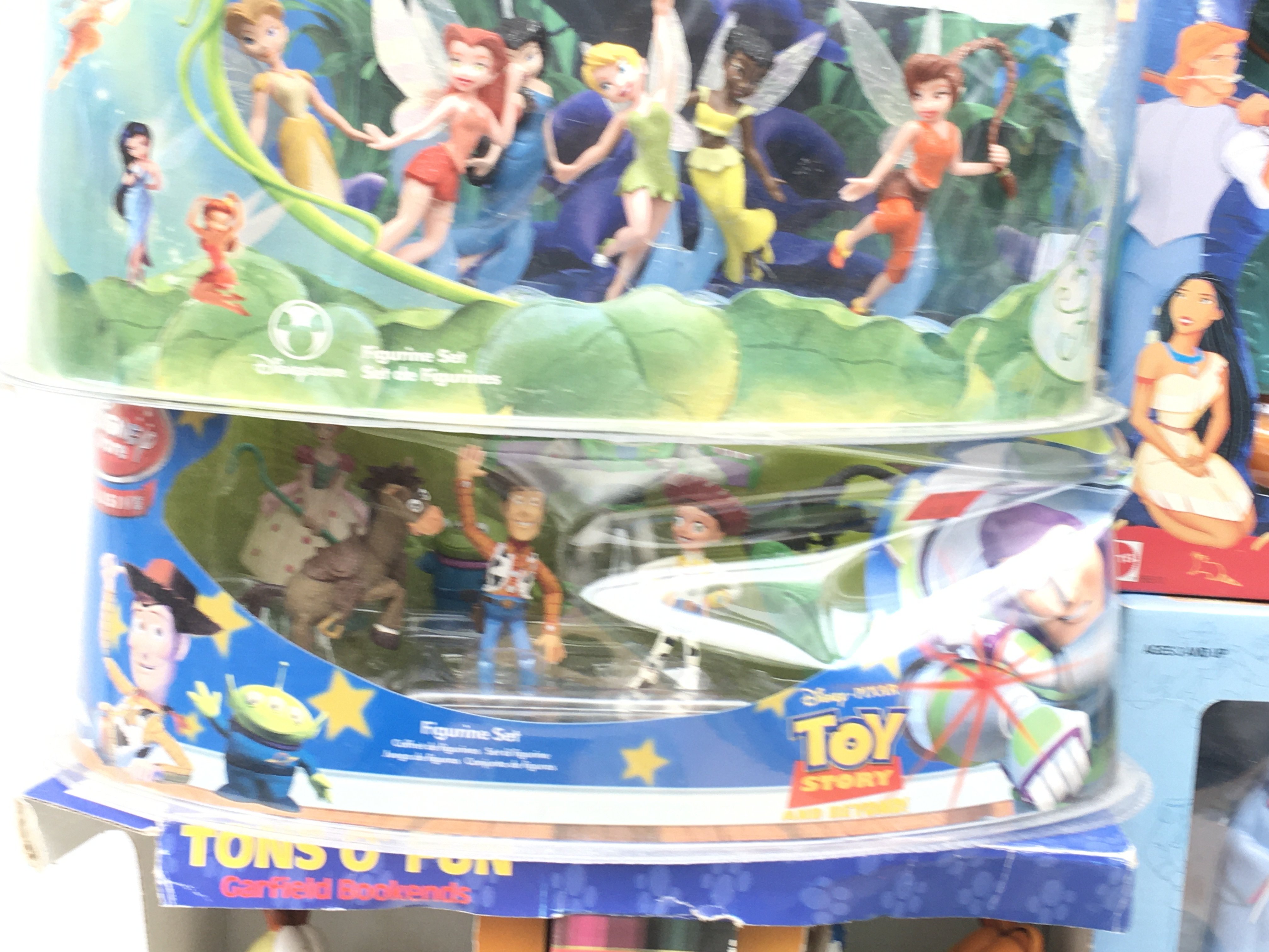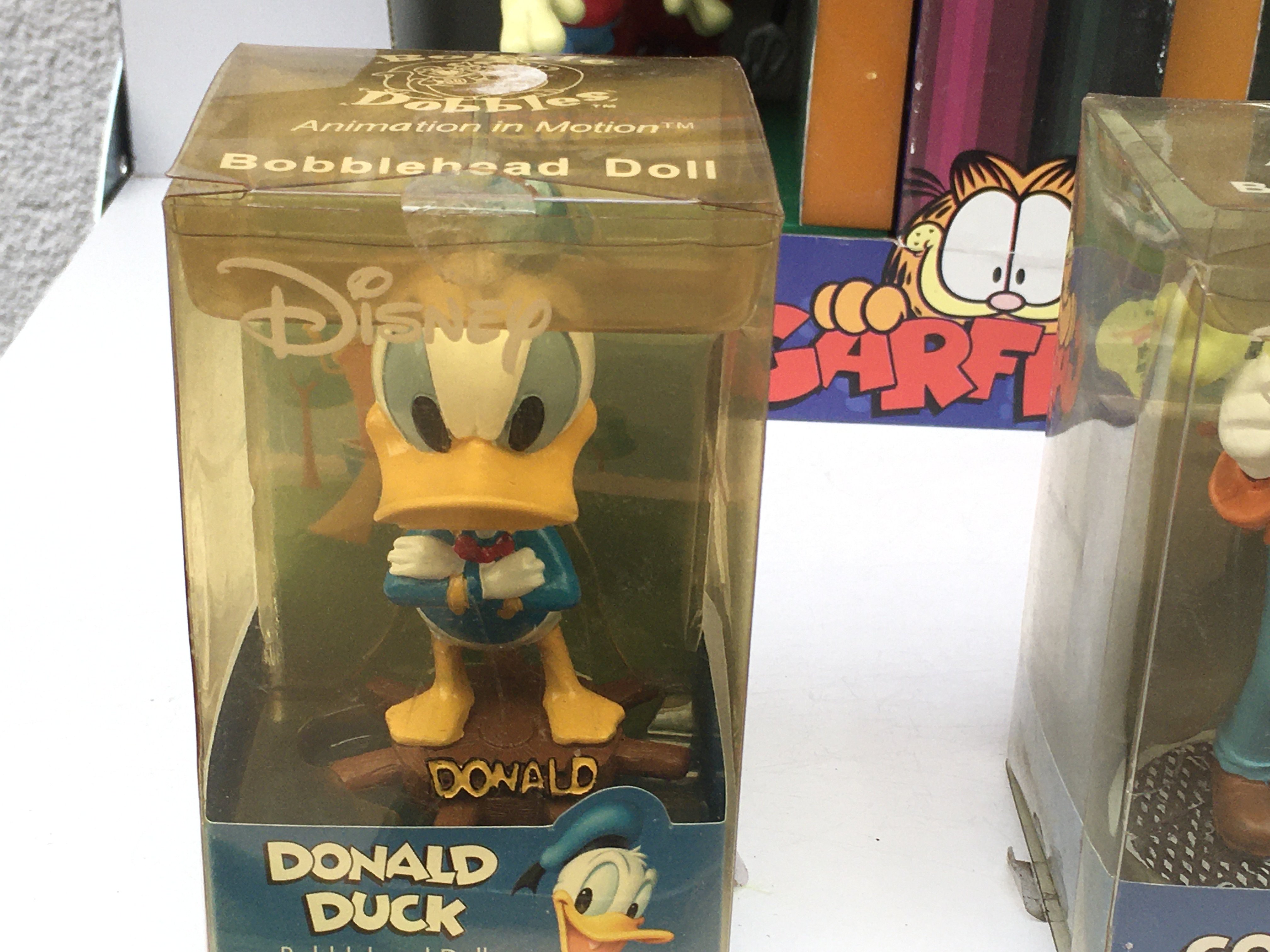 A collection of of 10 boxed Disney figures and sets. Including 2 original bobble heads ..Garfield bookends..and others.