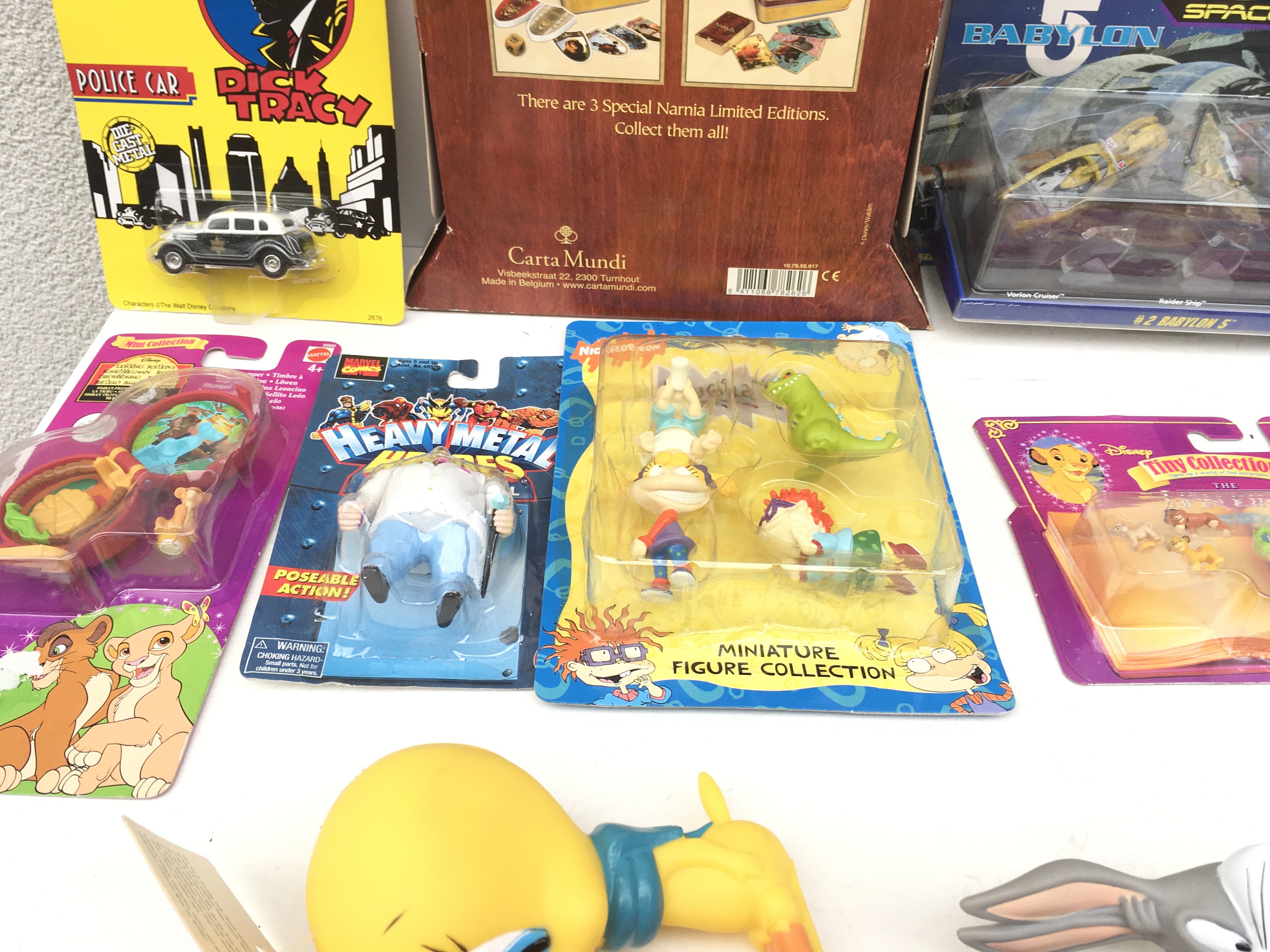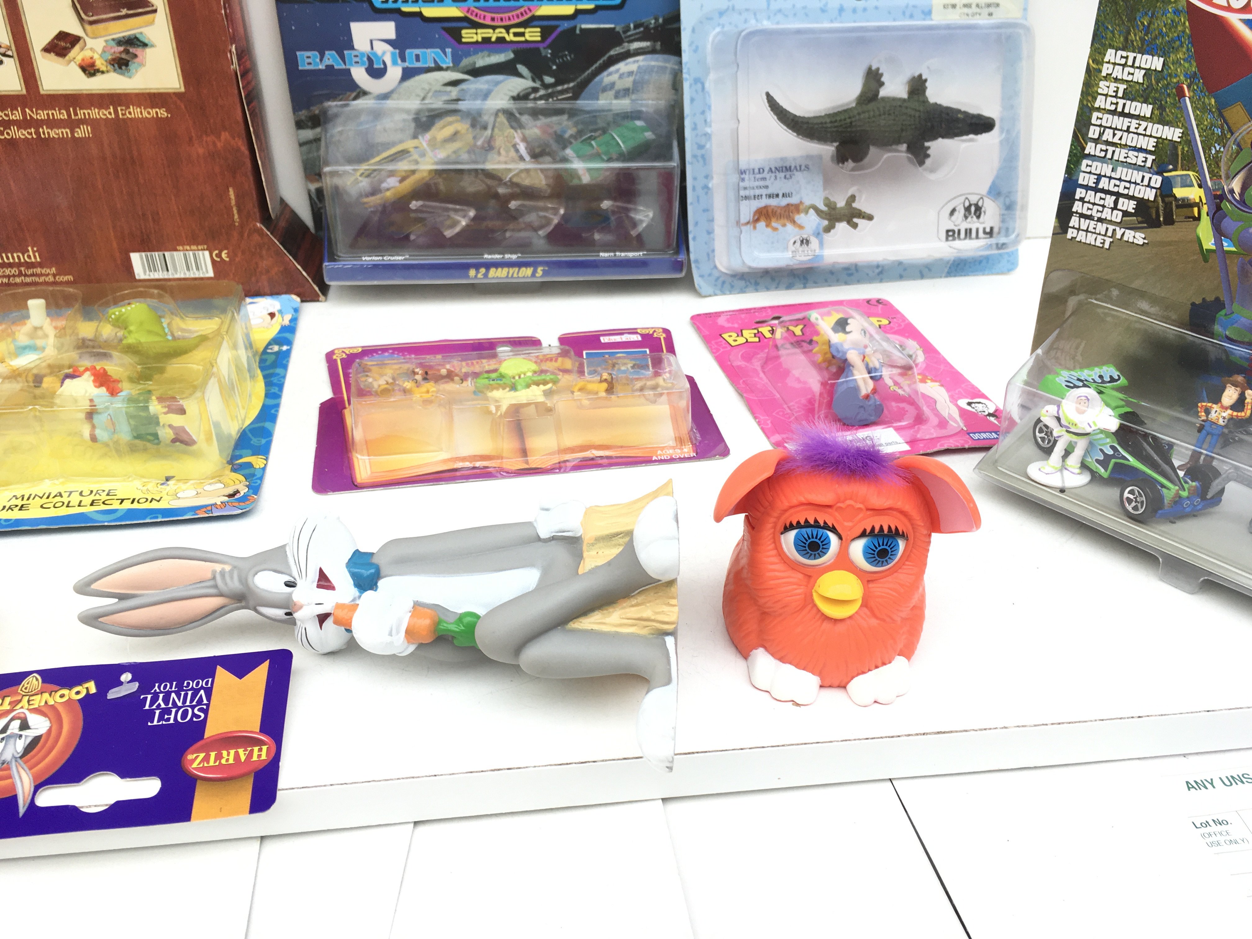 A collection of 13 film related character toys, mostly boxed. Includes Toy Story..Narnia..Babylon 5 and others.