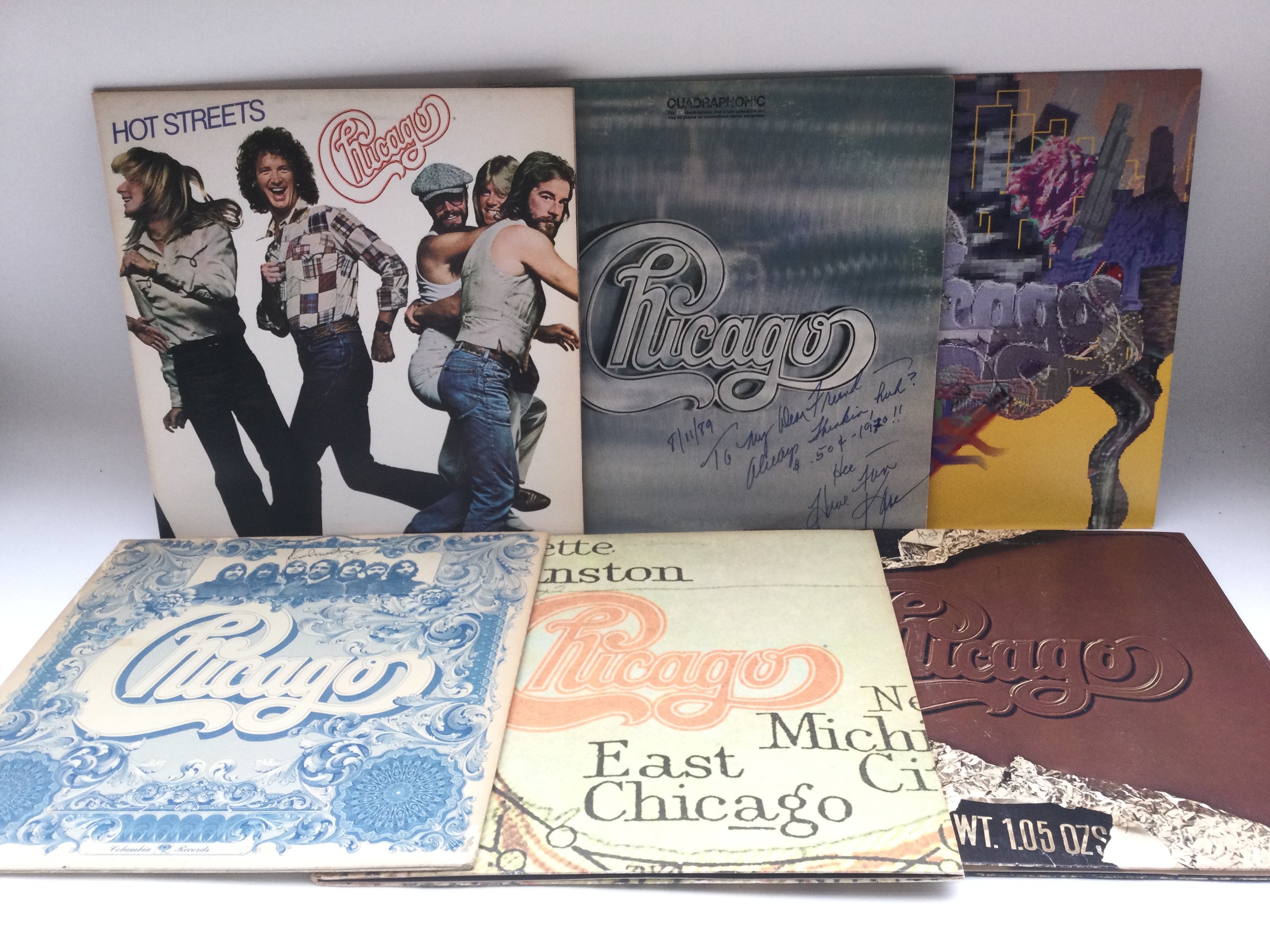 Six LPs by Chicago including a Quadrophonic pressing of 'Chicago II'.