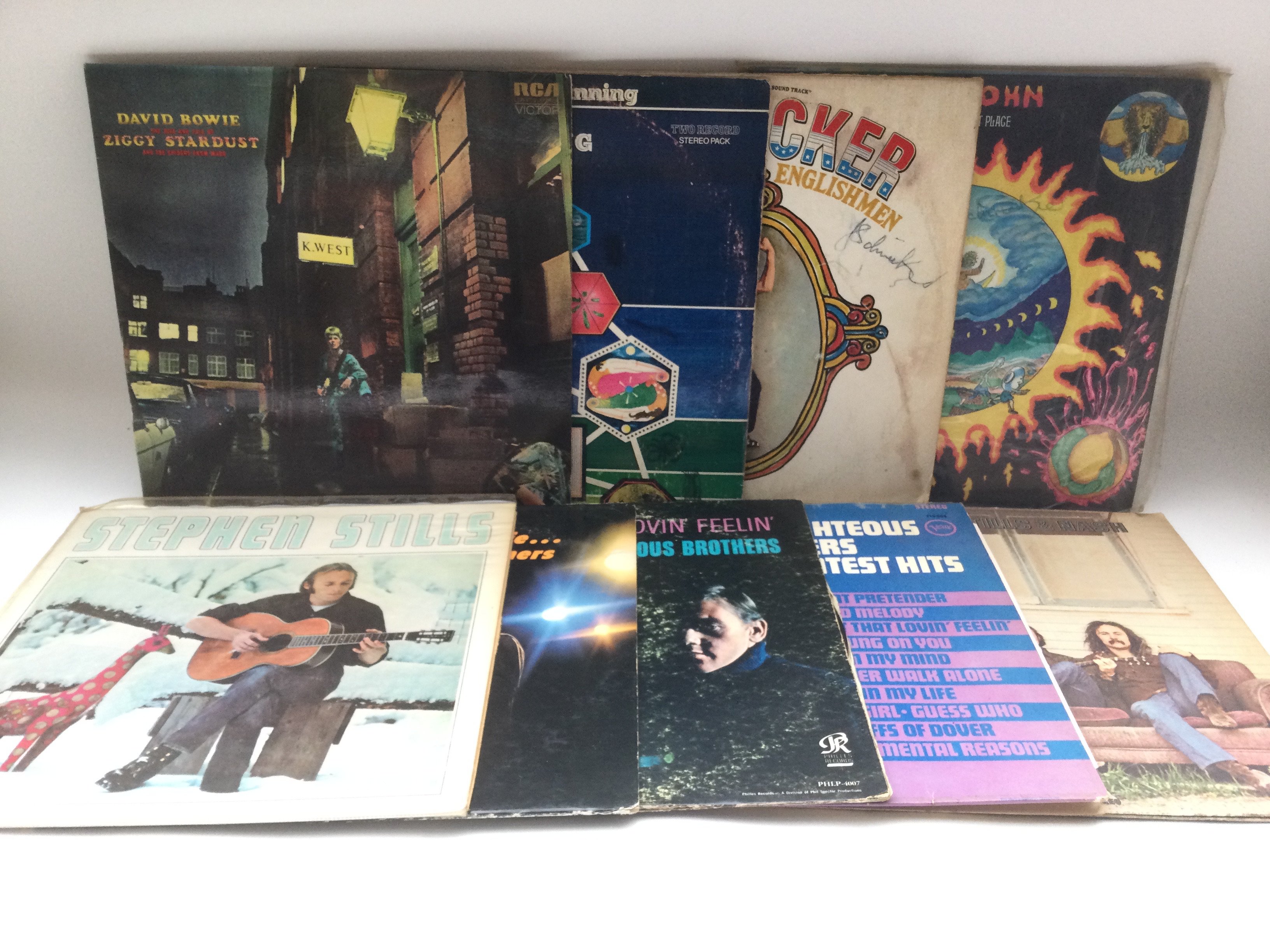 Nine LPs by various artists including David Bowie, BB King, Dr John and others.