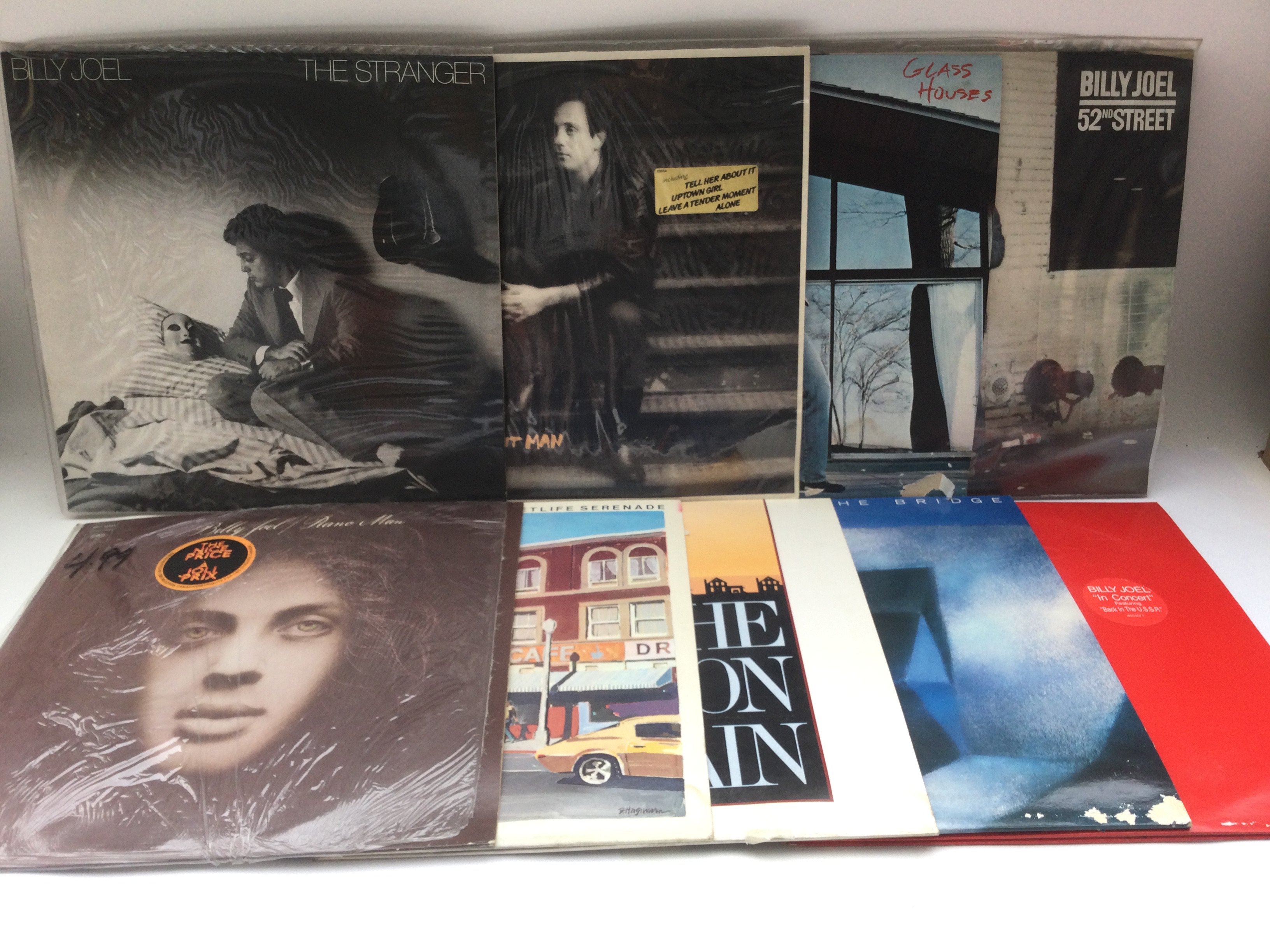Nine Billy Joel LPs including 'Piano Man', '52nd Street' and others.