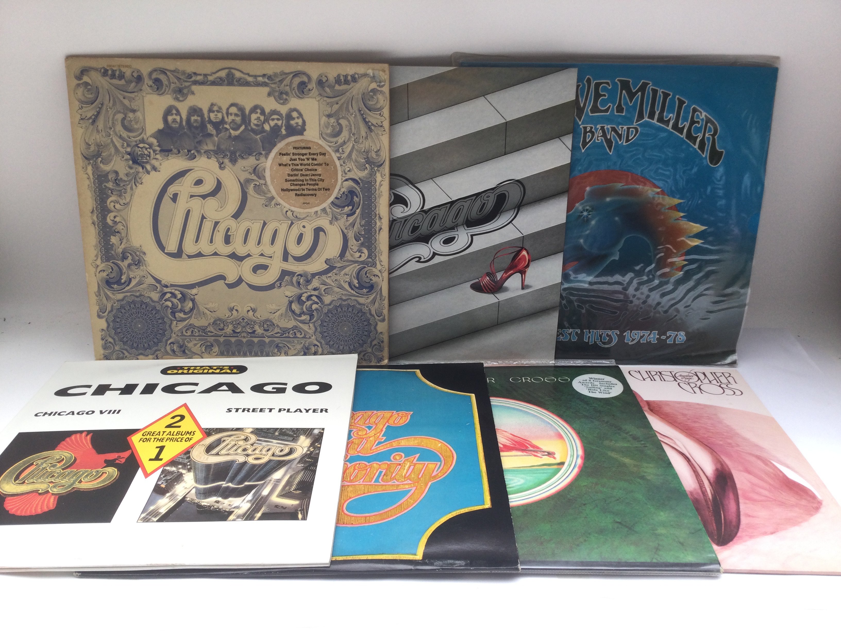 Fourteen soft rock LPs by various artists including Chicago, Heart, Foreigner and others.