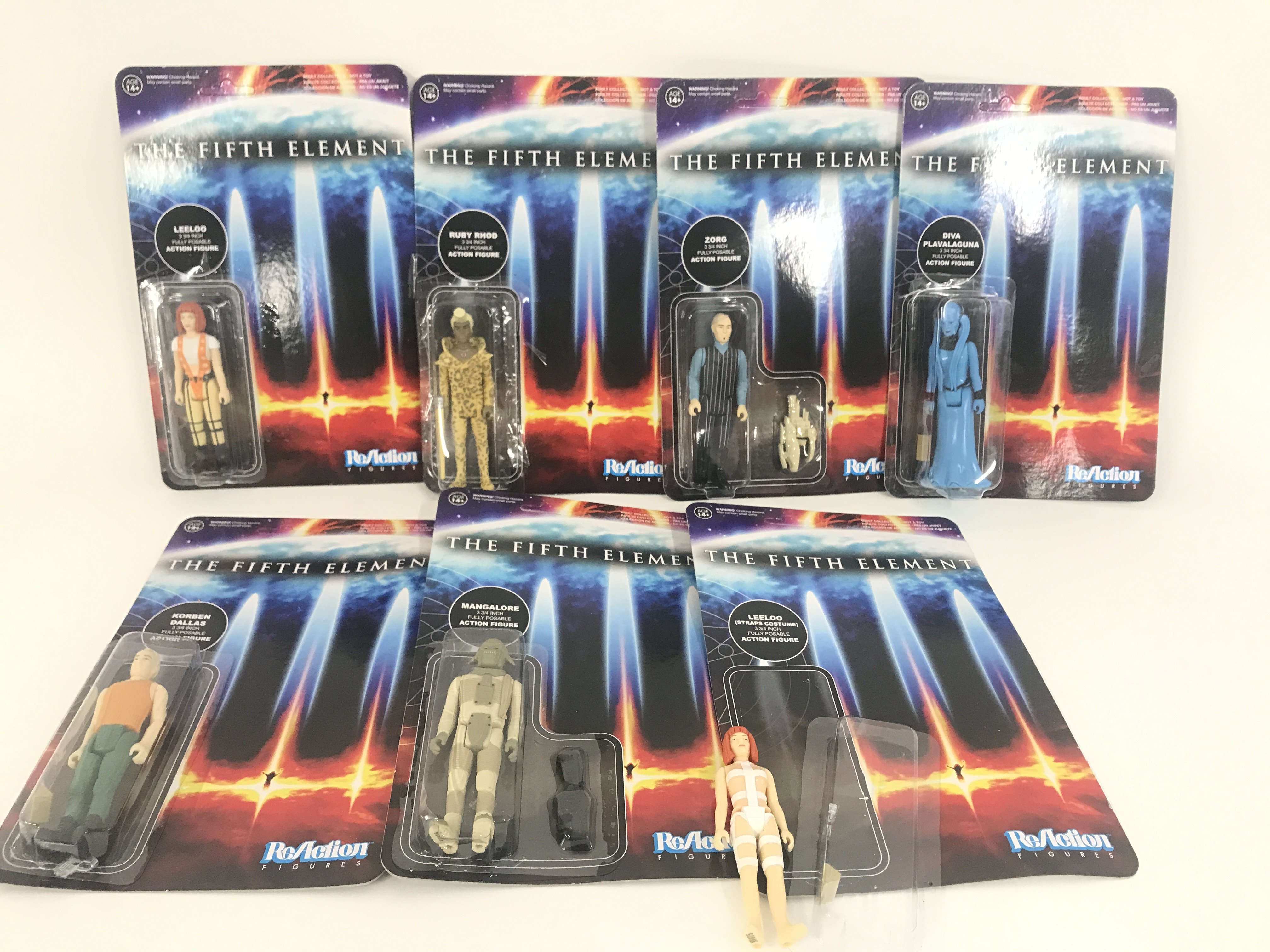 7 Carded ReAction Figures. All The Fifth Element.