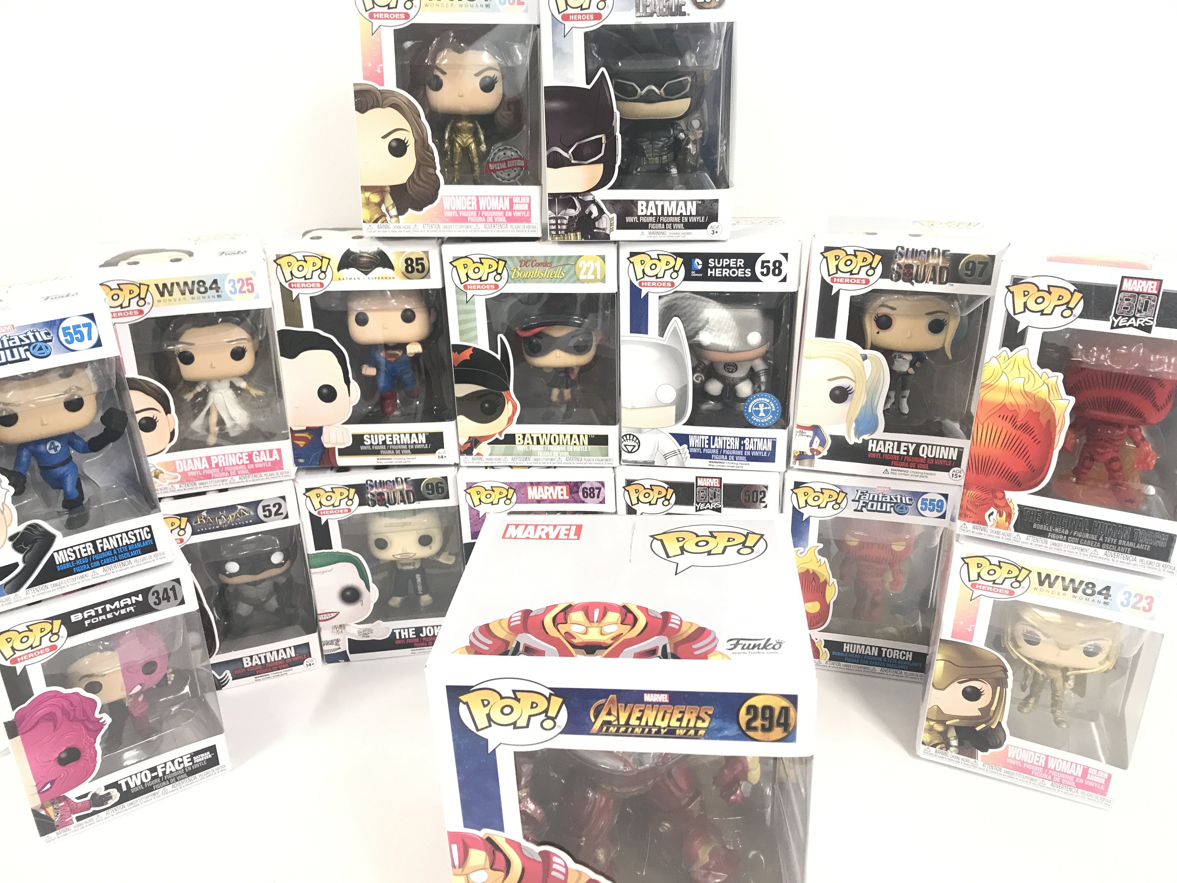 A Collection of Boxed Funko Pop Figures.