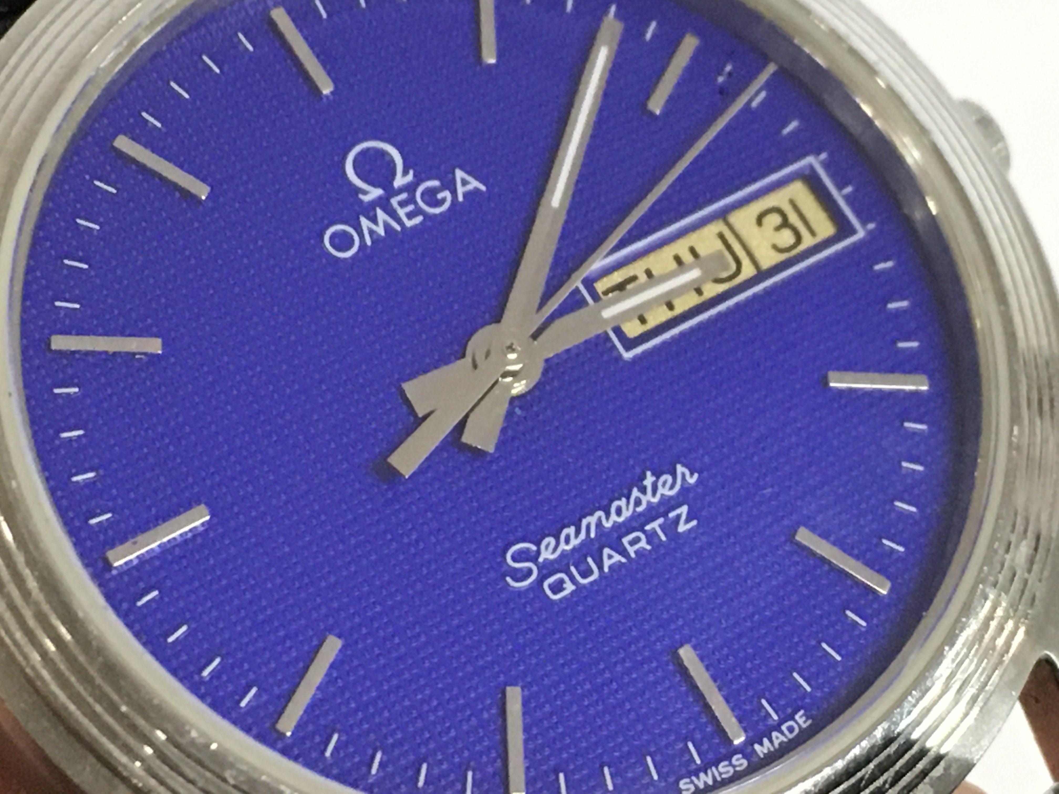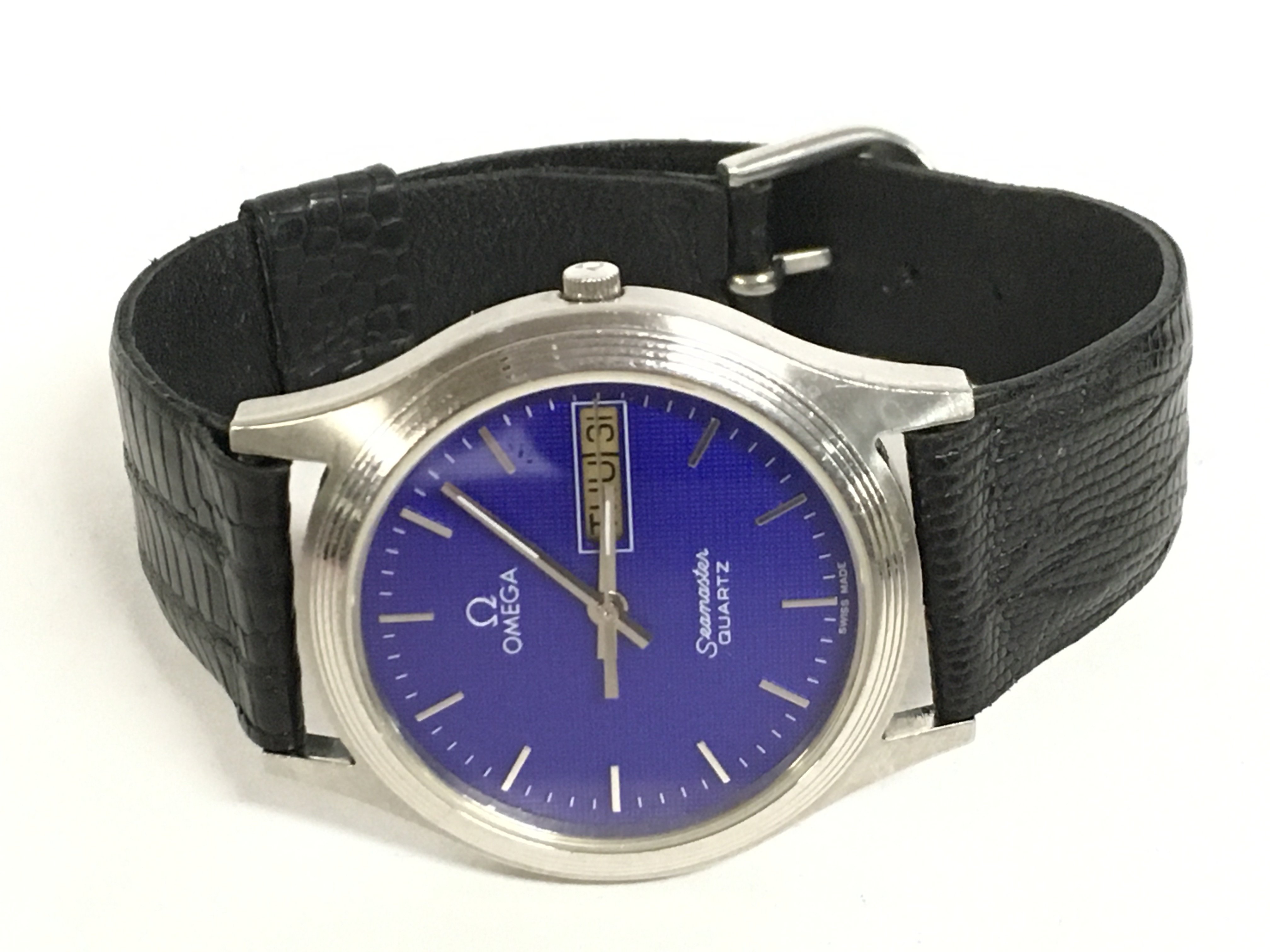 An Omega blue dial Seamaster Mens watch (seen working). With omega leather strap. Postage category A