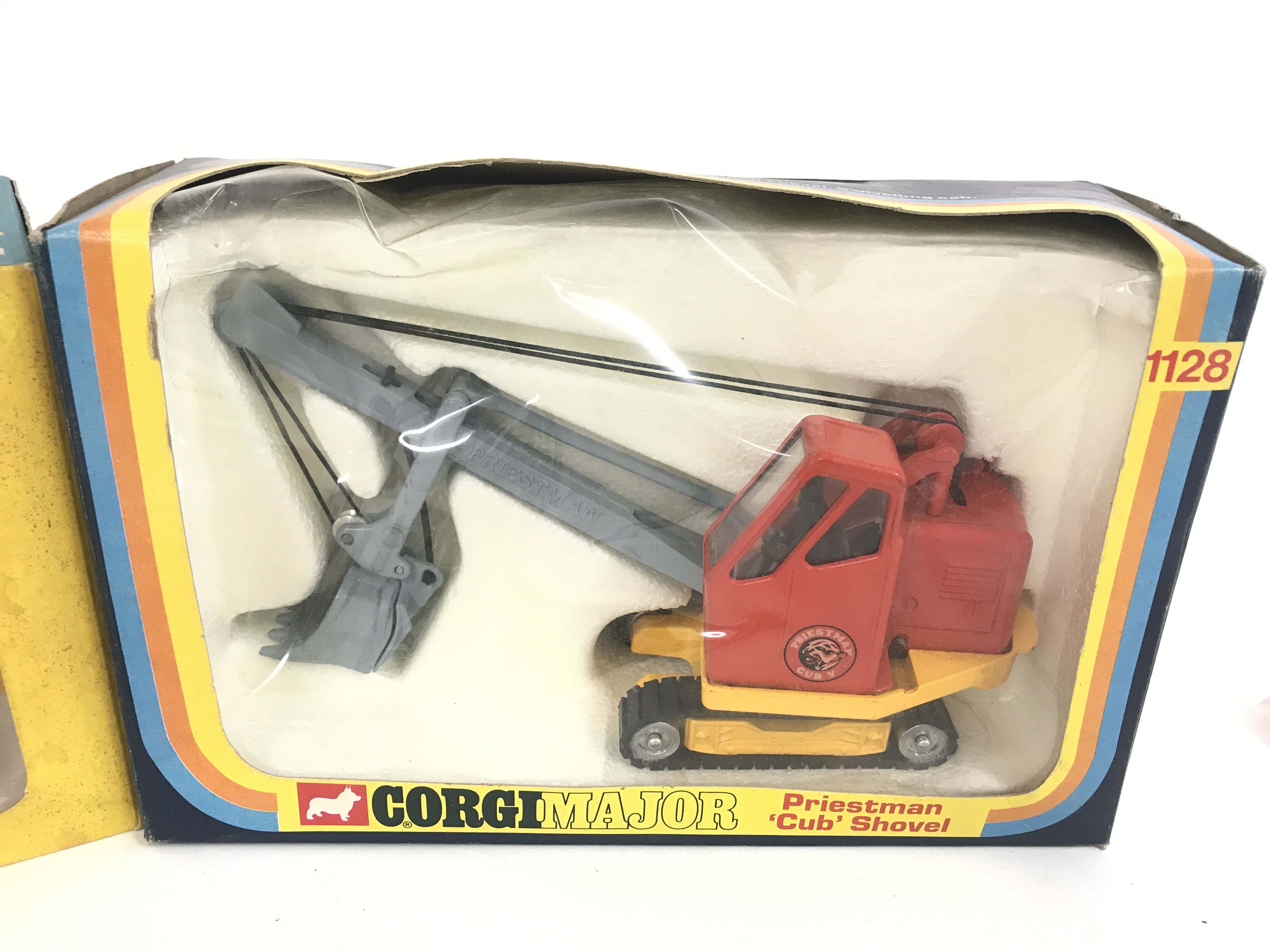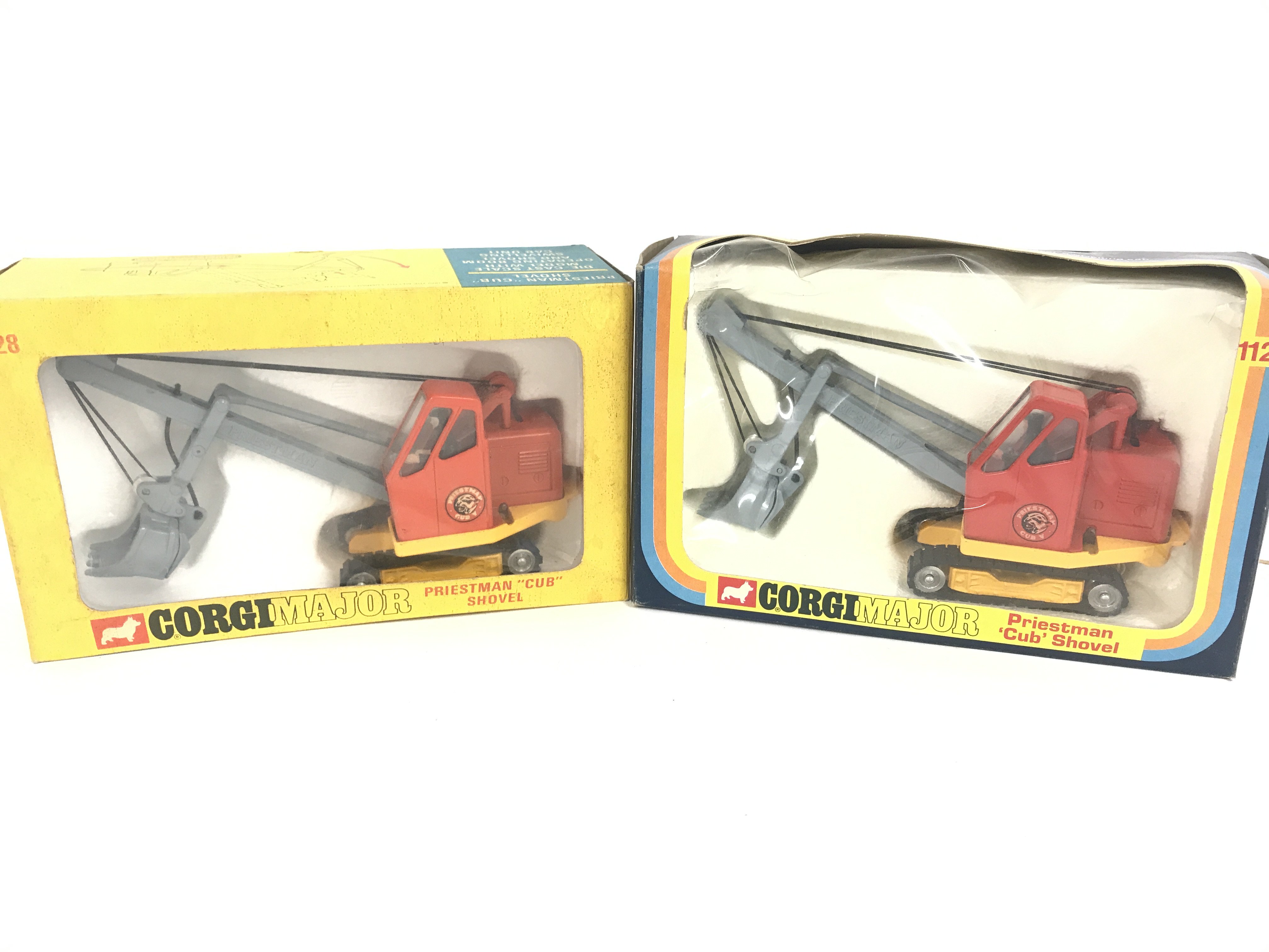 2 Boxed Corgi Priestman Cub Shovels #1128.
