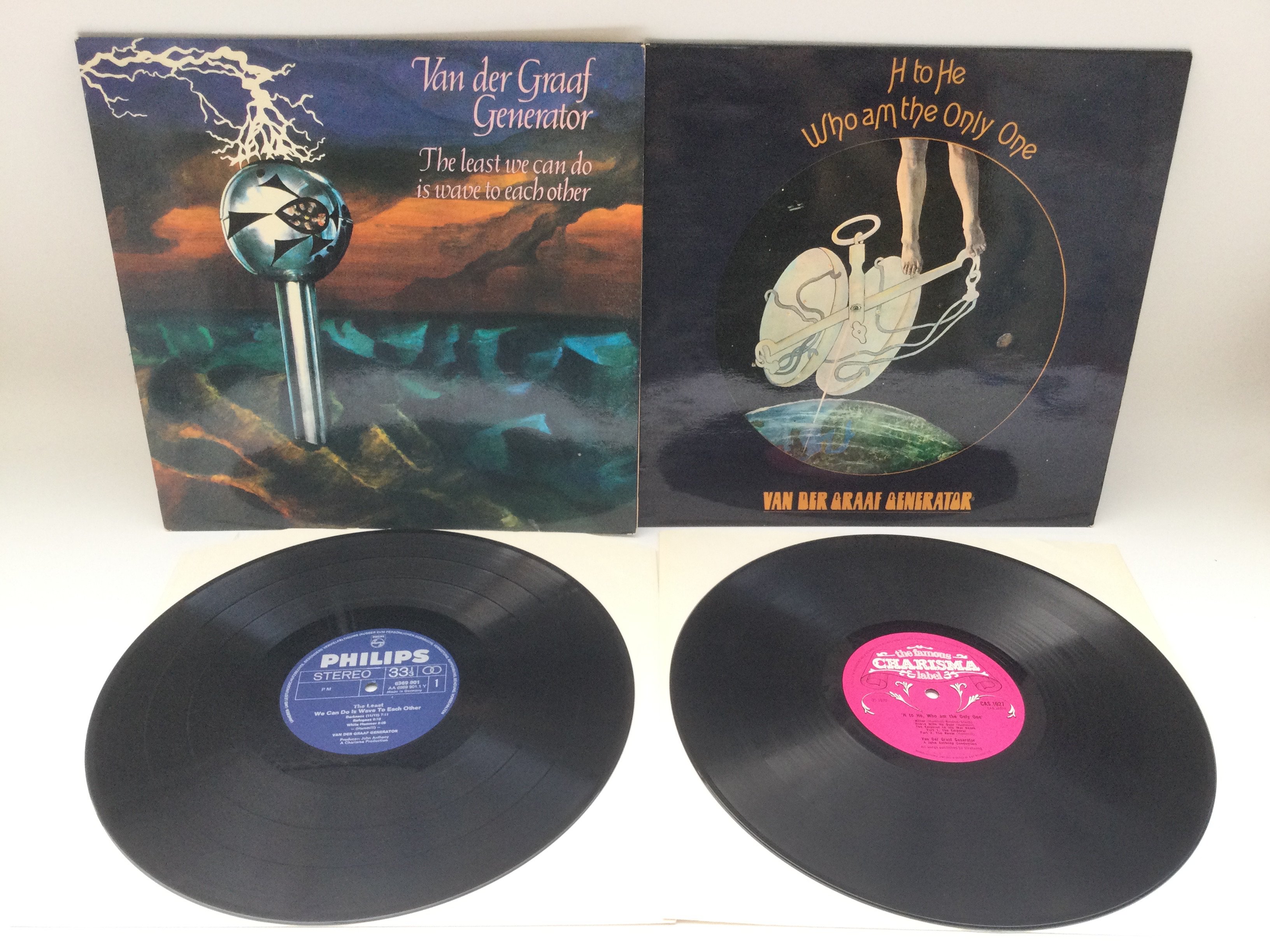 Two early pressings of Van Der Graaf Generator LPs comprising 'The Least We Can Do Is Wave To Each Other' complete with poster bearing signatures of the band plus 'H to He Who Am The Only One'. VG+.