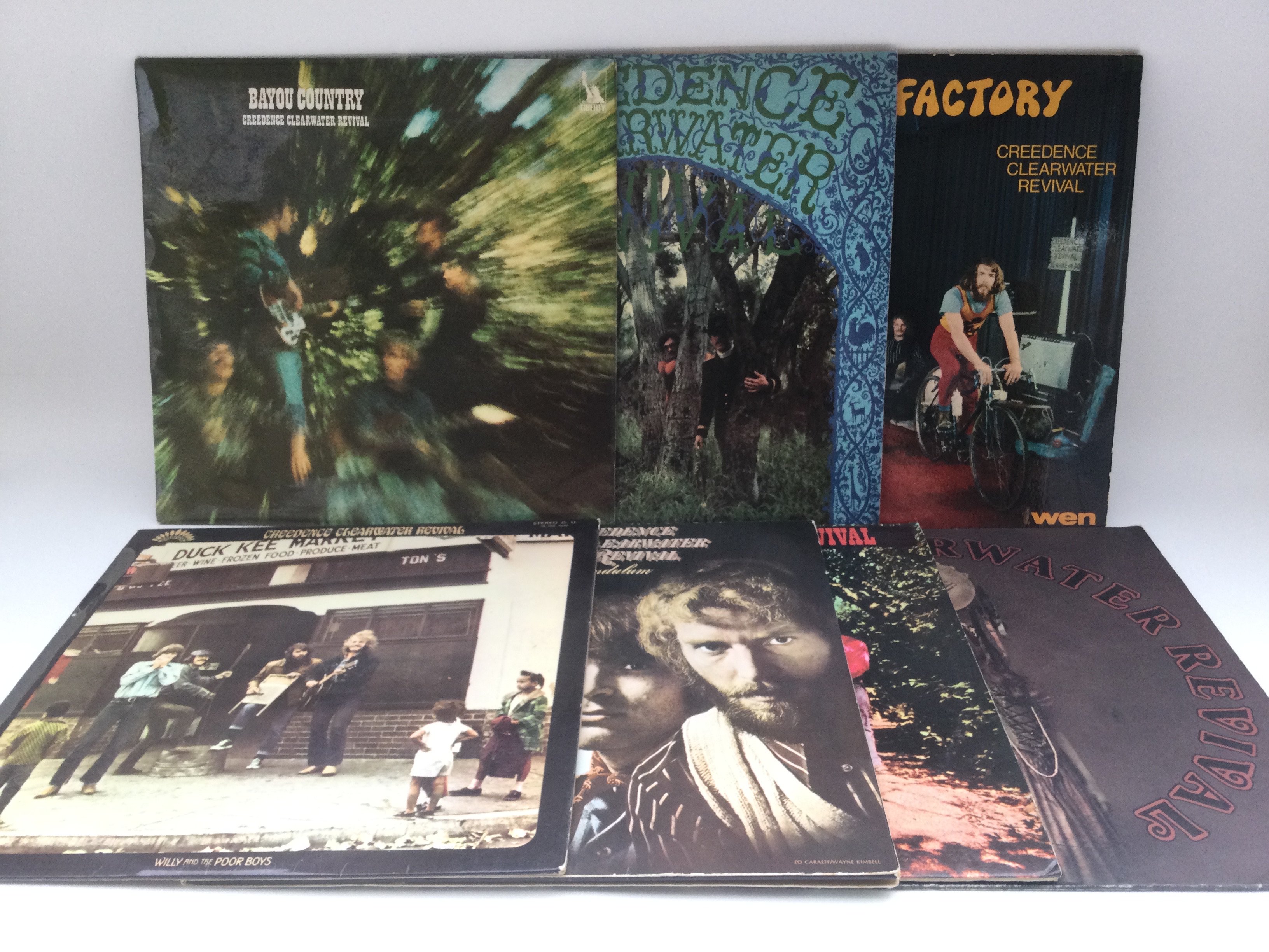 Seven Creedence Clearwater Revival LPs including 'Cosmo's Factory', 'Green River', 'Bayou Country' and others. Includes early foreign pressings.