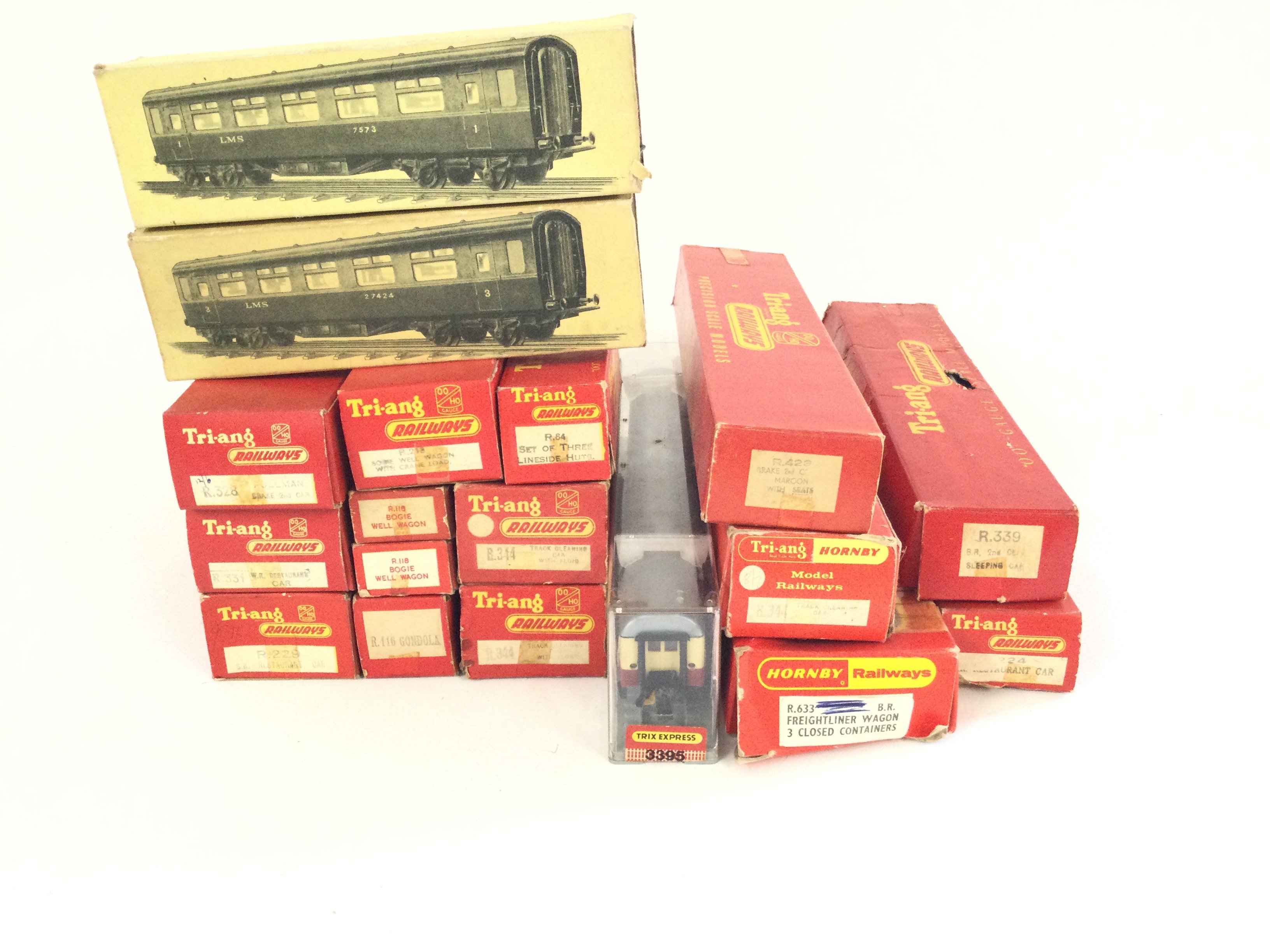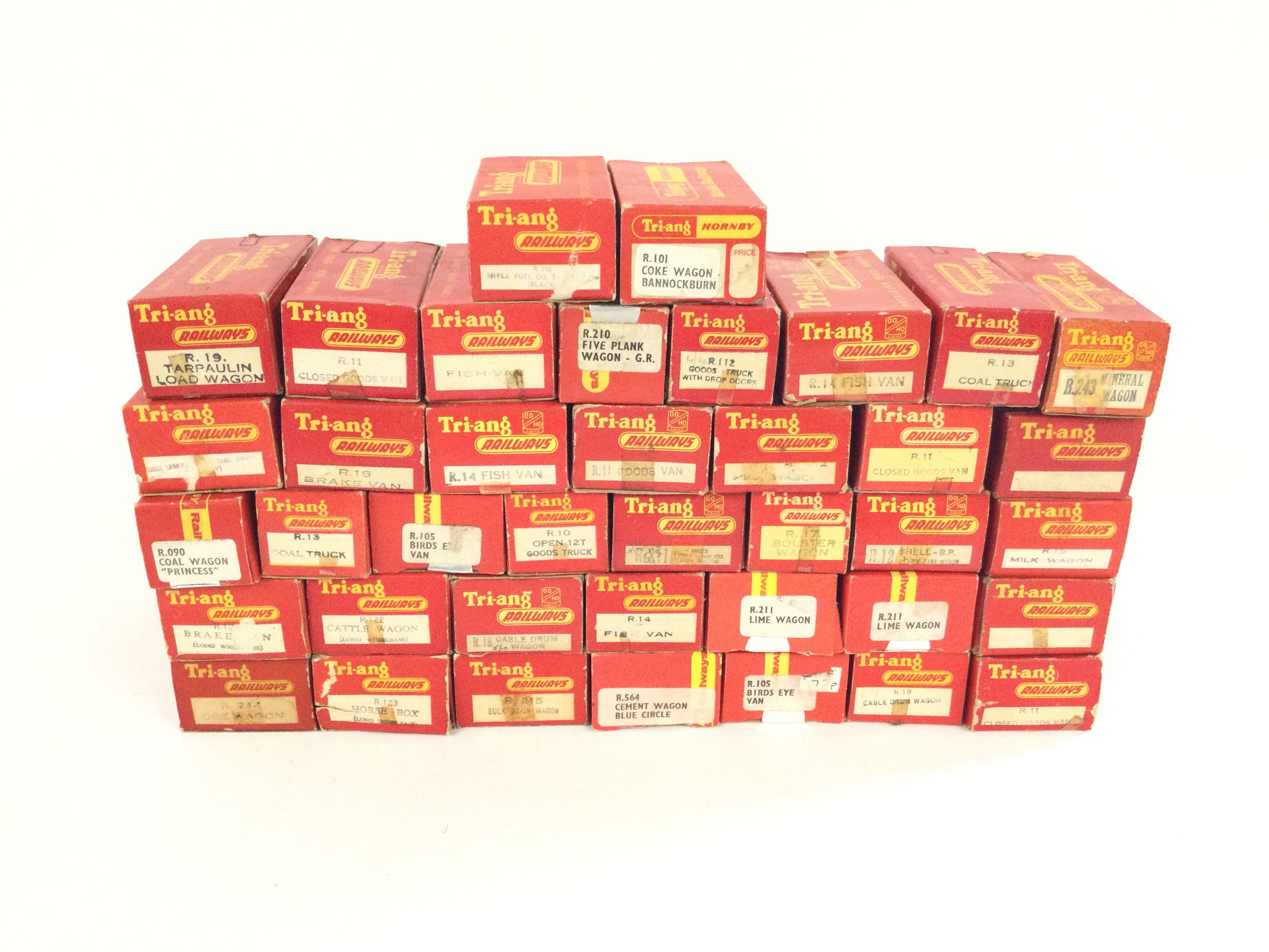A box containing over 40 boxed Triang Hornby carriages and coaches.