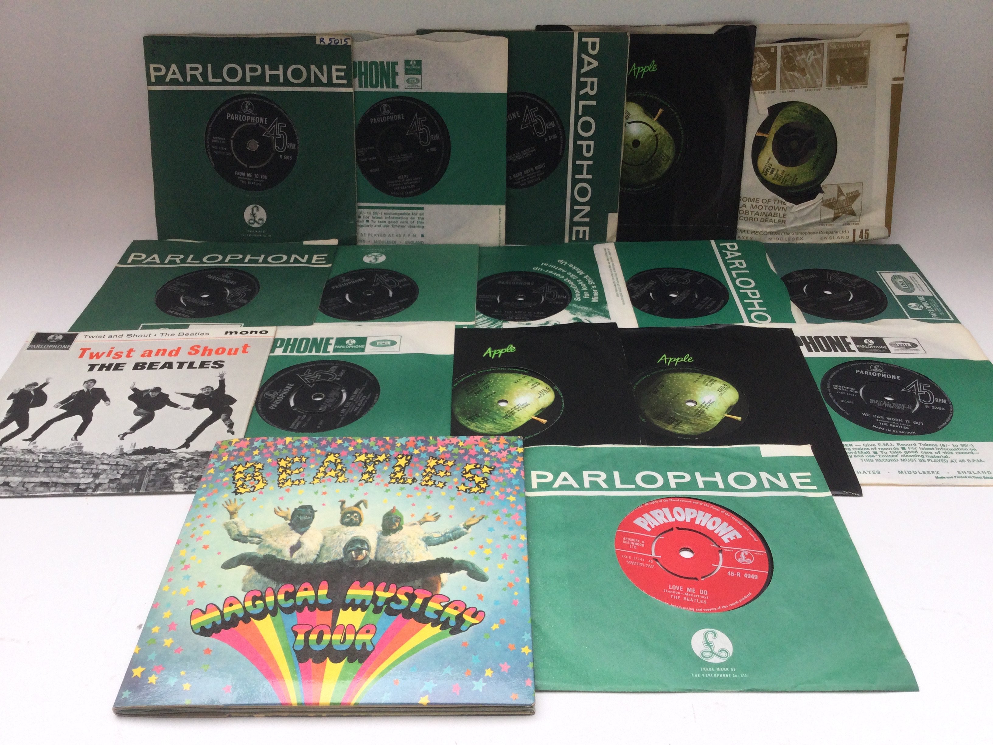 A first UK pressing red label 'Love Me Do' with ZT tax code, excellent condition except for a tiny scratch on the run out groove. Comes with various other Beatles 7" singles and EPs.