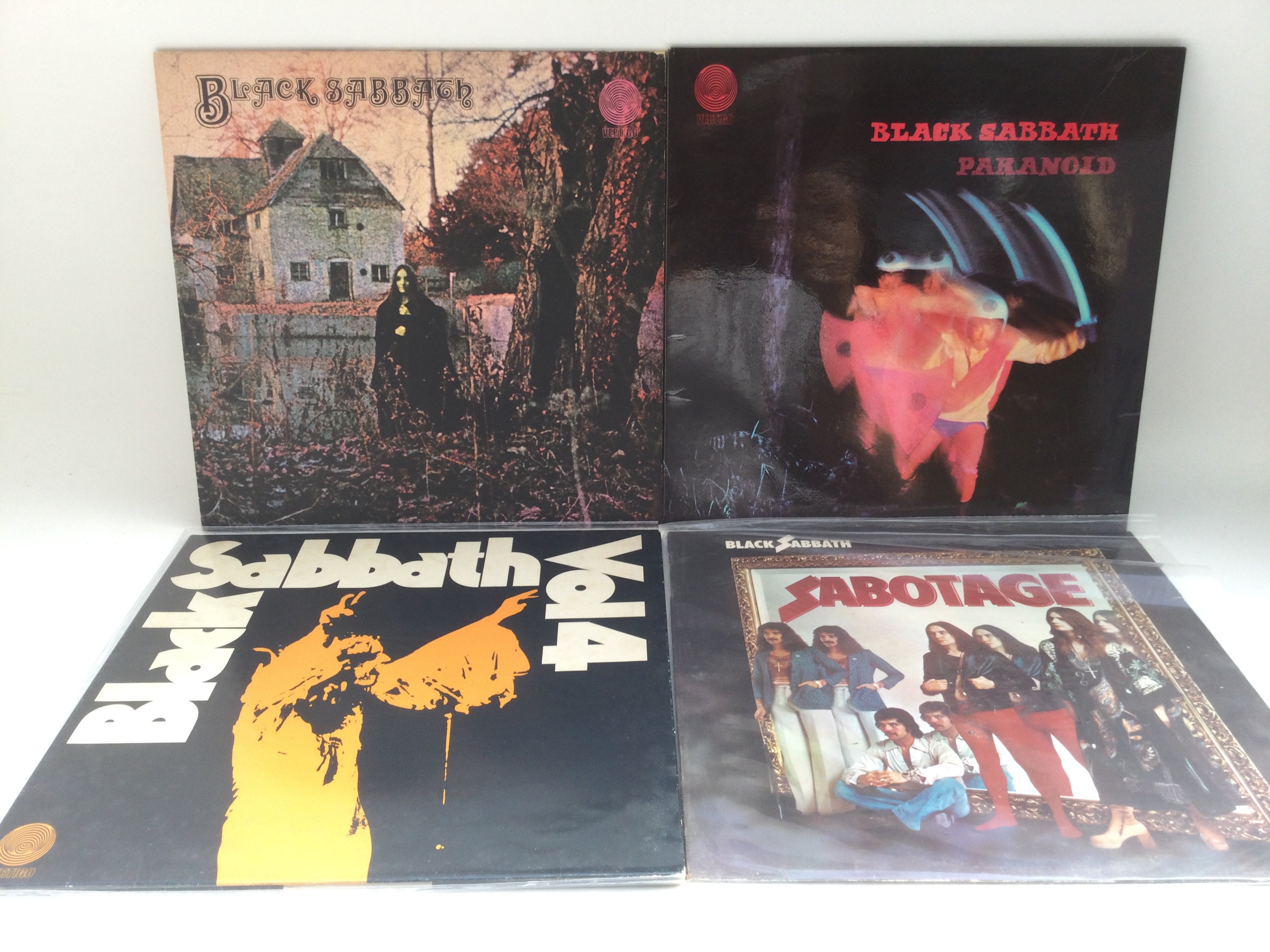 Four Black Sabbath LPs comprising the self title debut, 'Paranoid', 'Vol 4' and 'Sabotage'. Includes some first pressings.