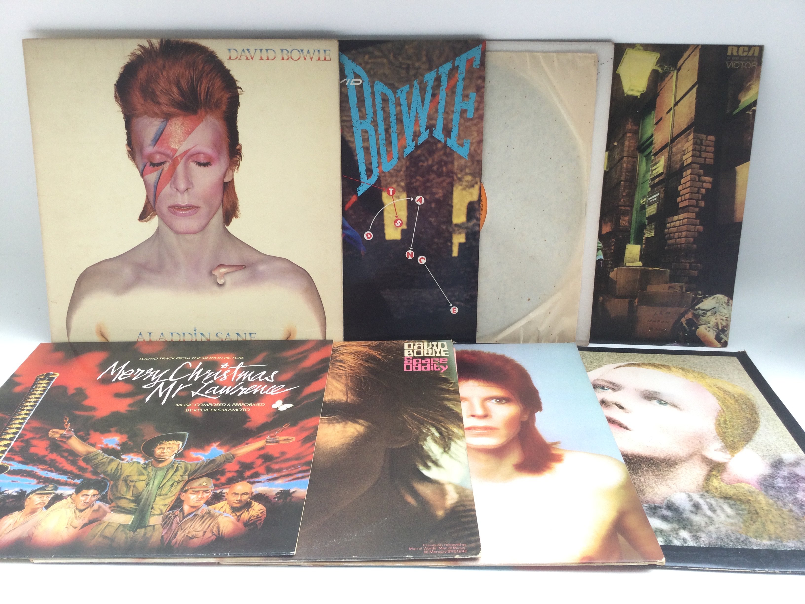 Eight David Bowie LPs comprising 'Aladdin Sane', 'Hunky Dory', 'Ziggy Stardust' and others.