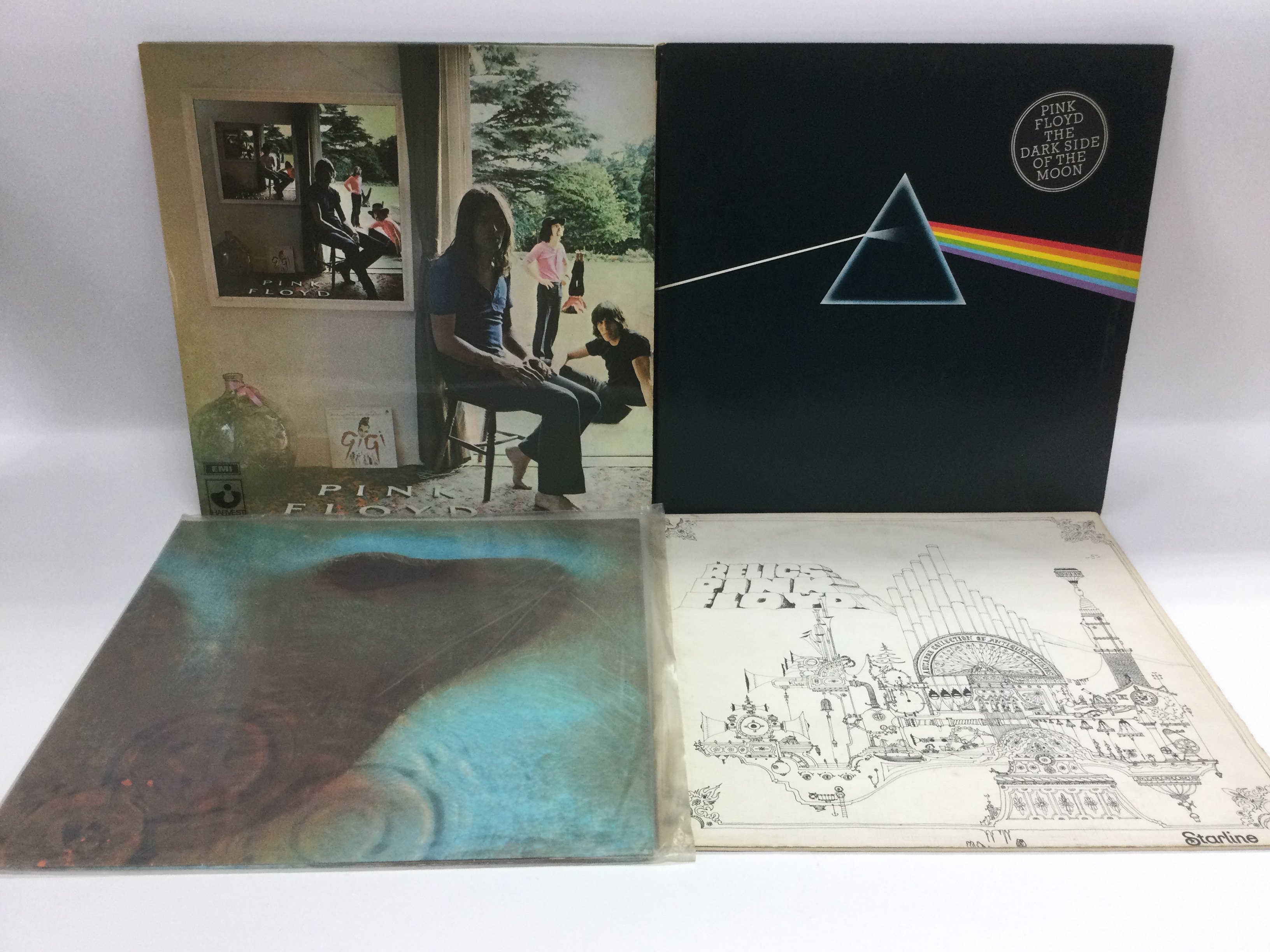 Four Pink Floyd LPs comprising 'Ummagumma', 'Dark Side Of The Moon', 'Meddle' and 'Relics'.