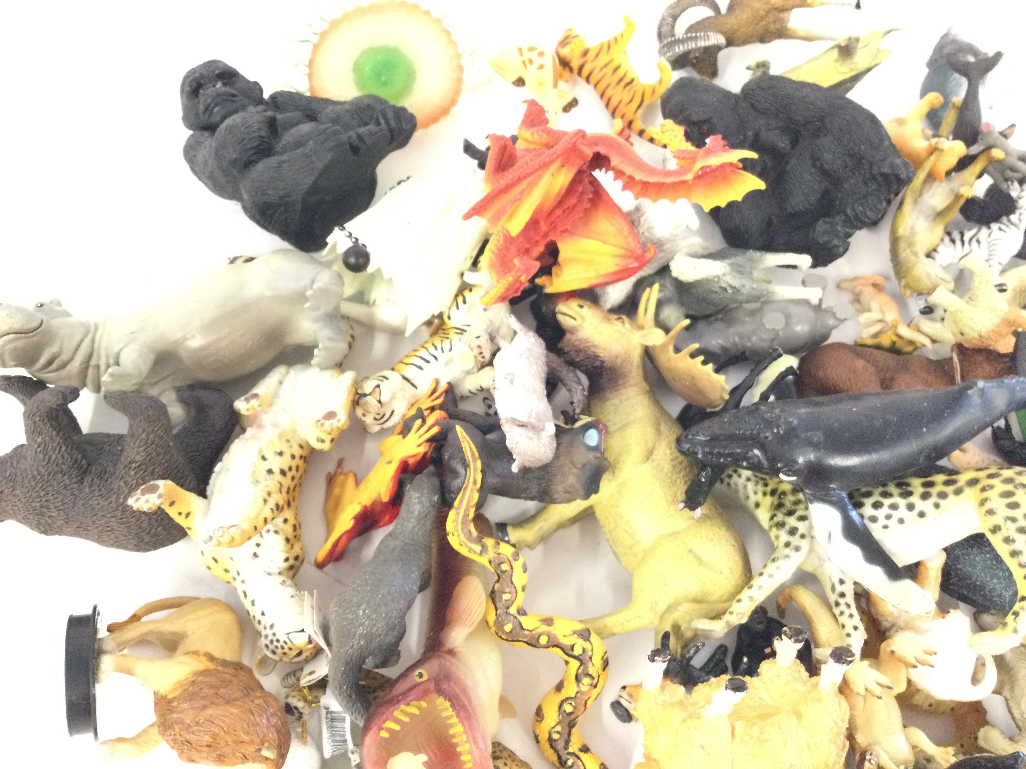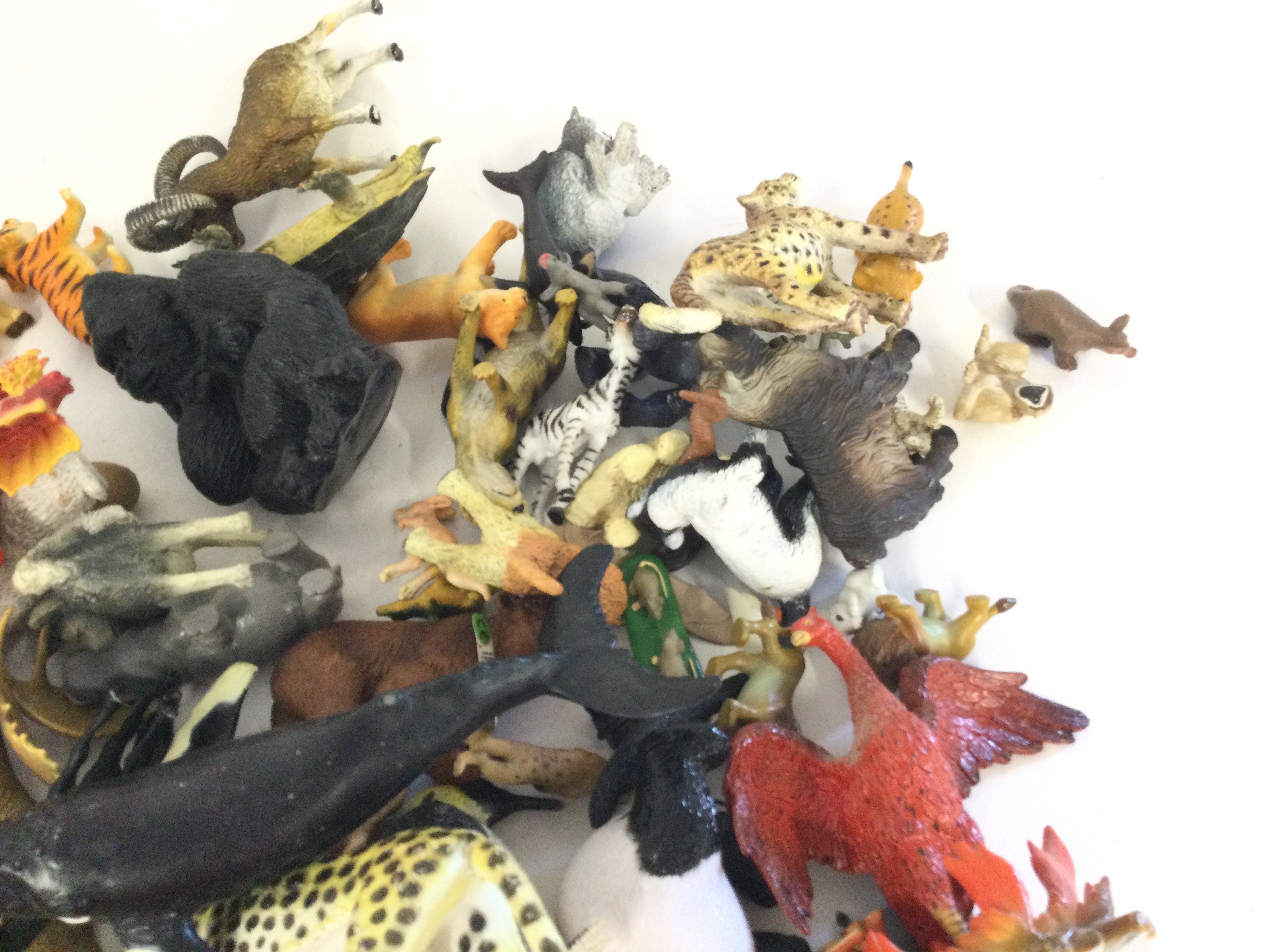 A box containing approximately a quantity of animals figurines. To include Papo and Playmobile.