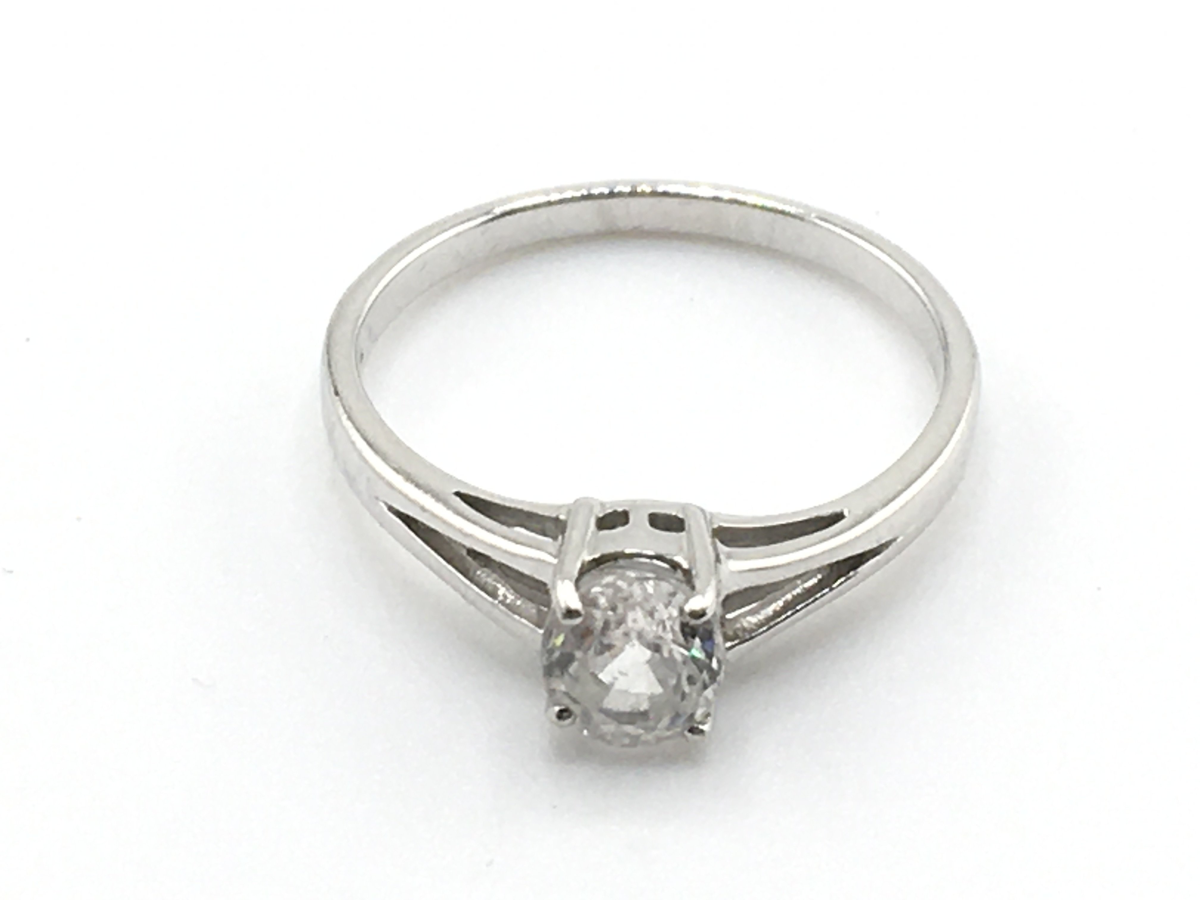 A 9ct white gold ring set with white stone. Size N and 2.2g