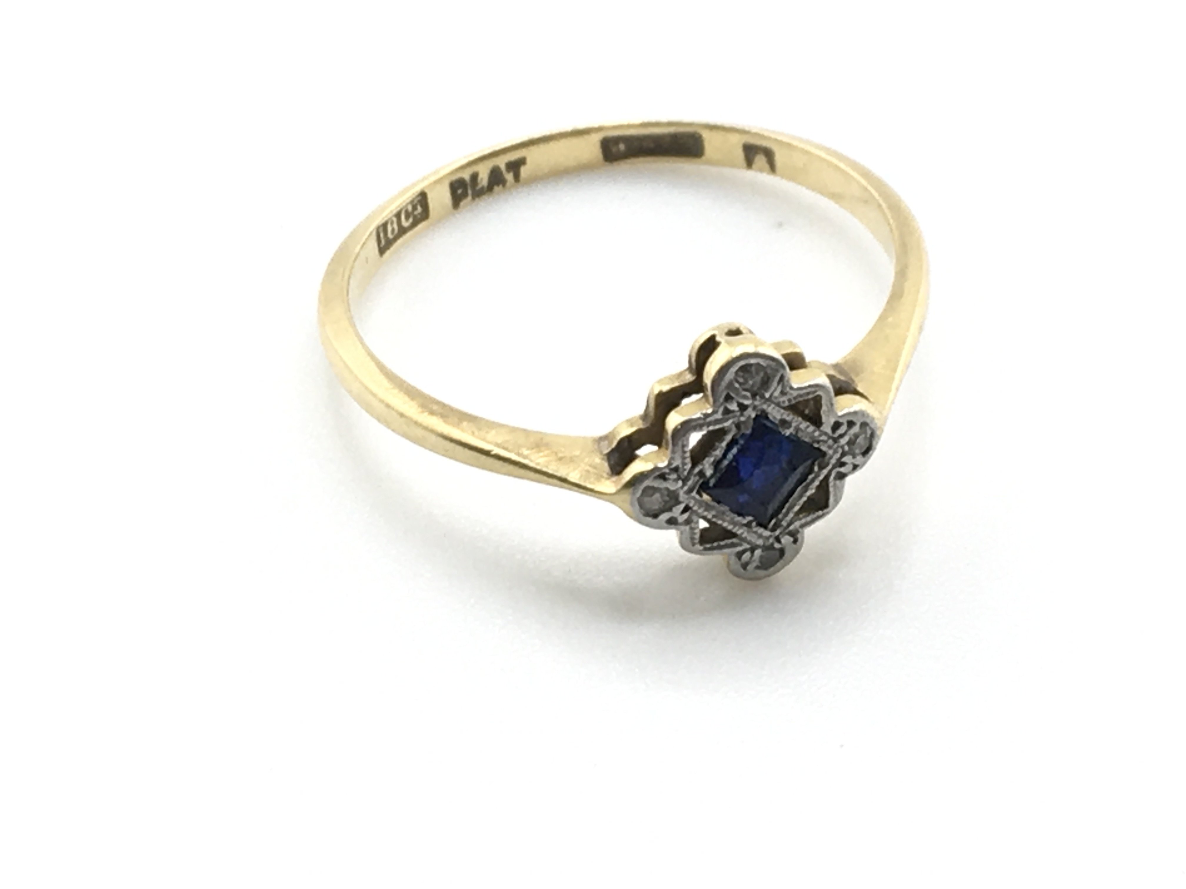 An 18ct gold and platinum sapphire set ring. 1.9g and size O Postage A