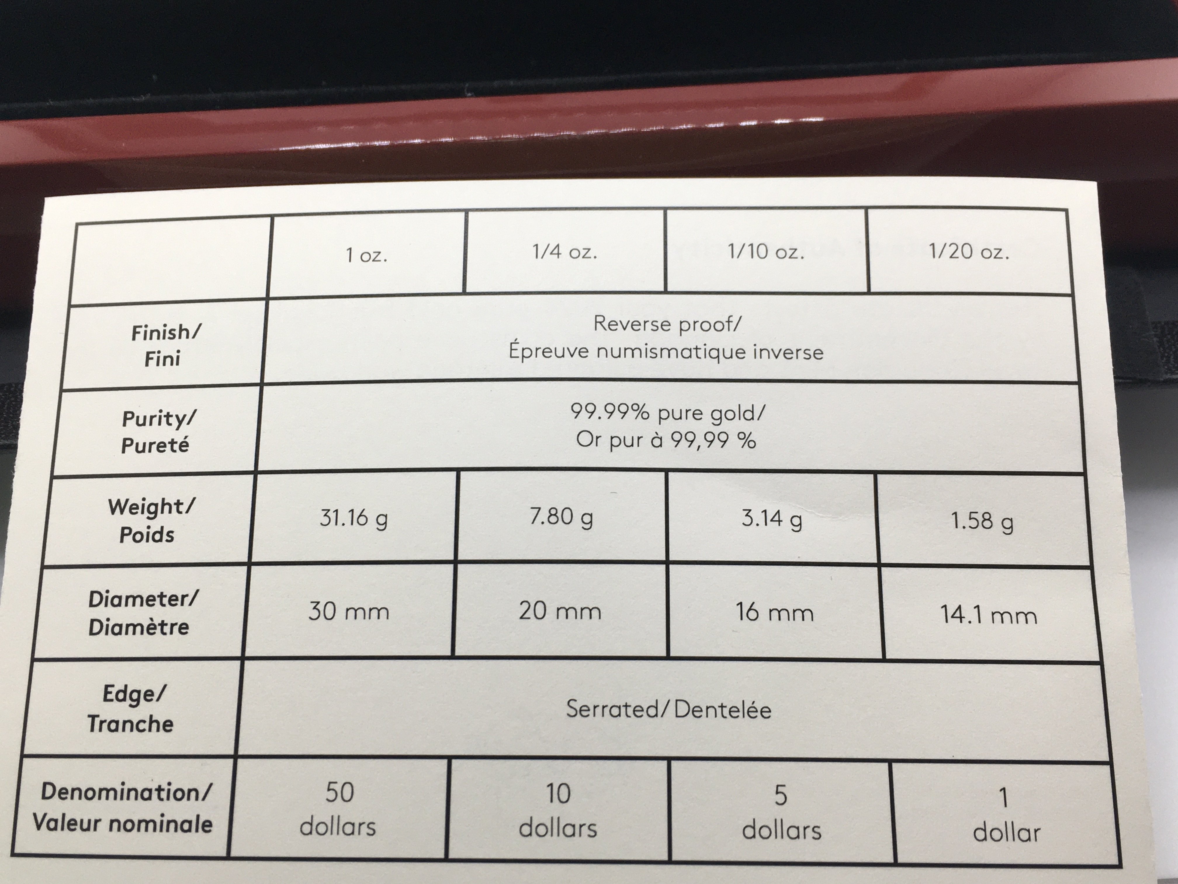 Gold proof Canadian mint four coin set. Including 1oz 1/4oz 1/10oz and a 1/20oz. Postage B