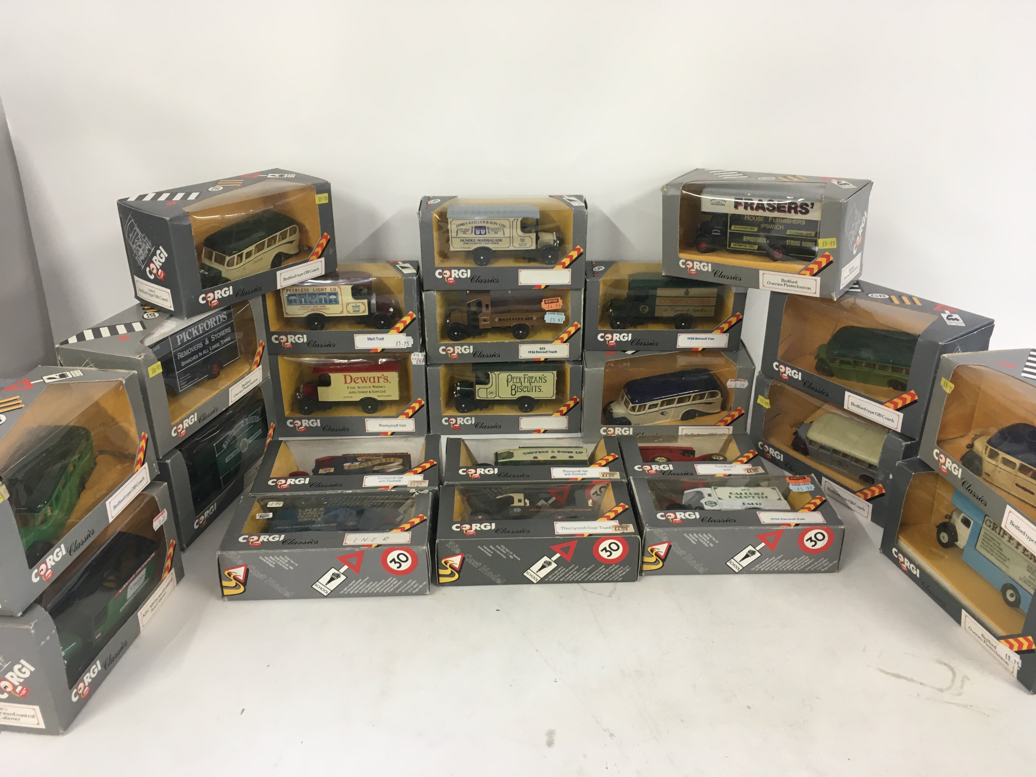 A collection of 23 boxed Corgi Classics comprising Buses and commercial vehicles. (2)