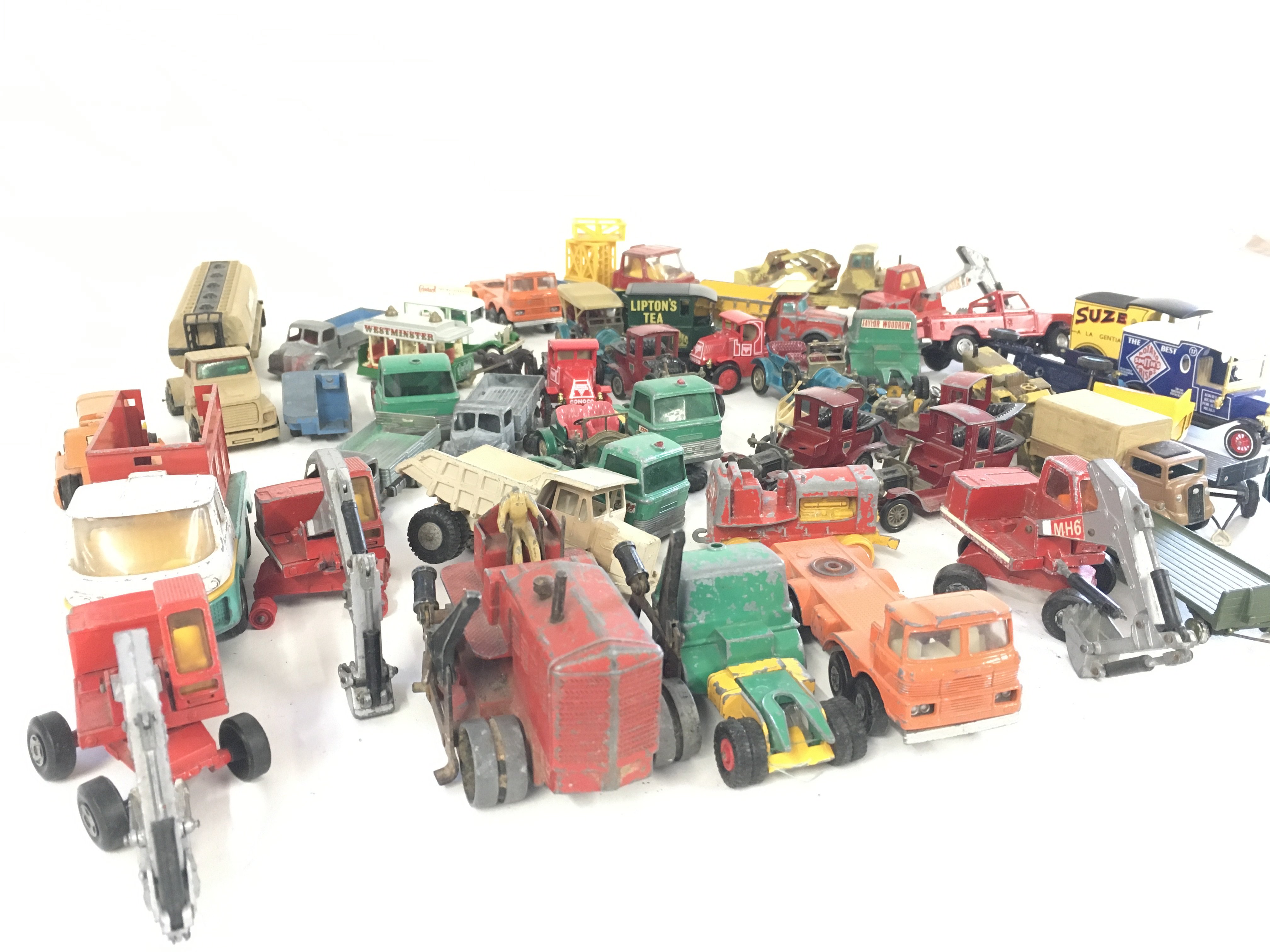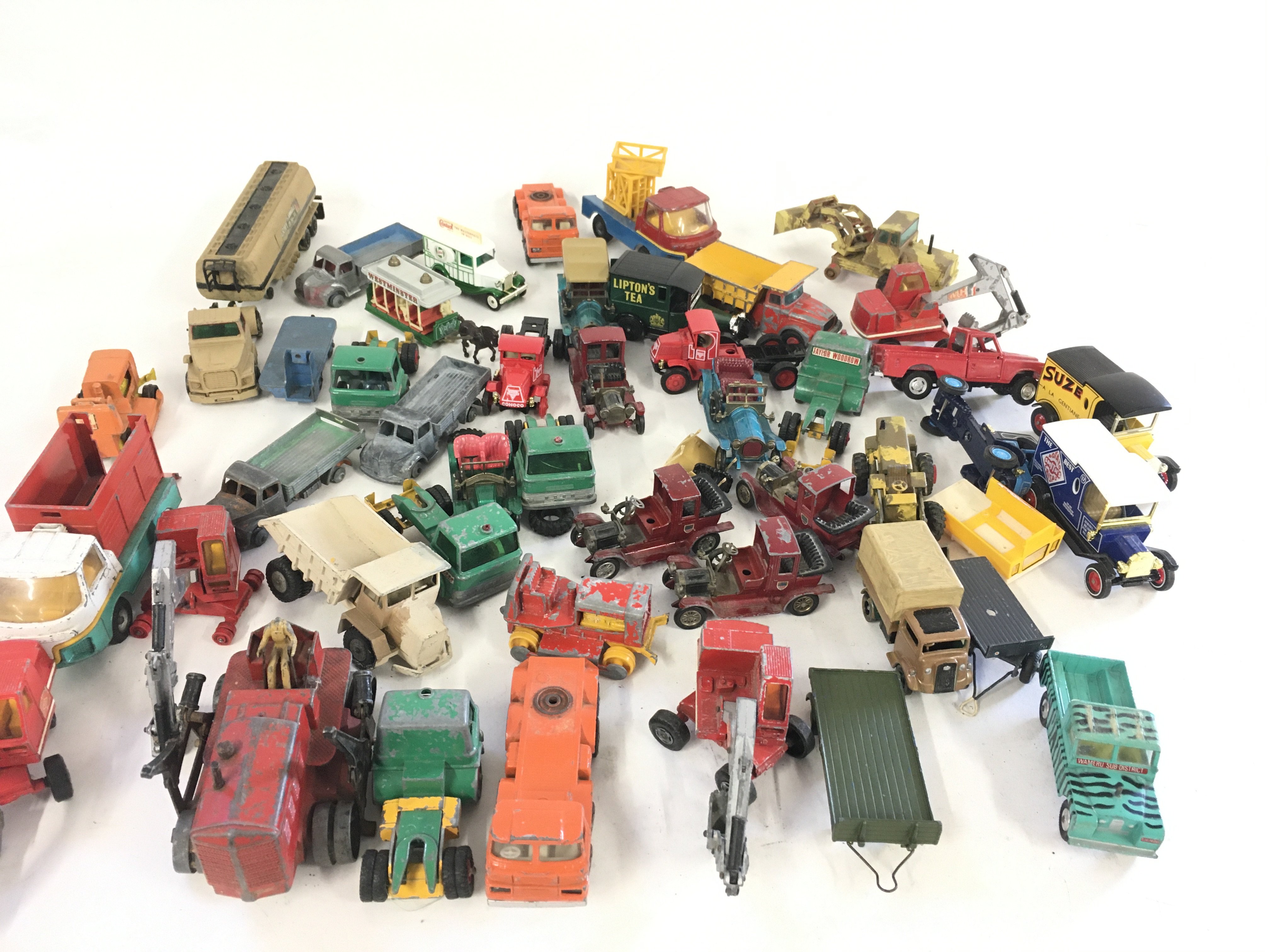 A collection in excess of 40 Playworn diecast model vehicles by a variety of manufacturers.