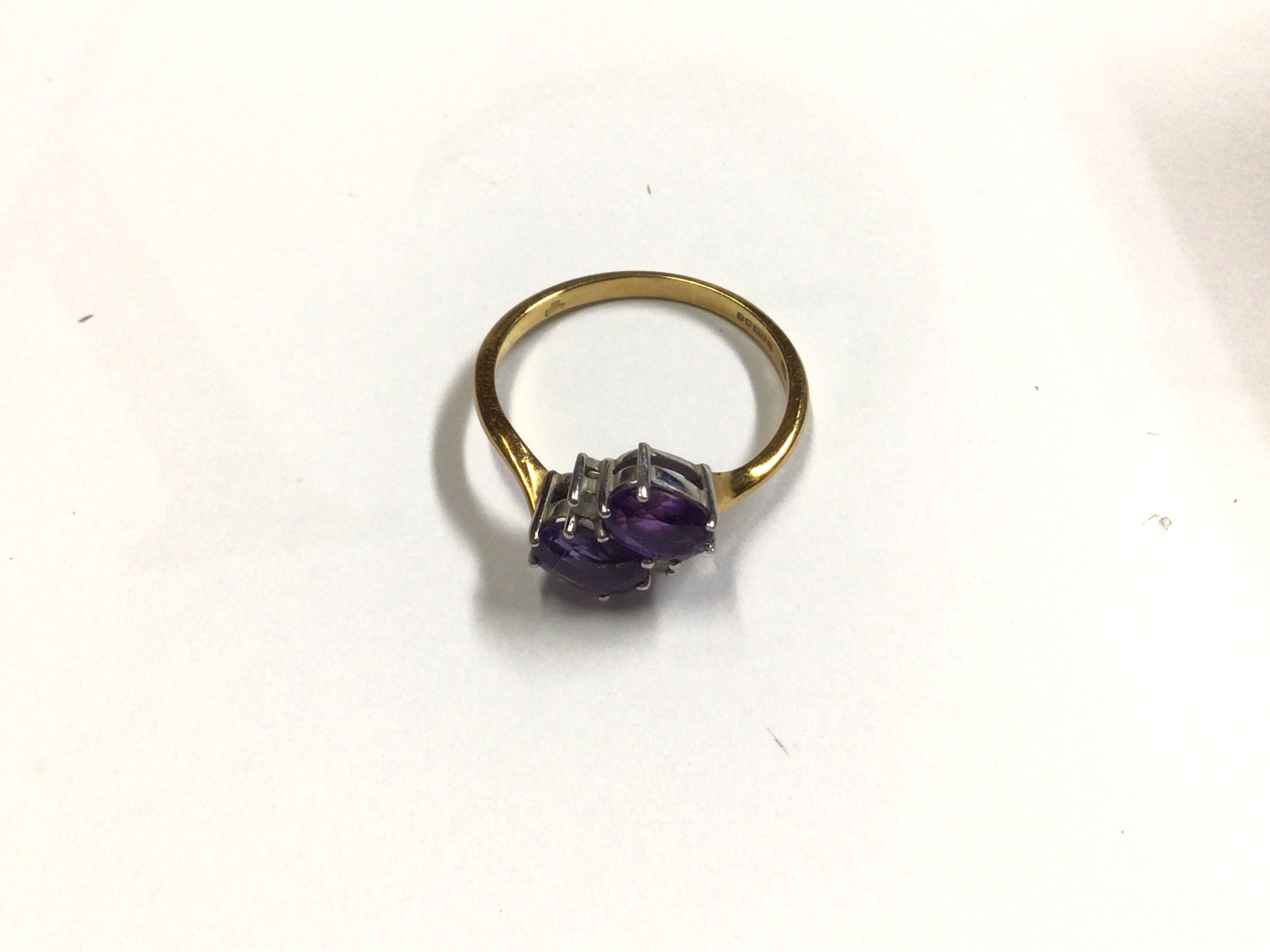 An 18ct gold amethyst set ring. Approx size R, approx weight 3.23 grams.
