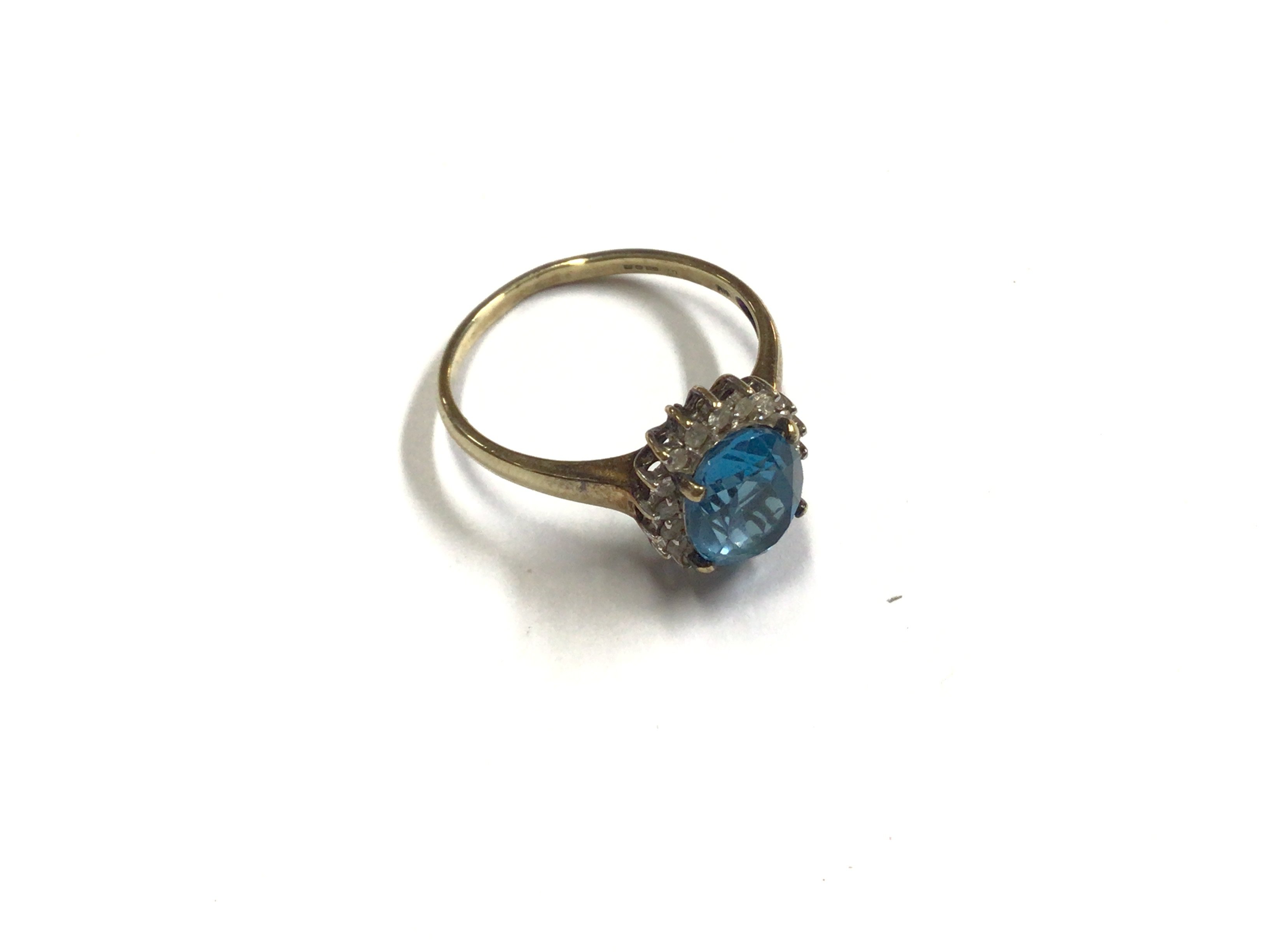 A 9ct gold topaz and diamond set ring. Approx weight 3.34 grams, approx size U.