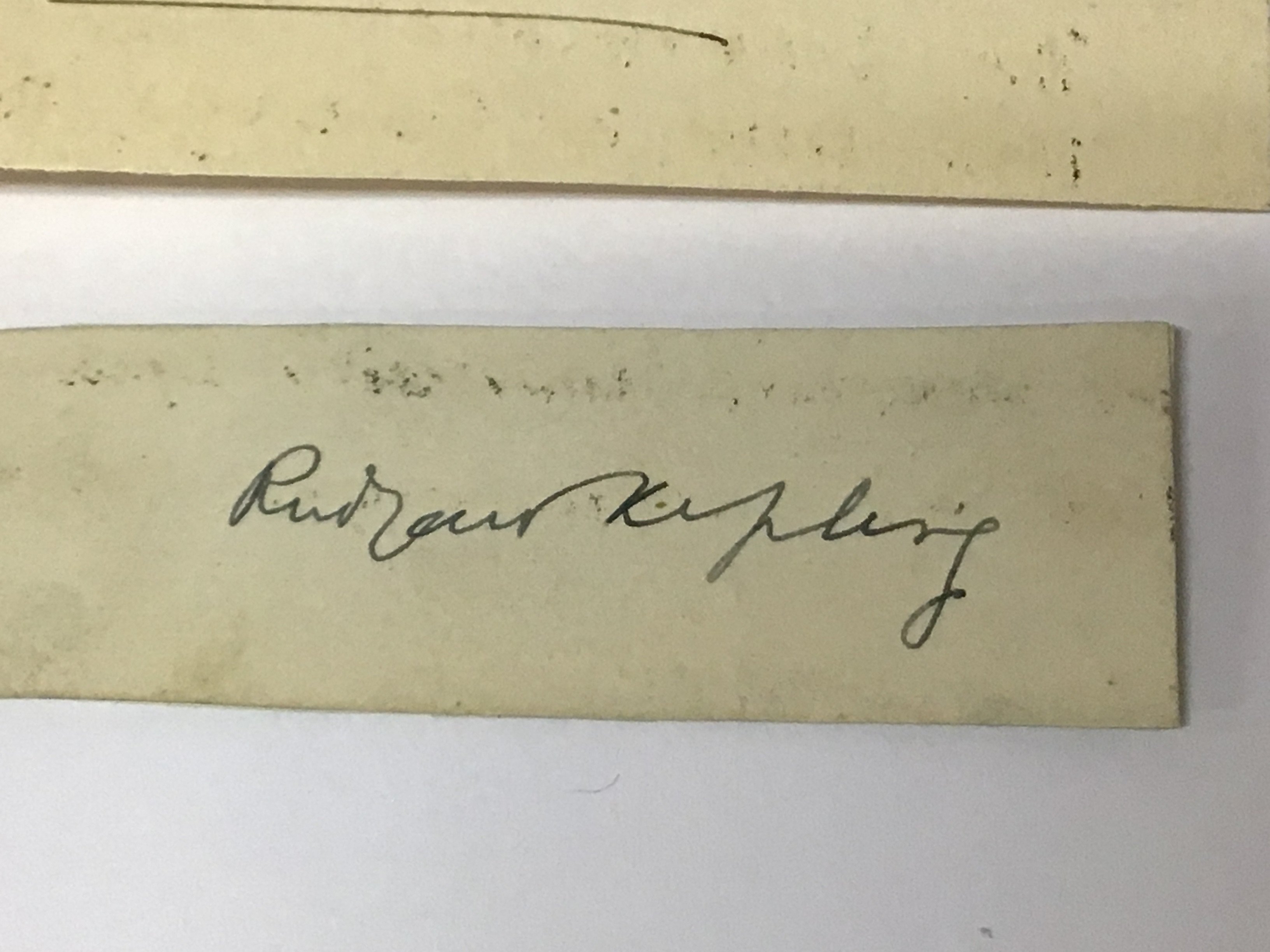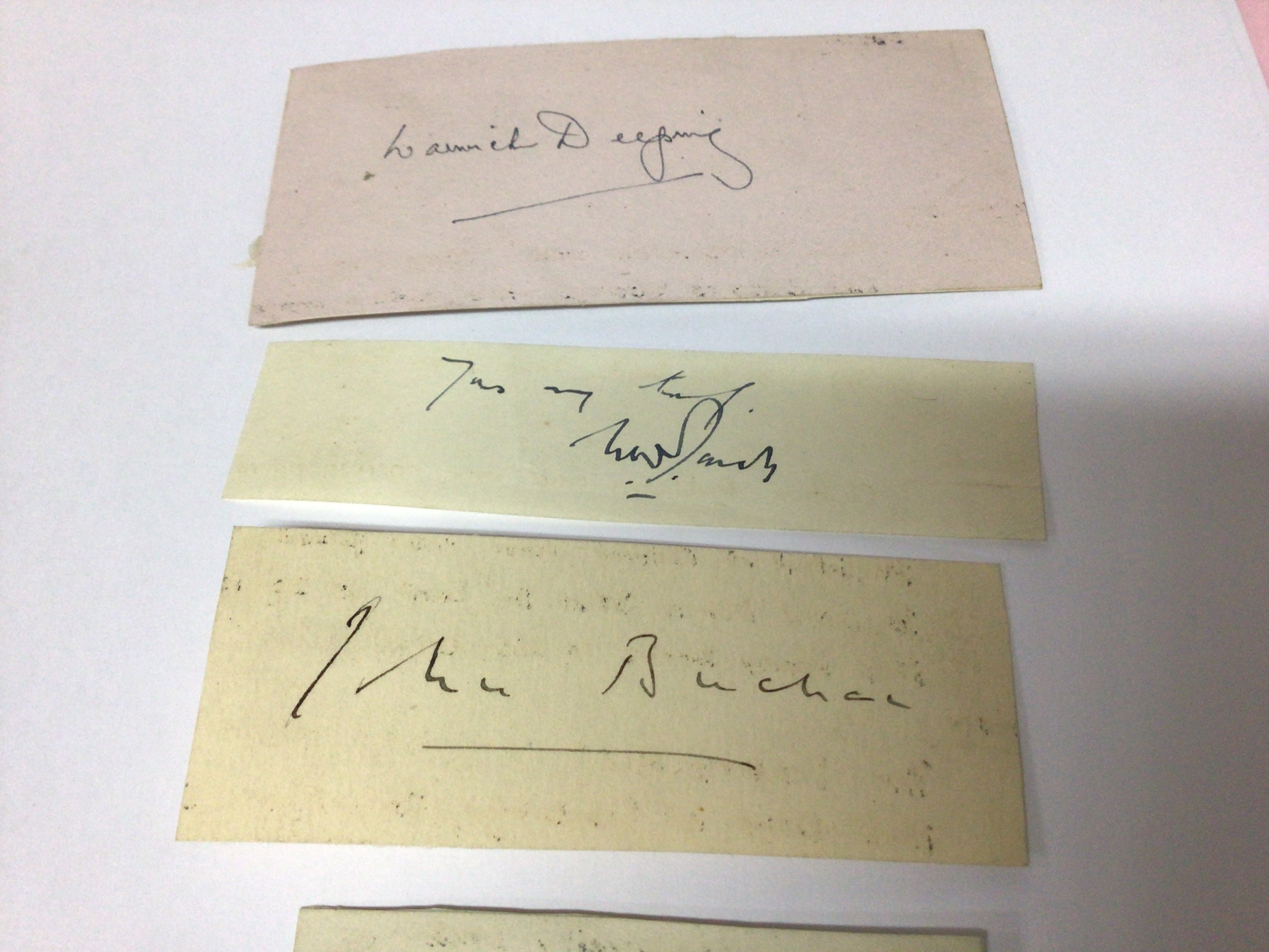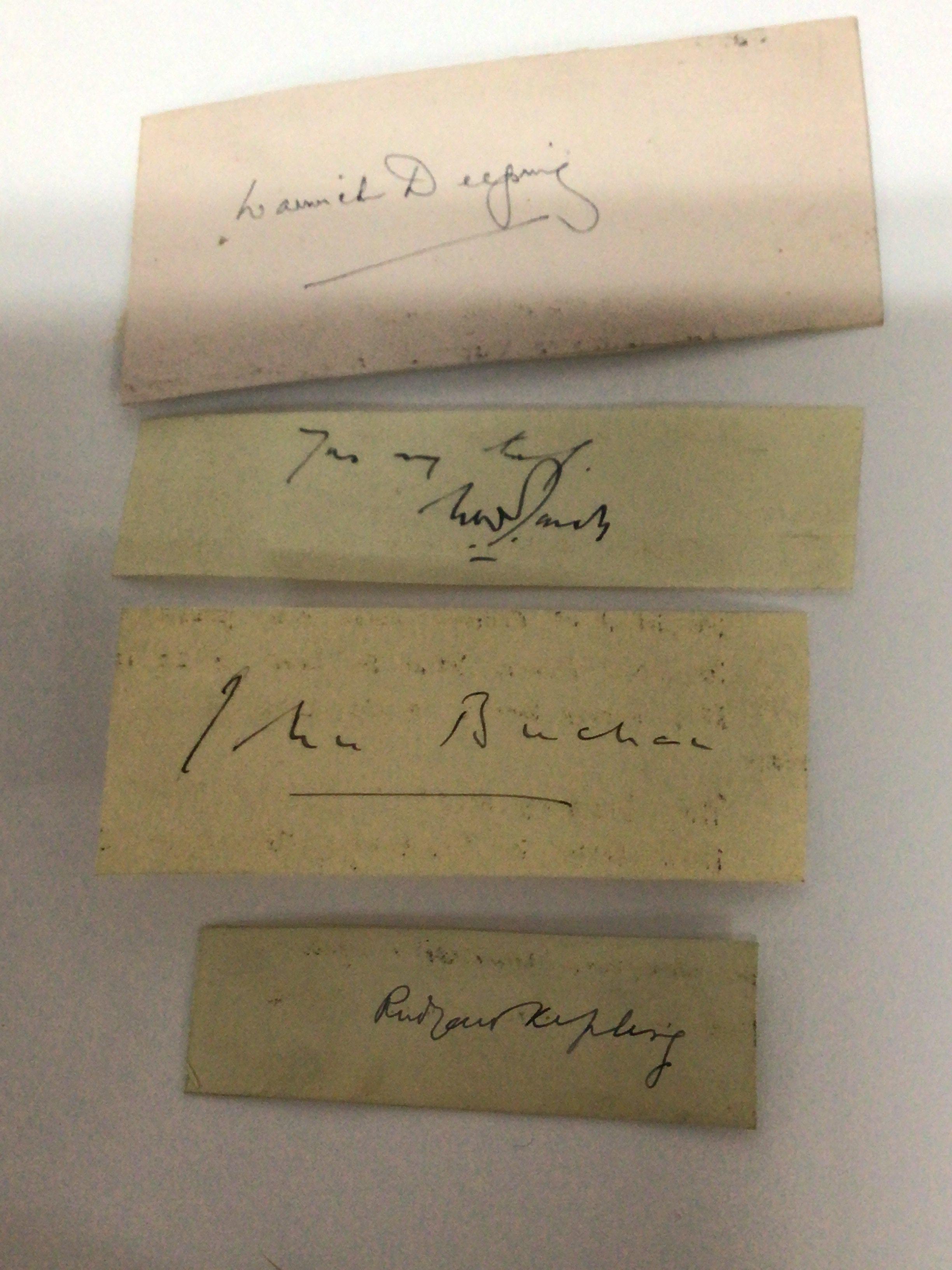 Guaranteed to be Authentic signatures. Poets and Authors of the early 20th Century Rudyard Kipling (1865-1936) Resting in Poets Corner Westminster Abbey works including the Jungle book The Soldiers Poet won Nobel Prize 1907. Warwick Deeping born in Southend on Sea (1877-1950) Writer and Author. WW Jacobs William Wymark Jacobs (1863-1943) English Author. John Buchan (1875-1940) Scottish Author best selling book The Thirty Nine Steps. (4)