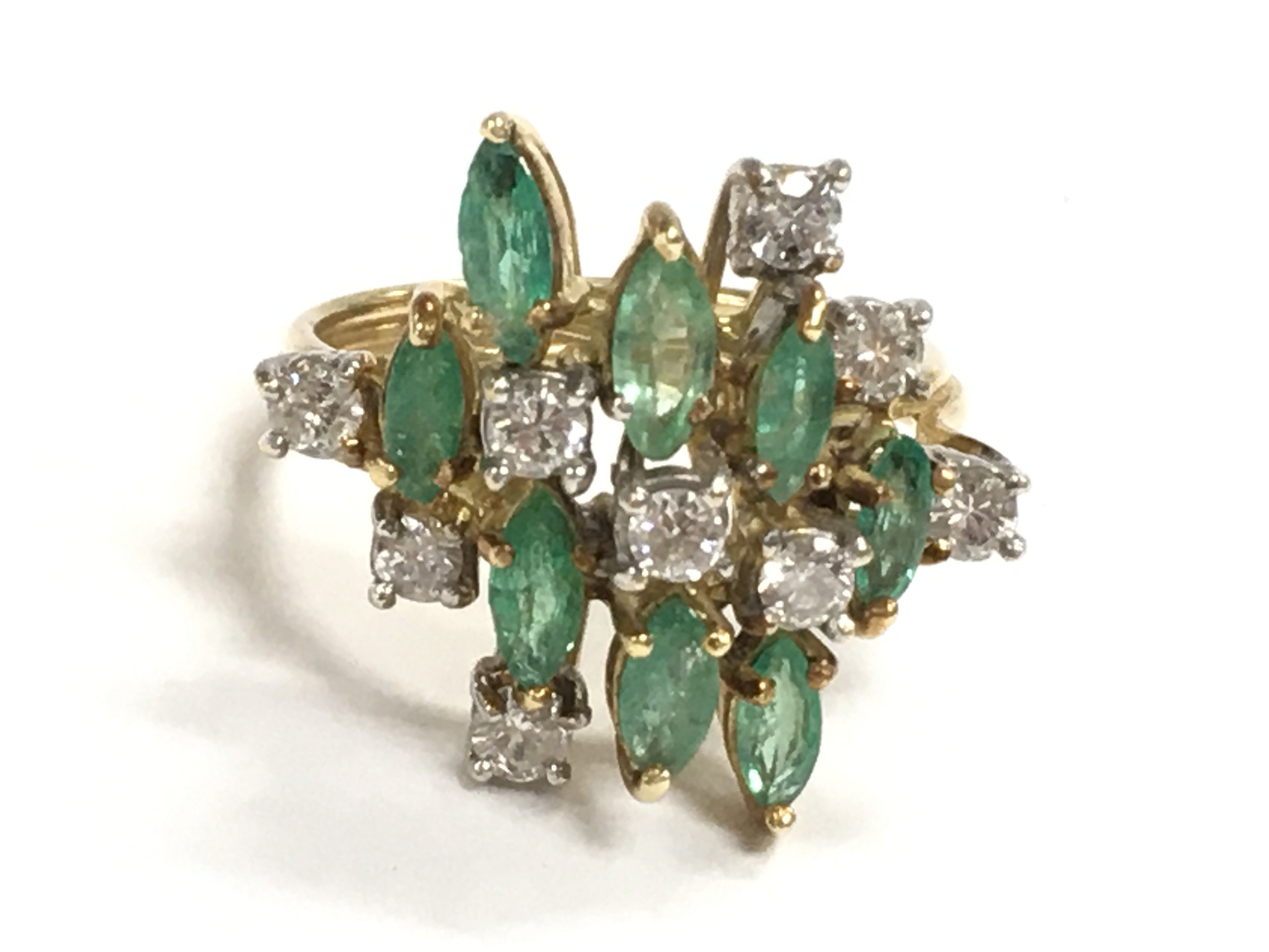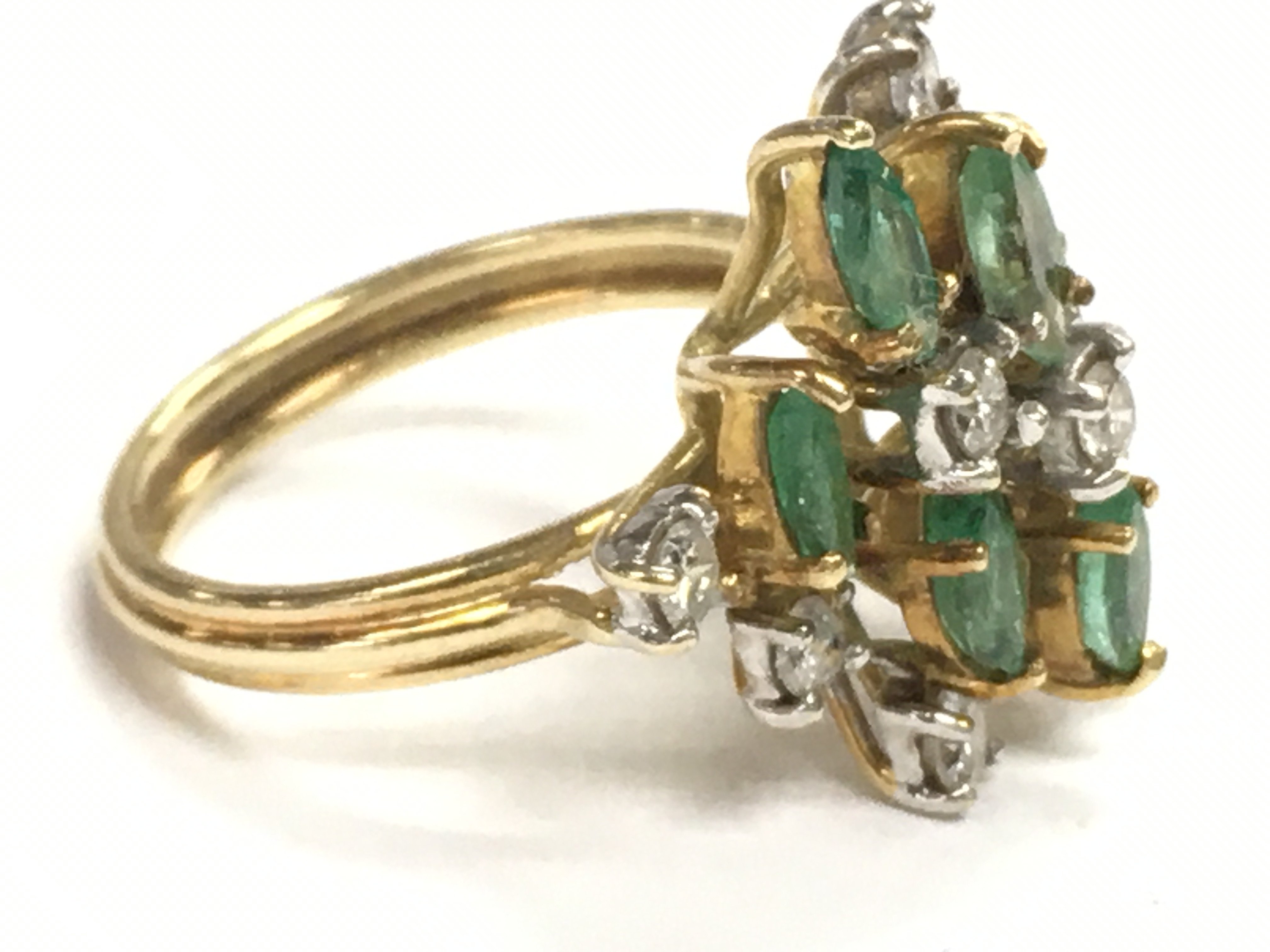 A high carat gold emerald and diamond ring , size L/M. Postage category A
