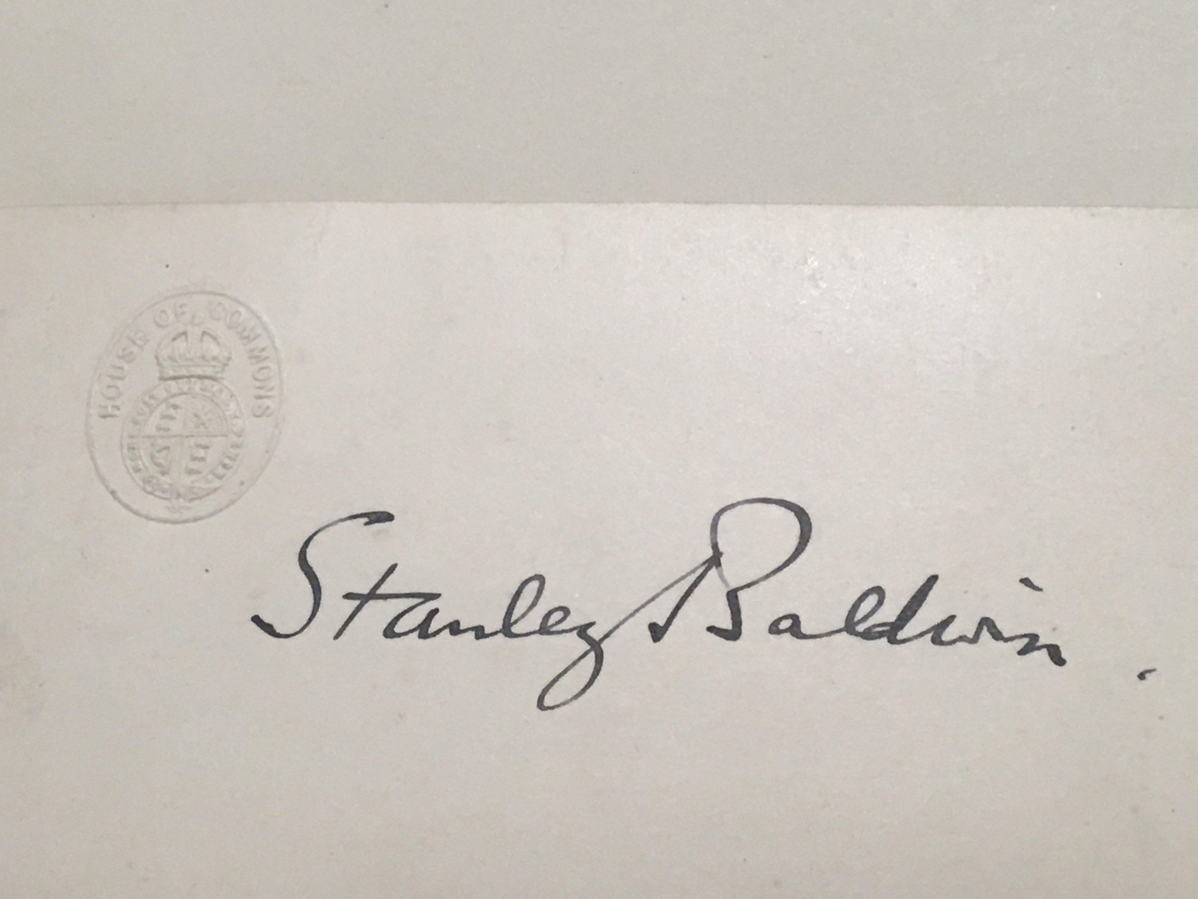 Guaranteed to be an Authentic Autograph signitures. Stanley Baldwin (1867-1947) Three times a British Prime Minister the signature on card with House of Commons stamp sold with another autograph Lord Reading Rufus Isaacs also Viceroy of India (2)