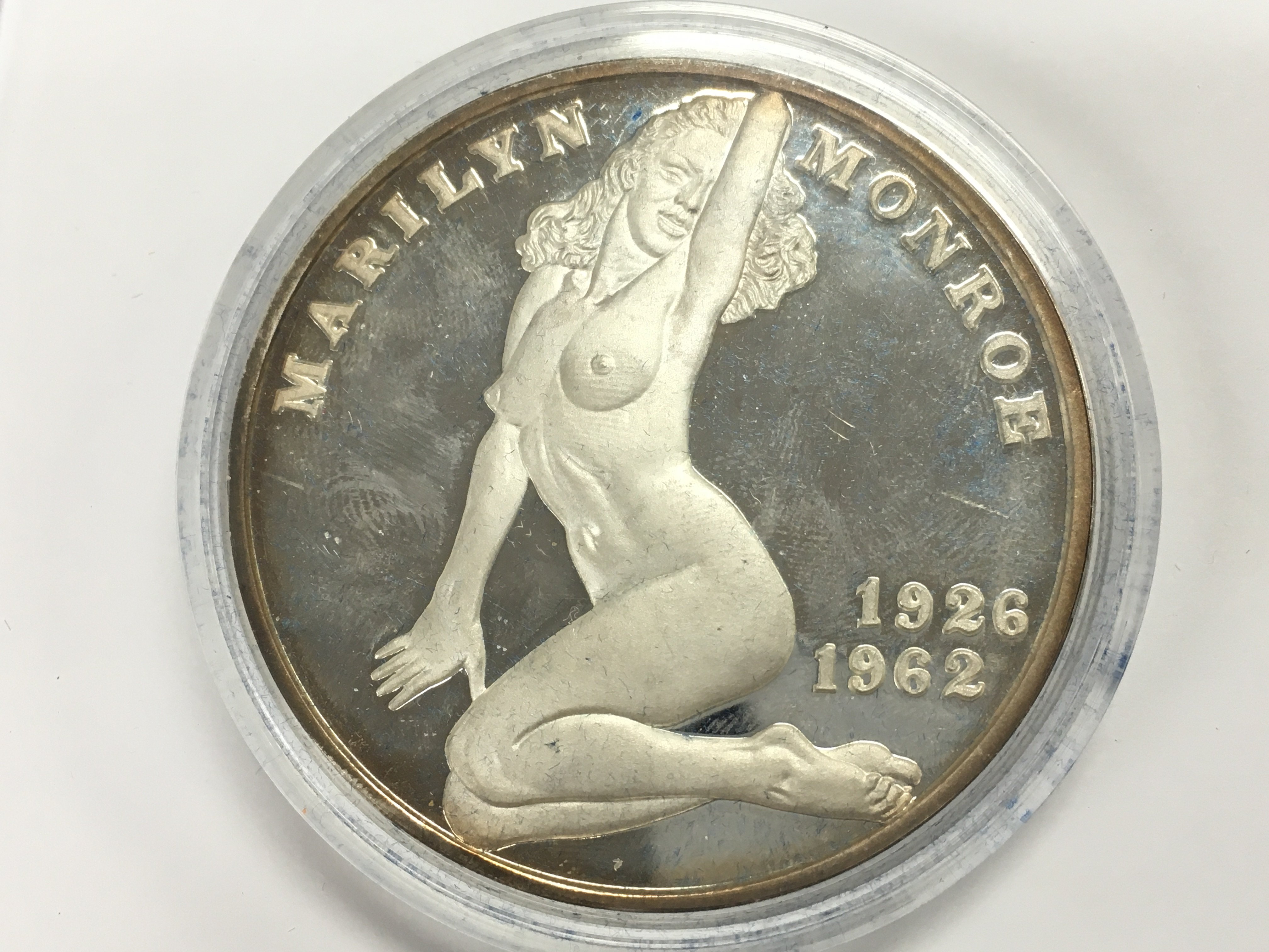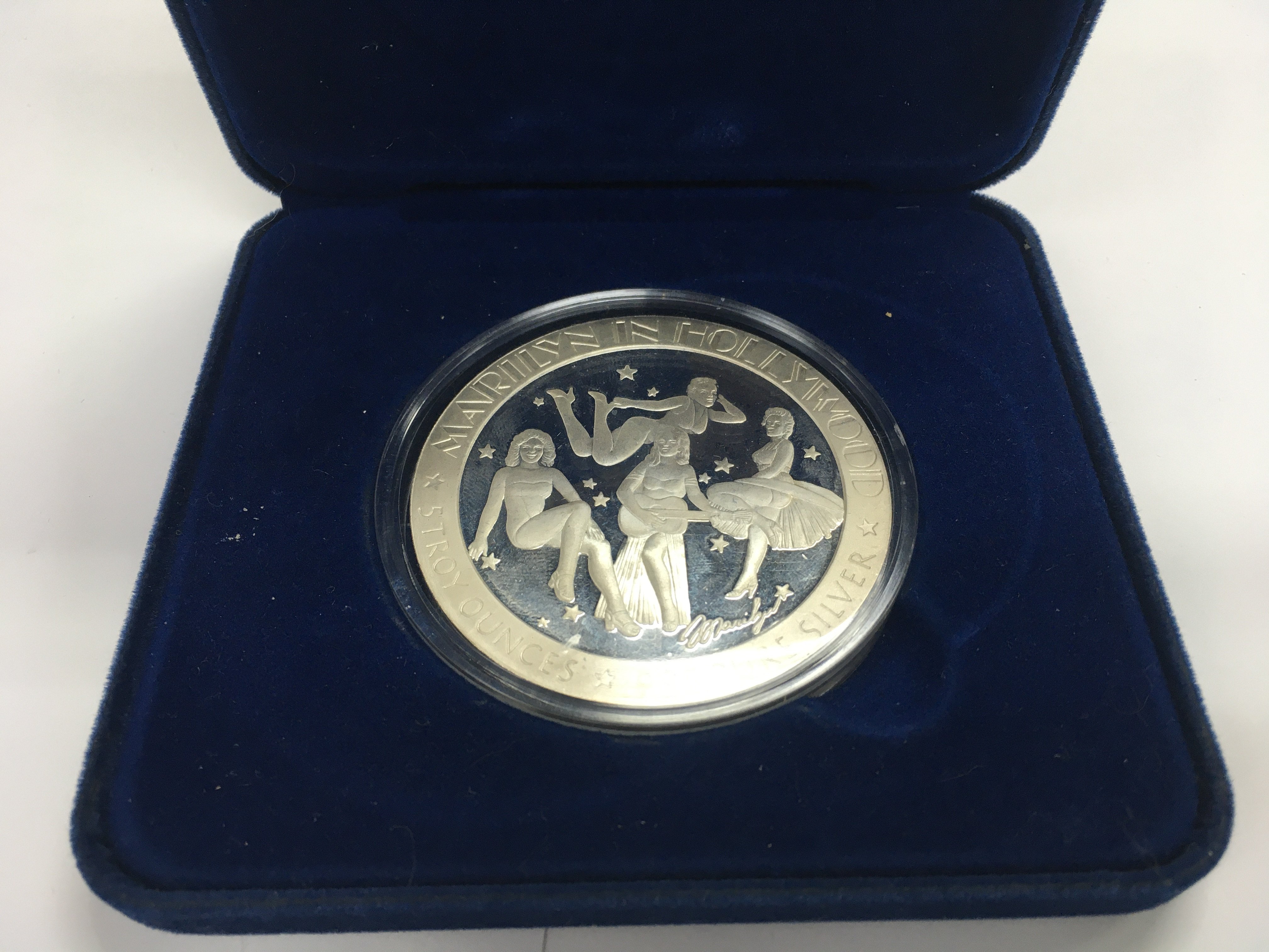 A 5oz silver Marilyn Monroe round with case.Postage B