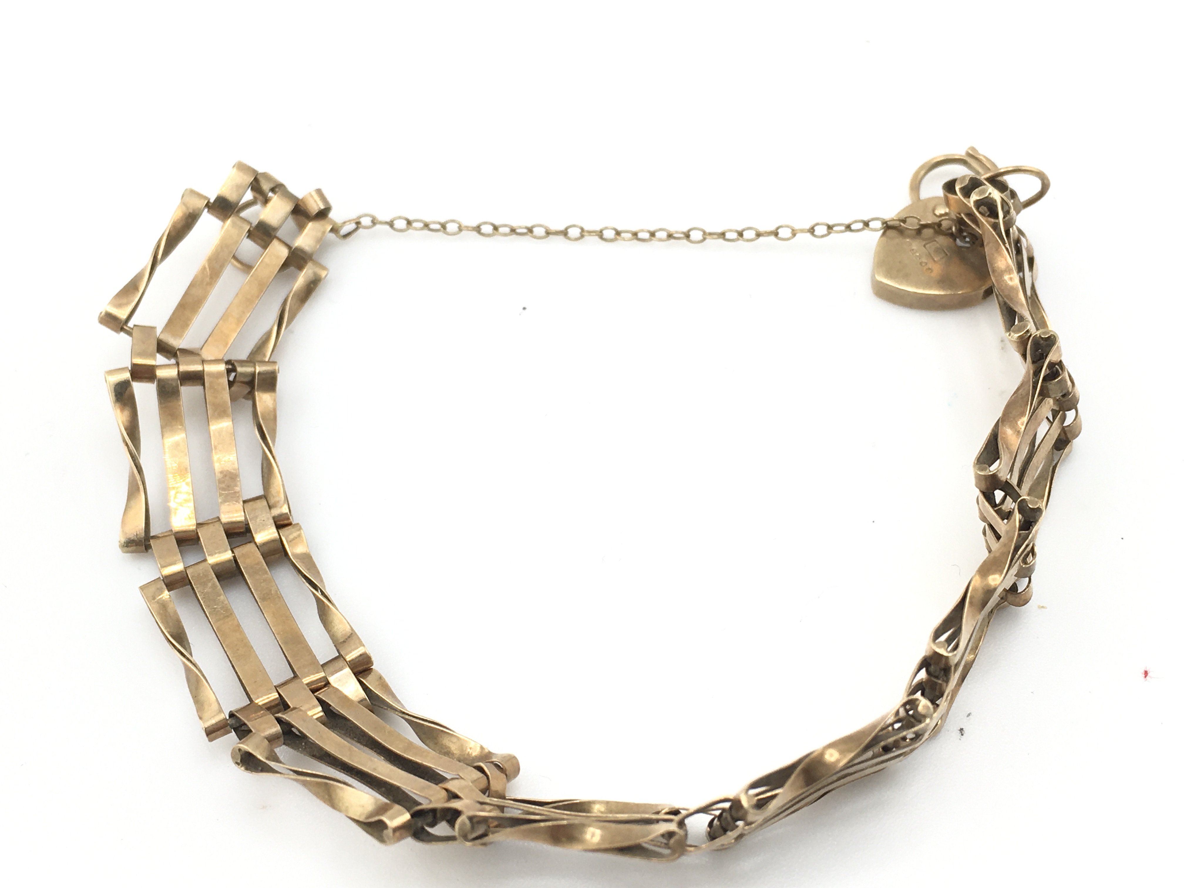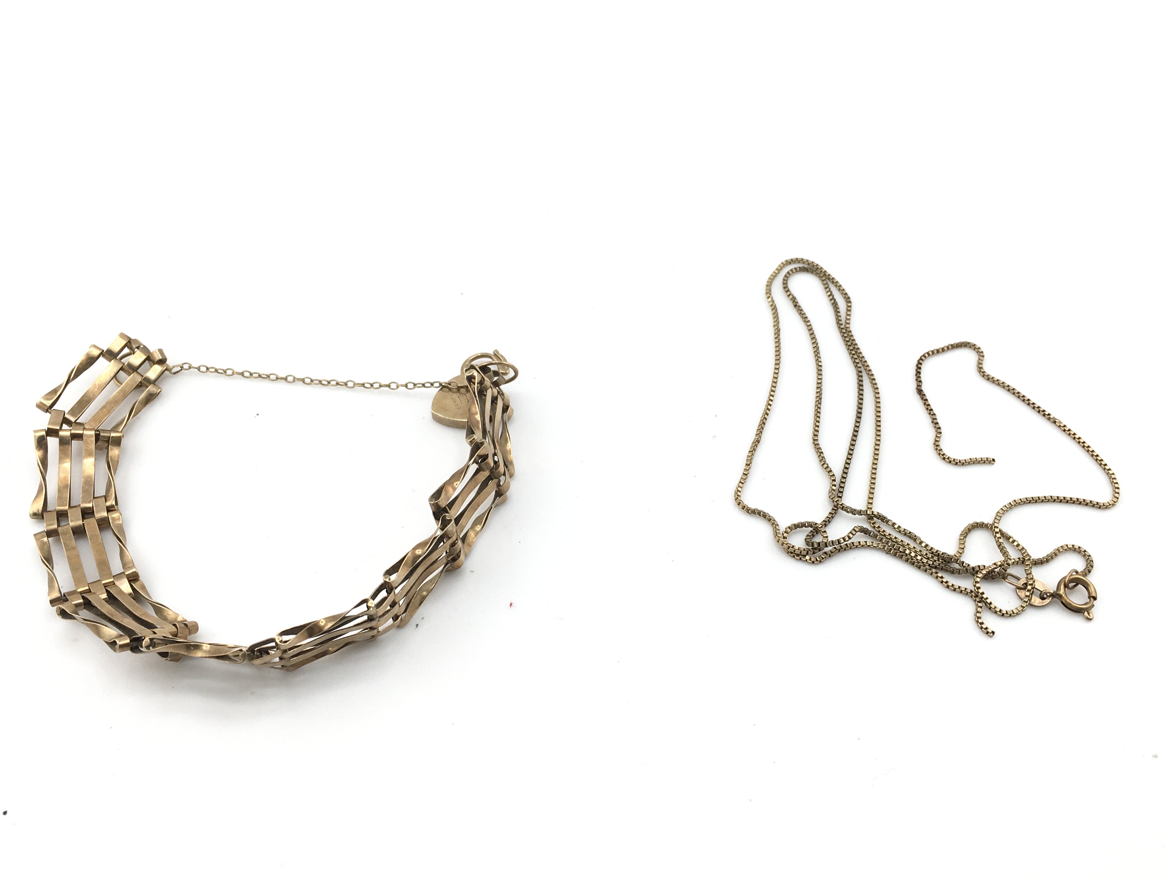 A 9ct gold gate bracelet and a 9ct gold necklace (A/F) 11.64g total. Postage A