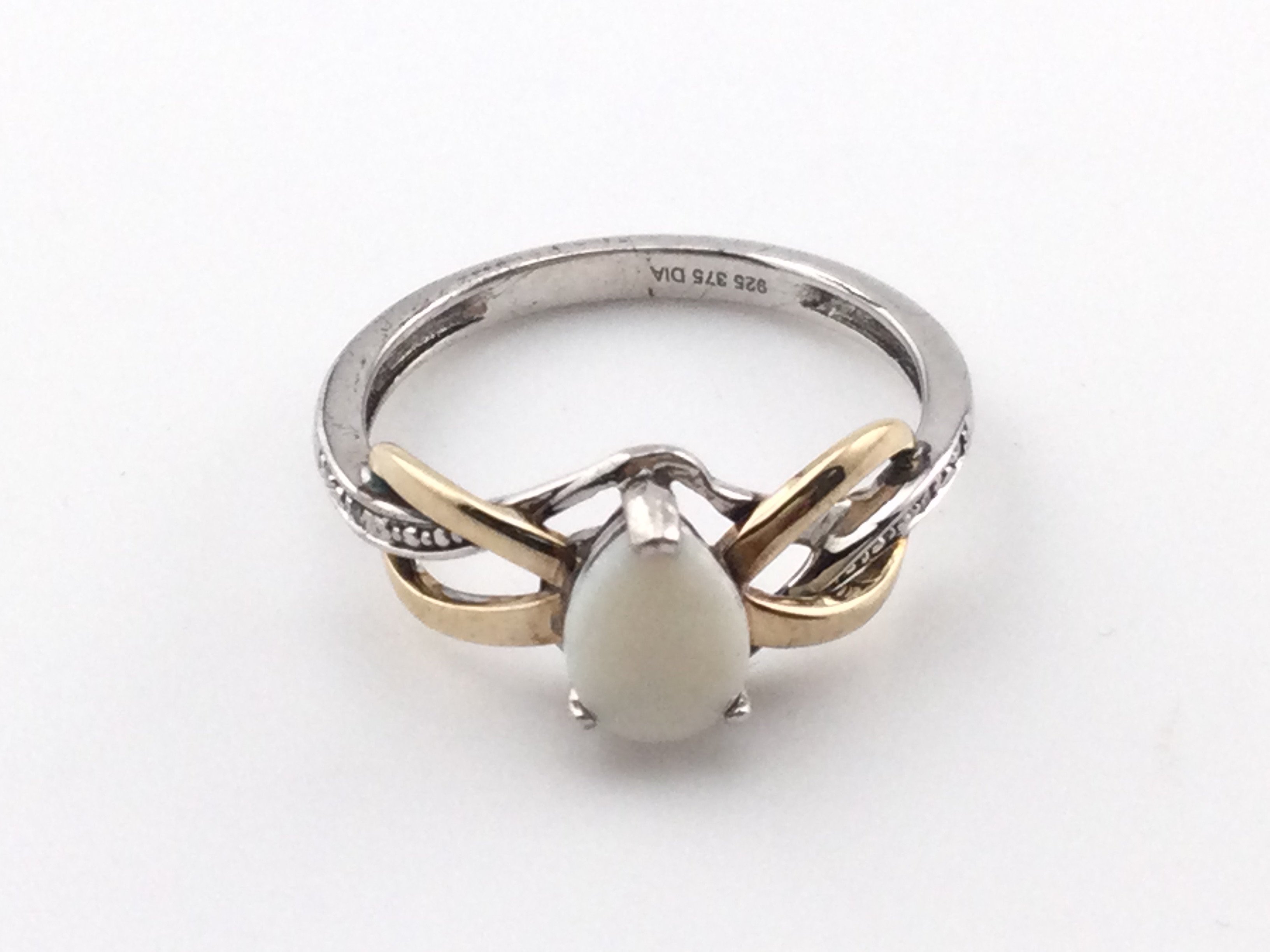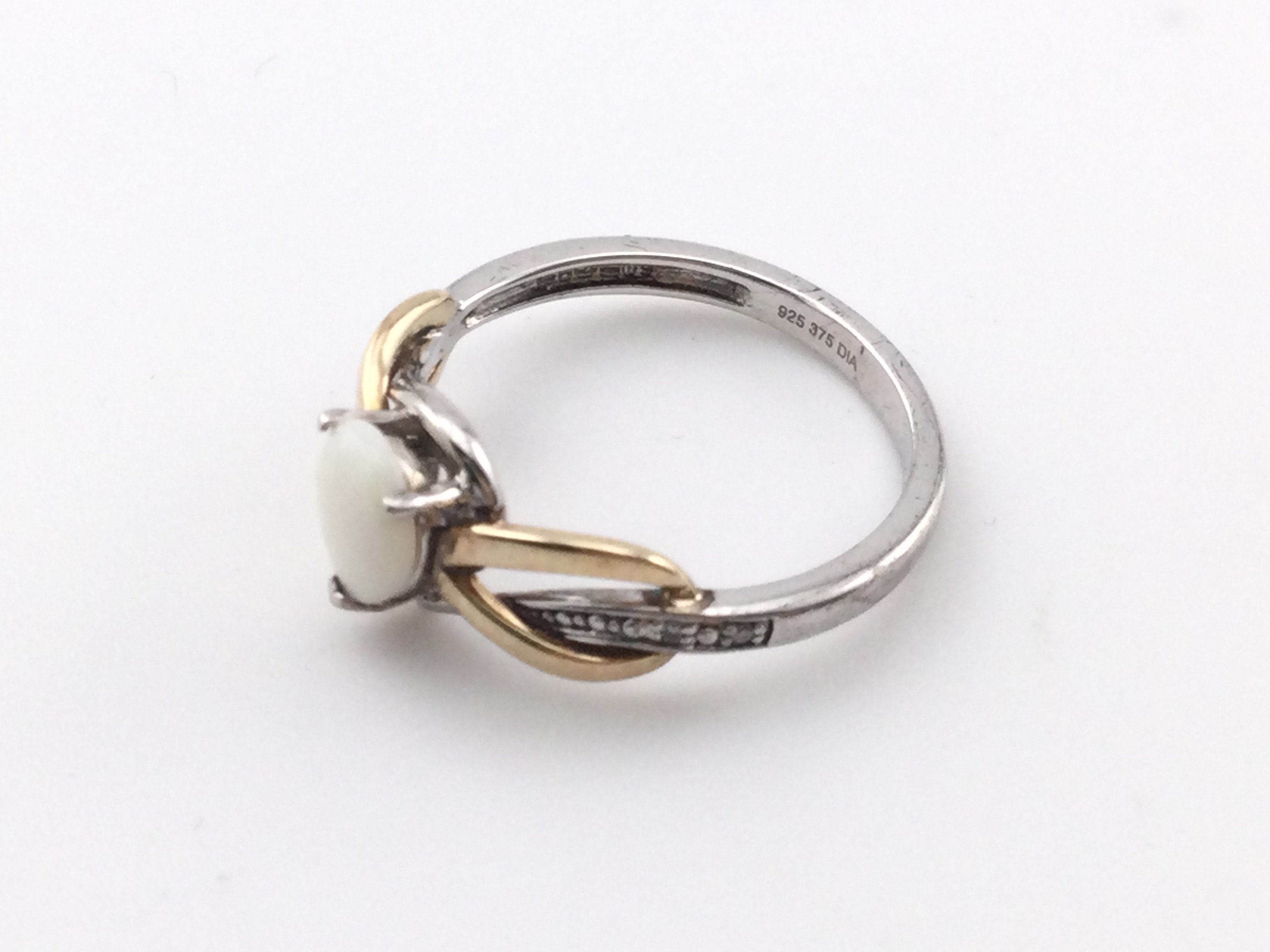 A silver and 9ct gold ring with a central opal. Size L and 1.9g Postage A