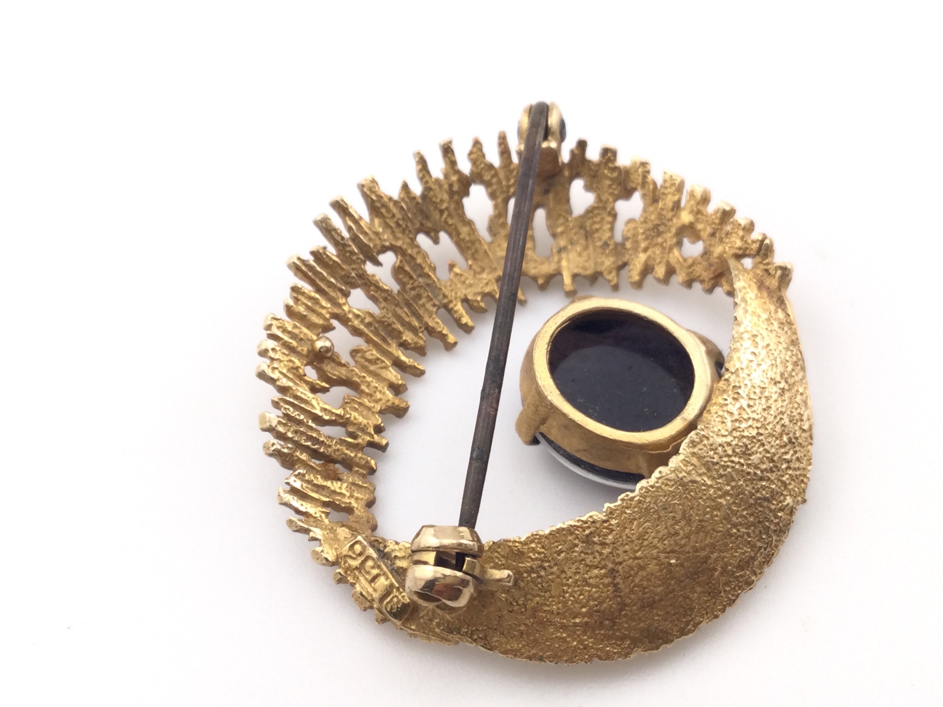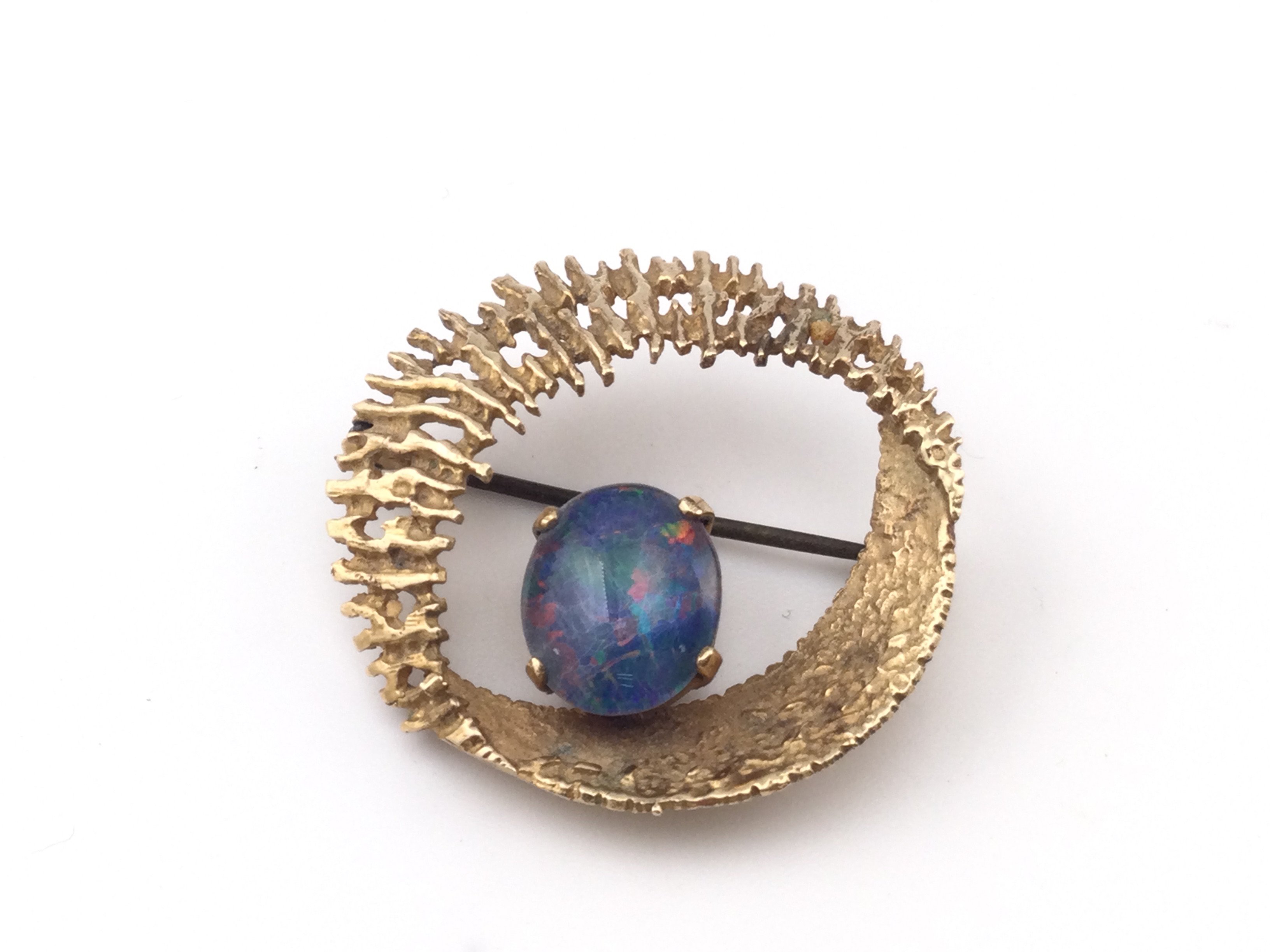 A 9ct gold brooch set with opal. 5.22g and approx 30mm diameter. Postage B