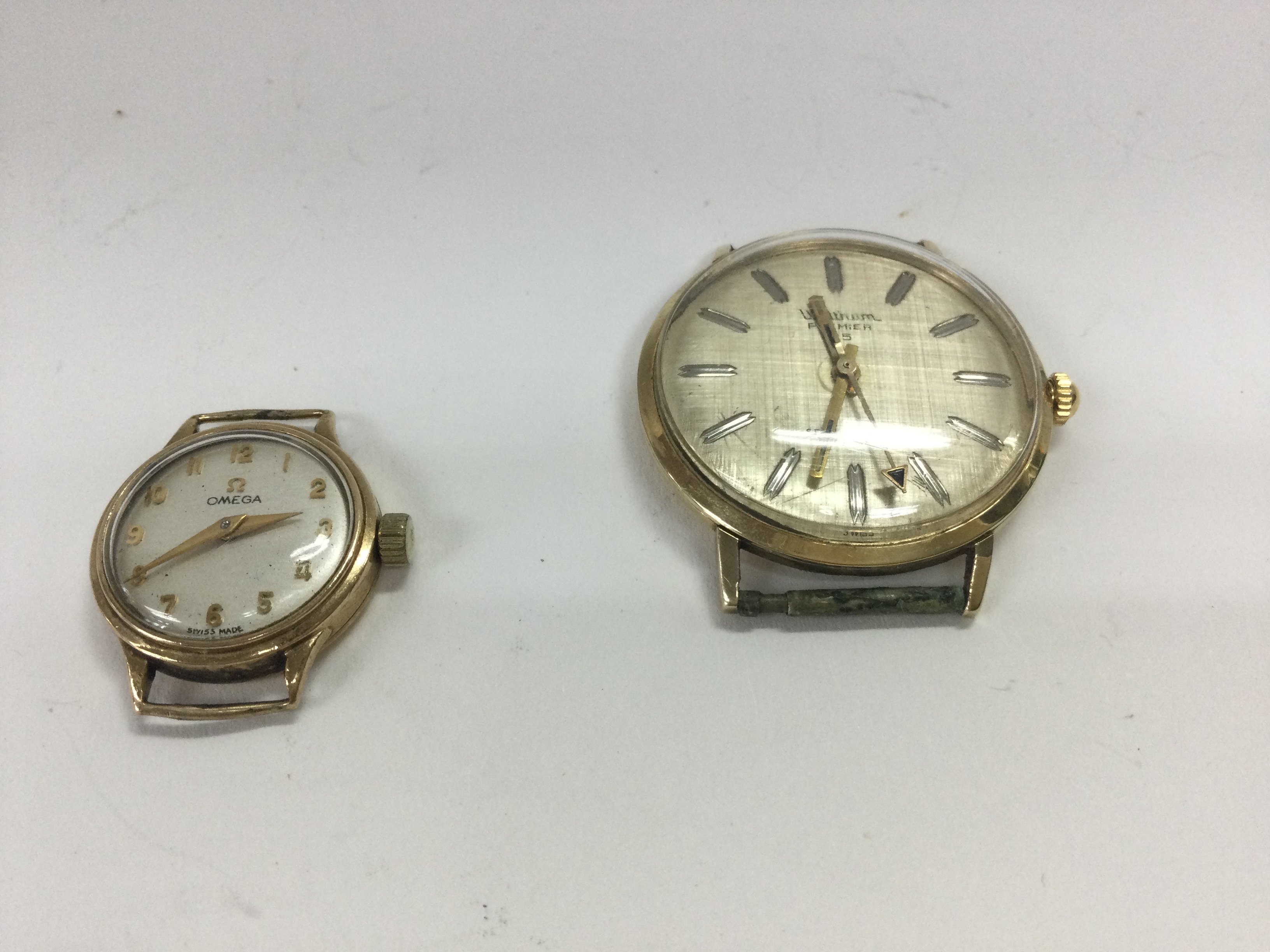 a 14ct gold case Waltham wristwatch and a 9ct gold cased ladies omega watch.