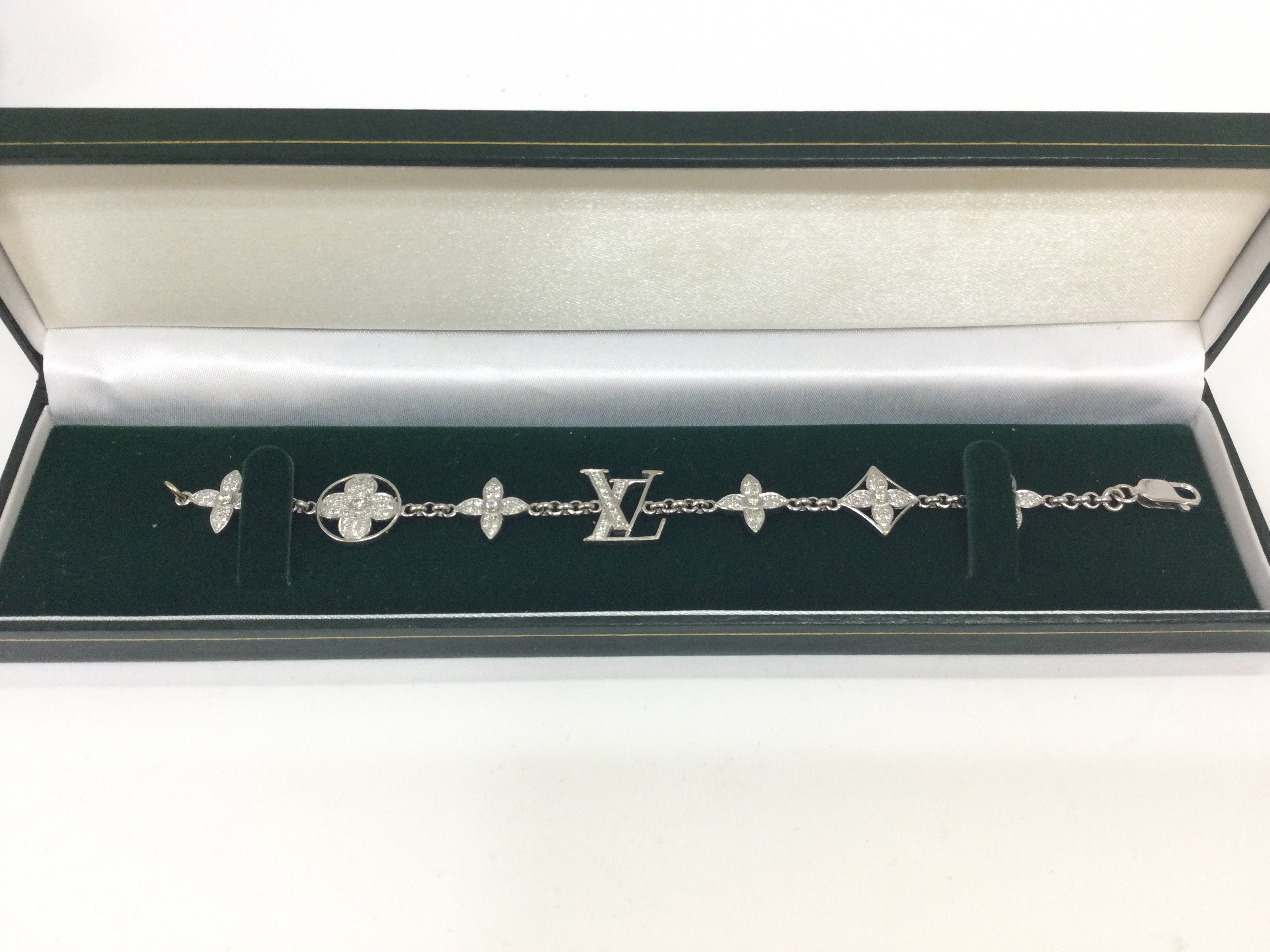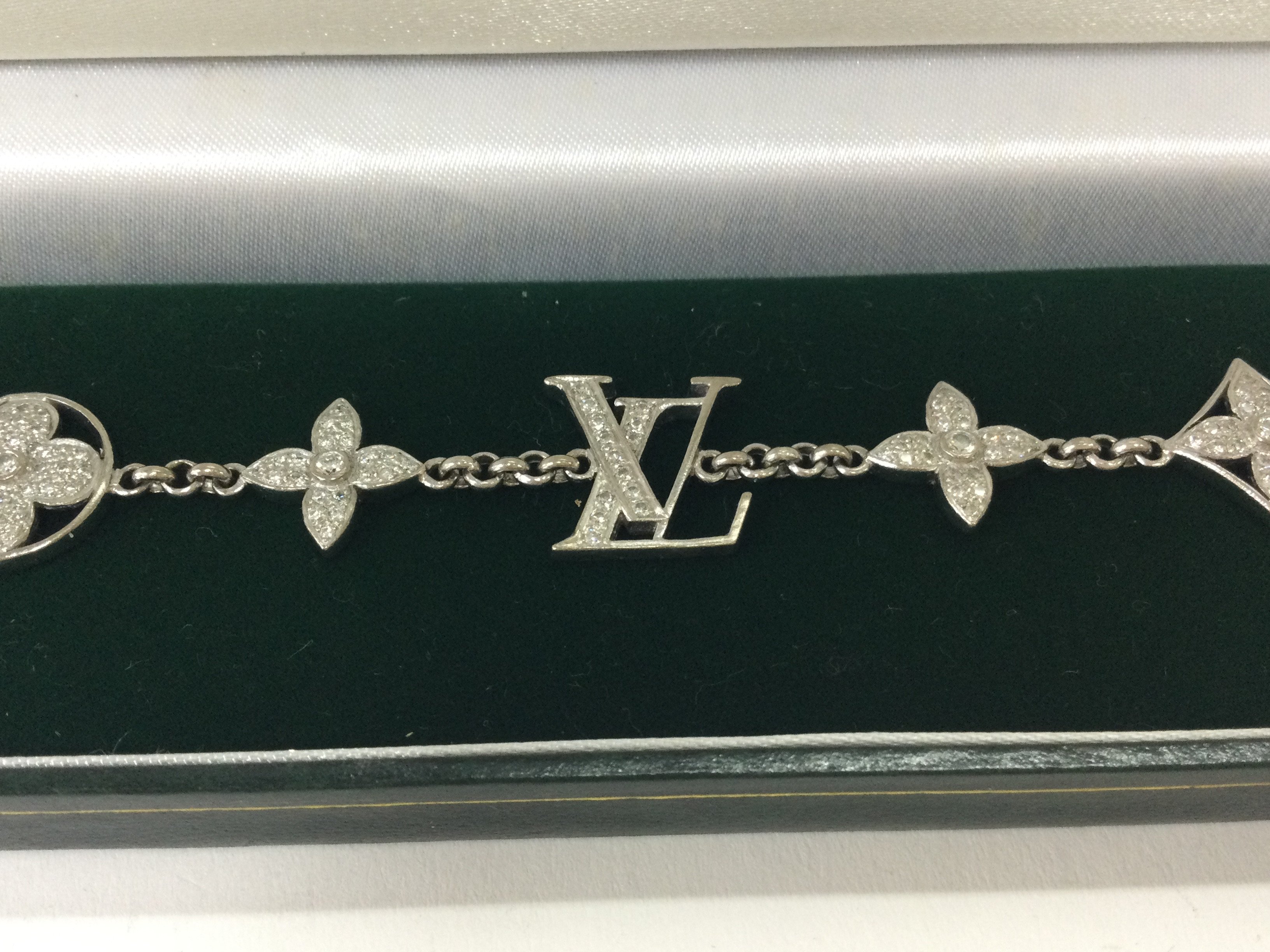 An LV 18ct white gold and diamond bracelet. Approx weight 17.82 grams.
