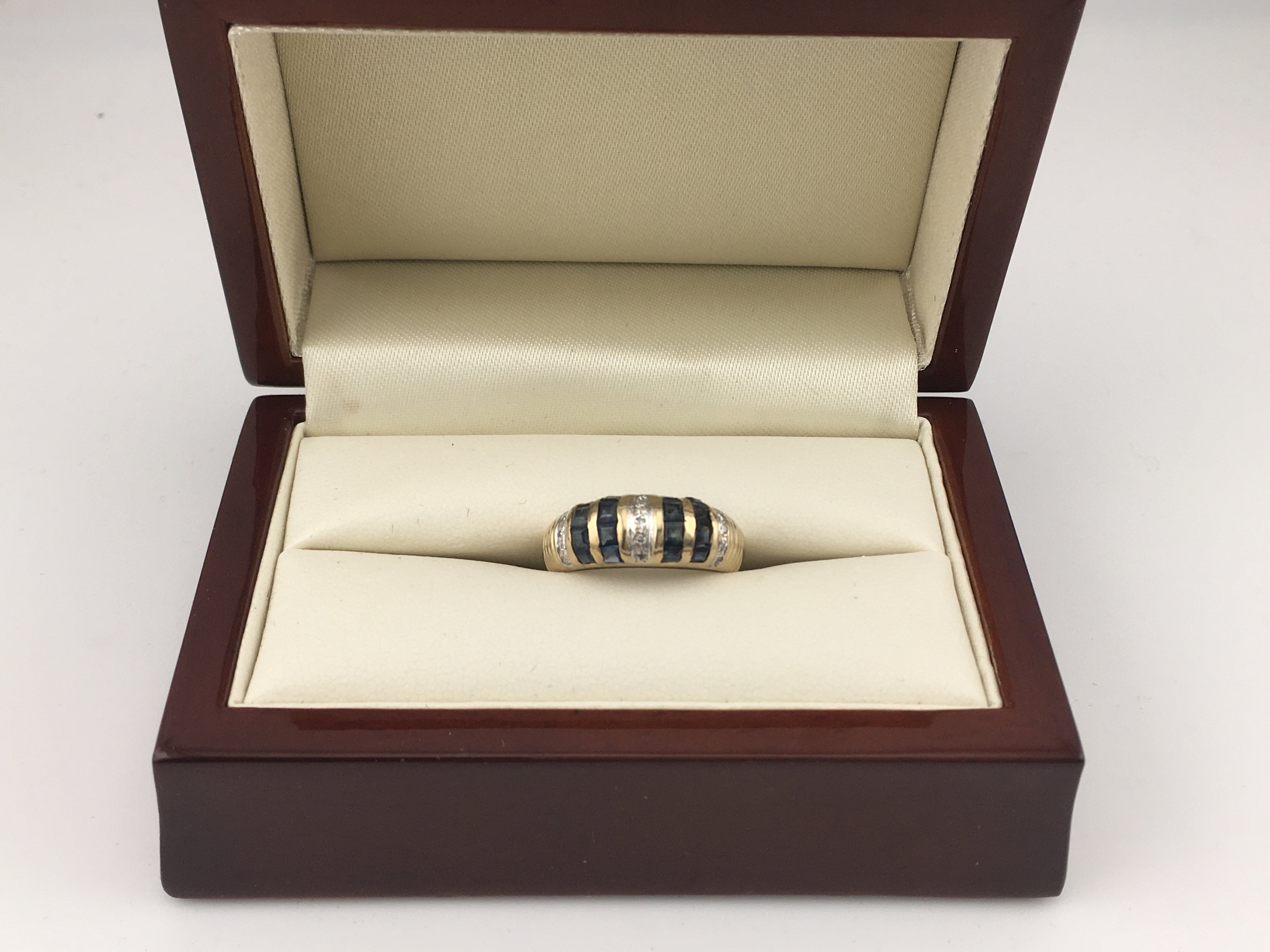 A 9ct gold diamond and sapphire ring. Approx weight 2.97 grams, Approx size L1/2.