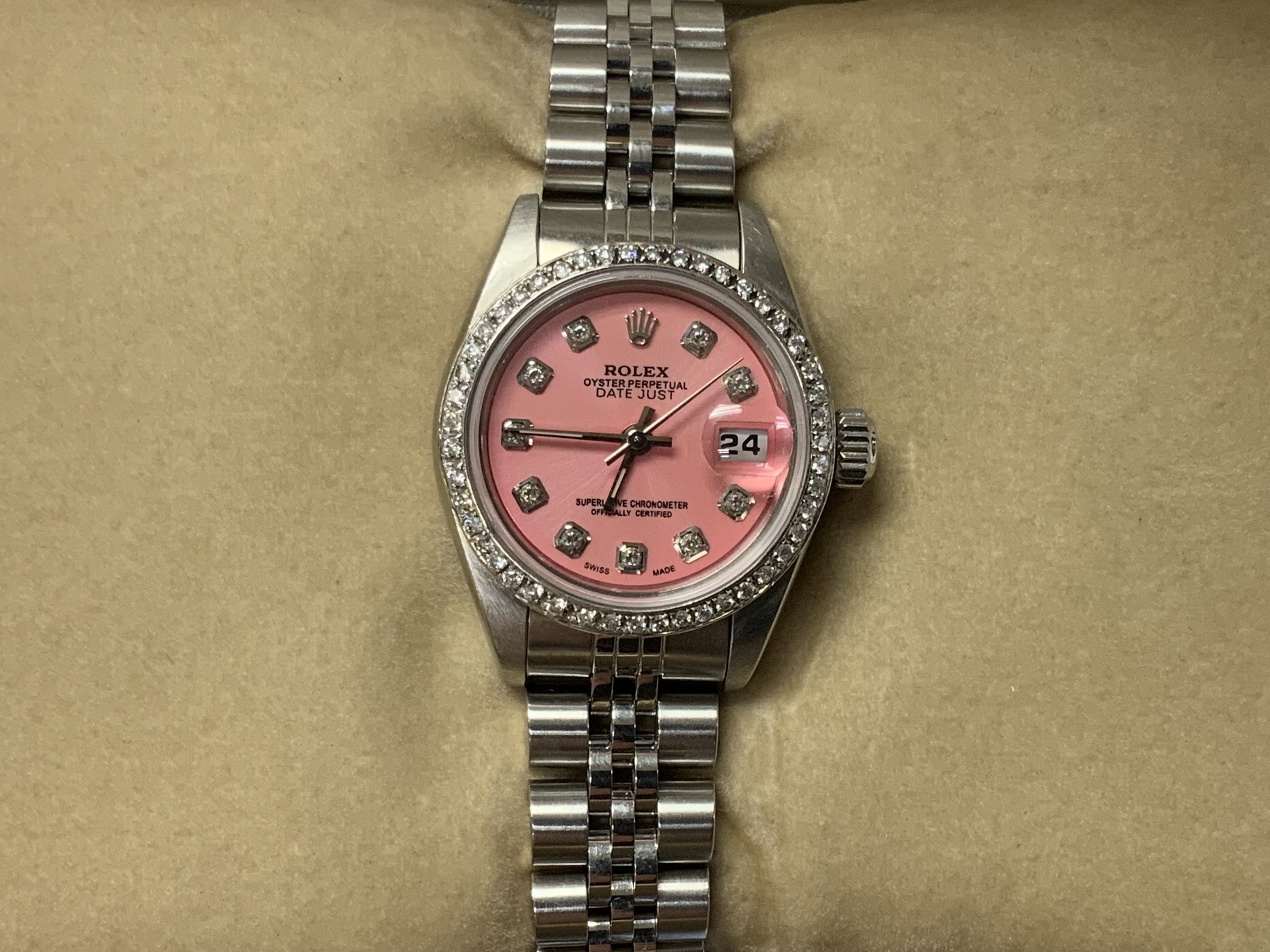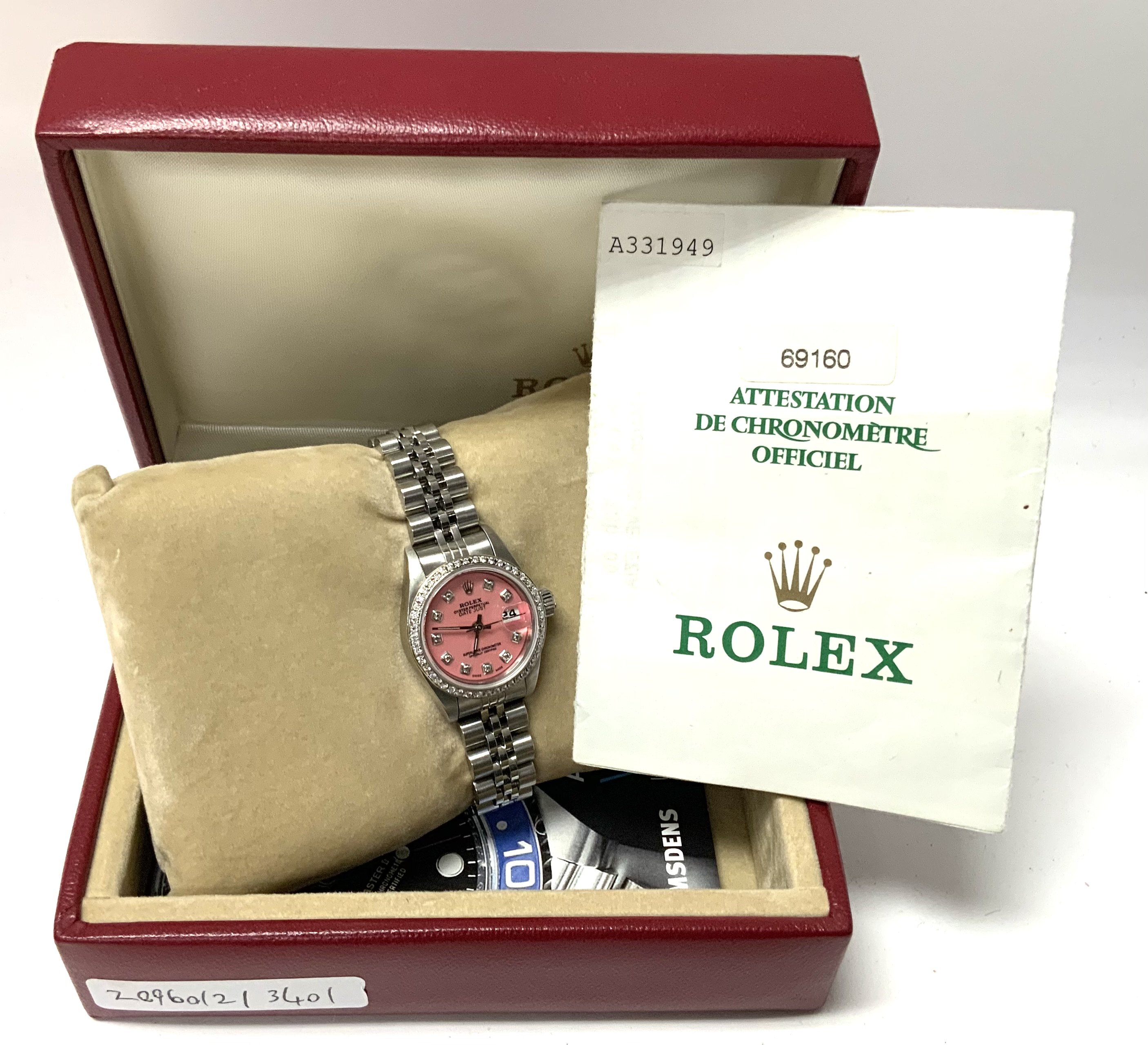 Rolex Datejust Ladies 26mm 69160 Pink Diamond Dial & Diamond Bezel Box Oyster Wristwatch. (A) Serial No. A331949.
