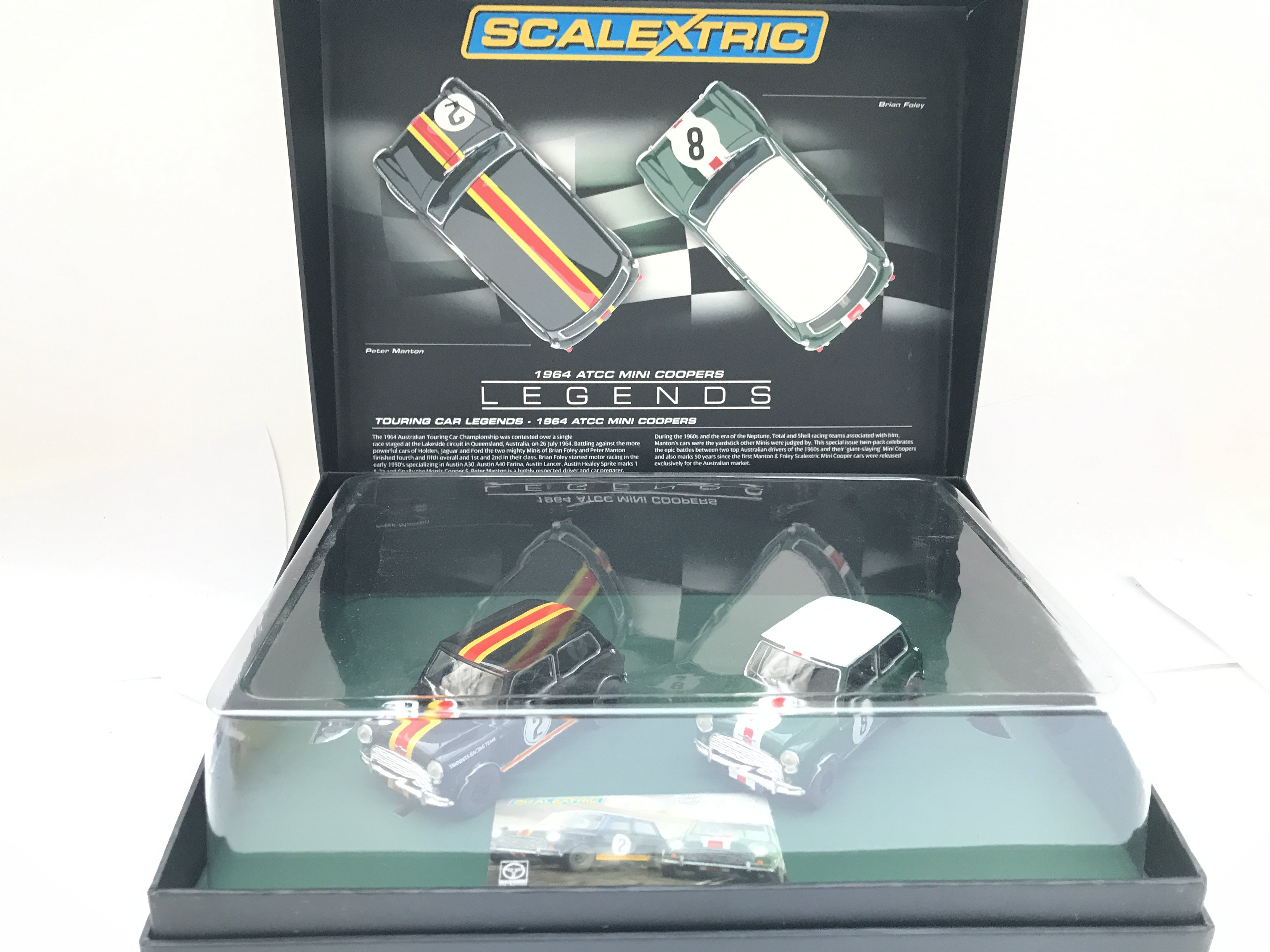 A Boxed Scalextric 1964 ATTC Mini Coopers Legends Set.