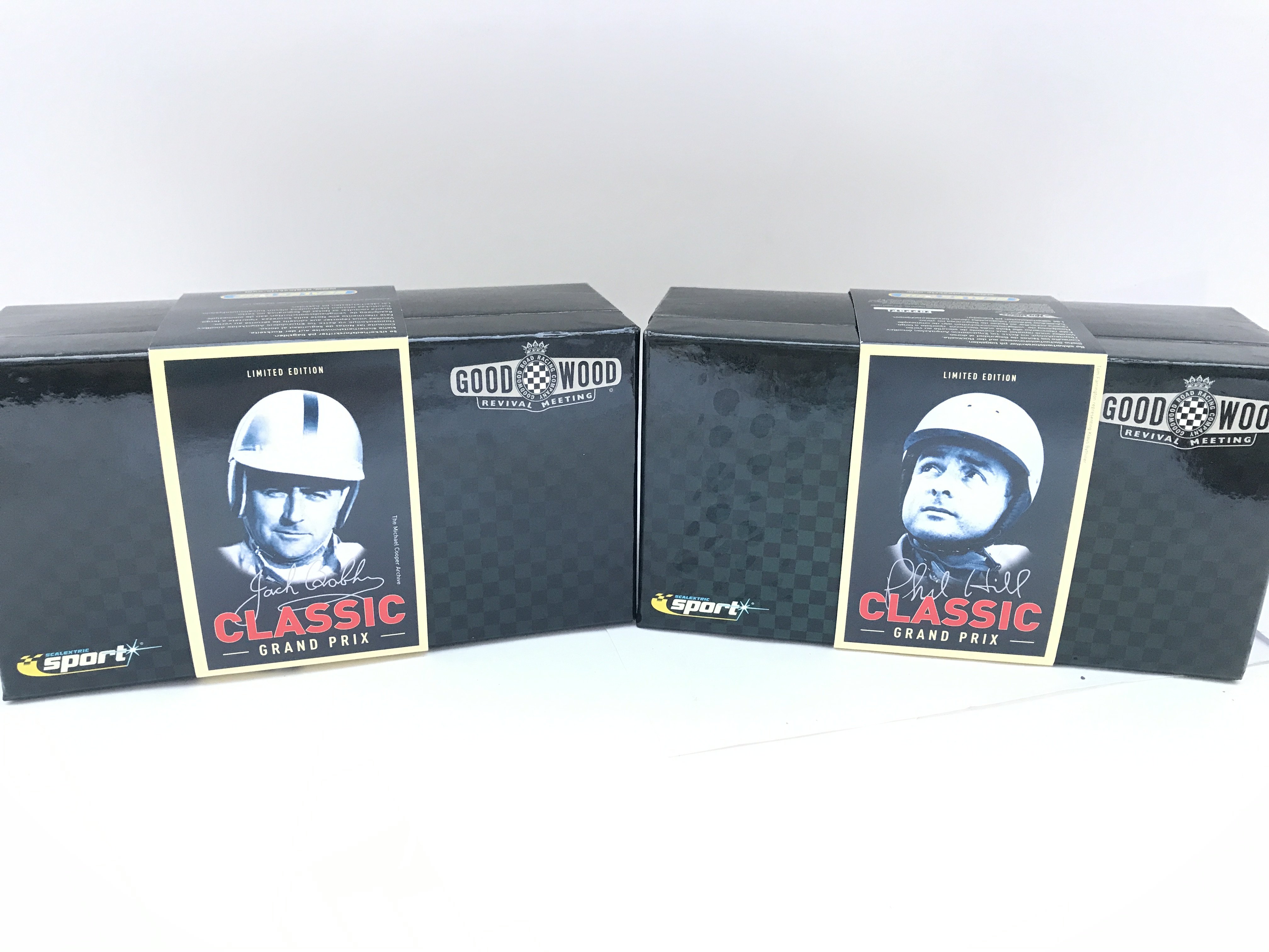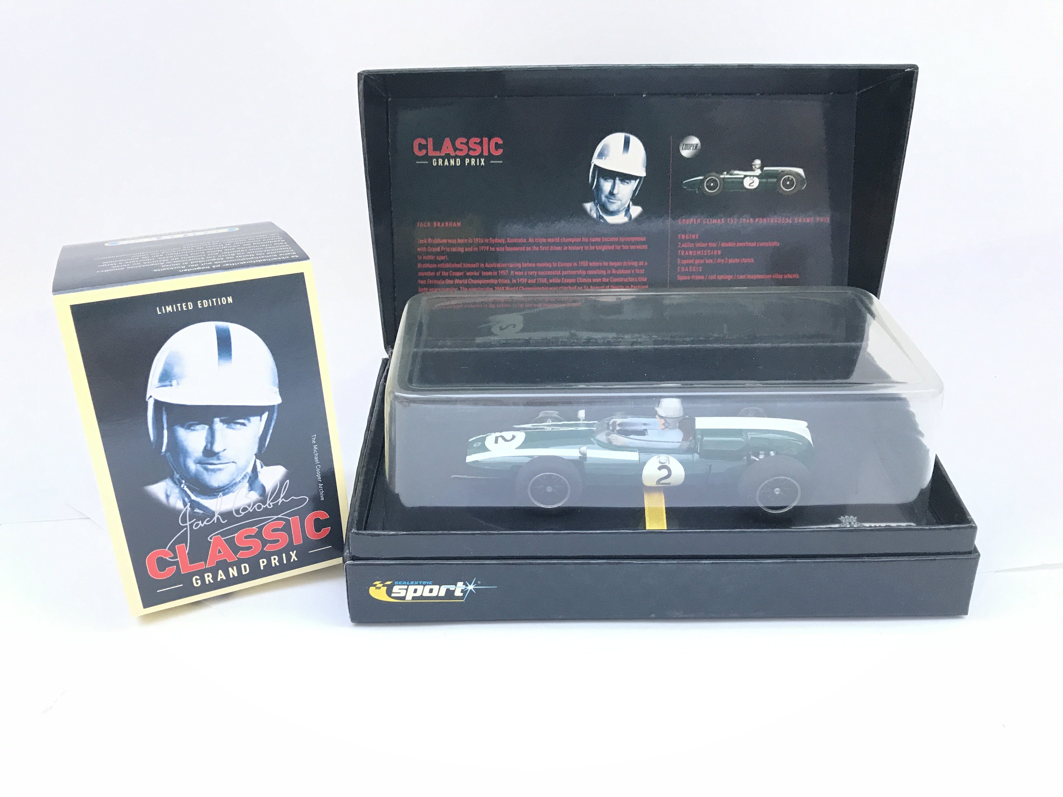 A Boxed Scalextric Phil Hill Ferrari 156 F1 No.4 1961 German Grand Prix Car and Jack Brabham Cooper Climax T53 No.2 1969 Portuguese Grand Prix.