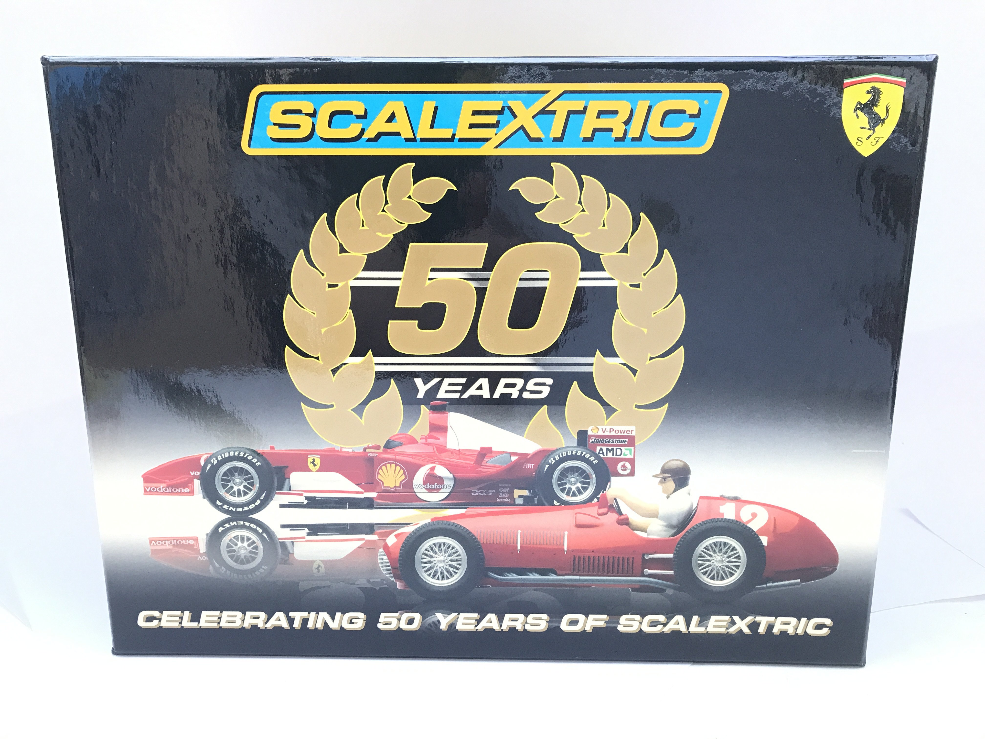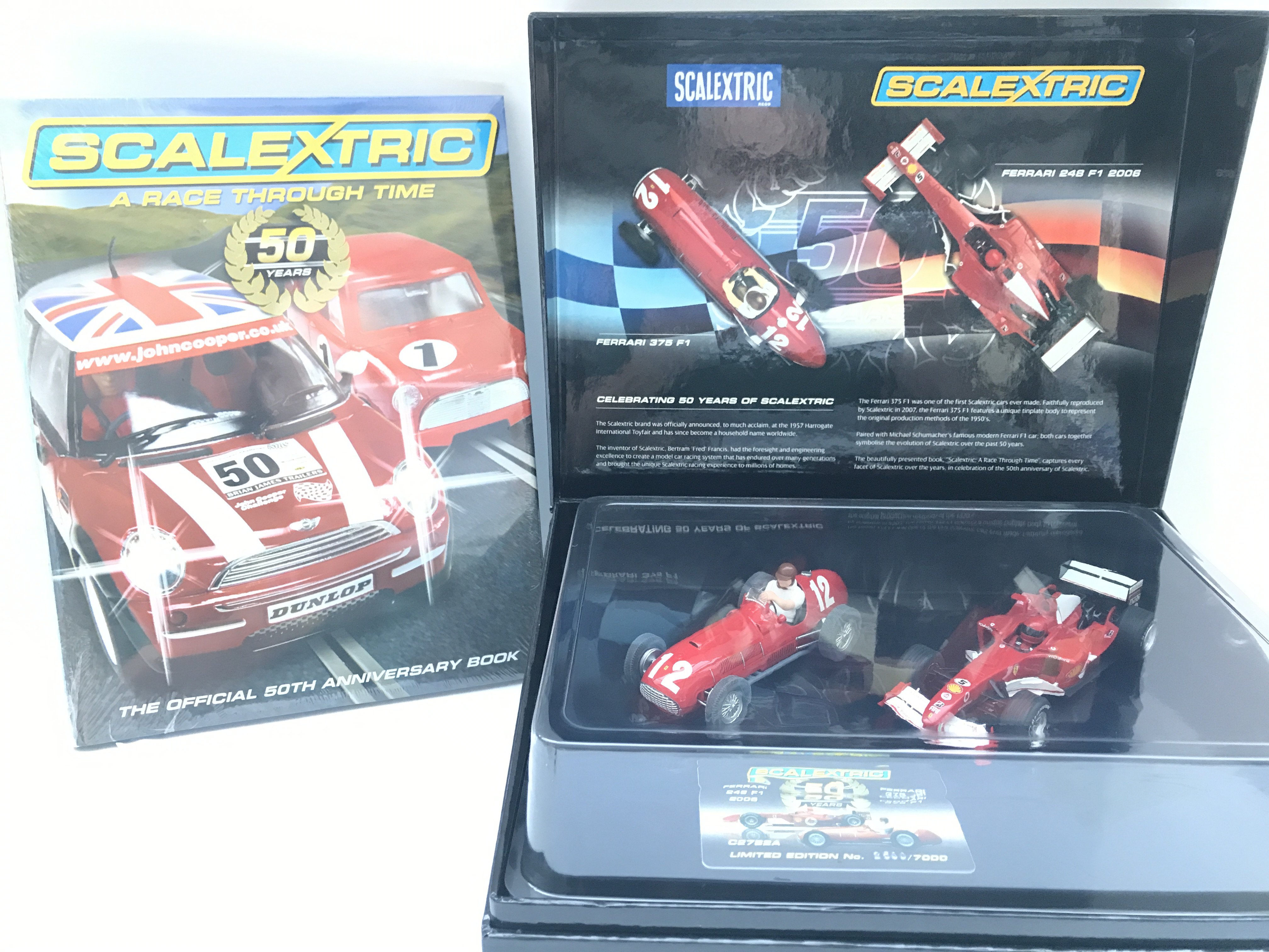 A Boxed Scalextric 50 Years of Scalextric Ferrari Set complete With Book.