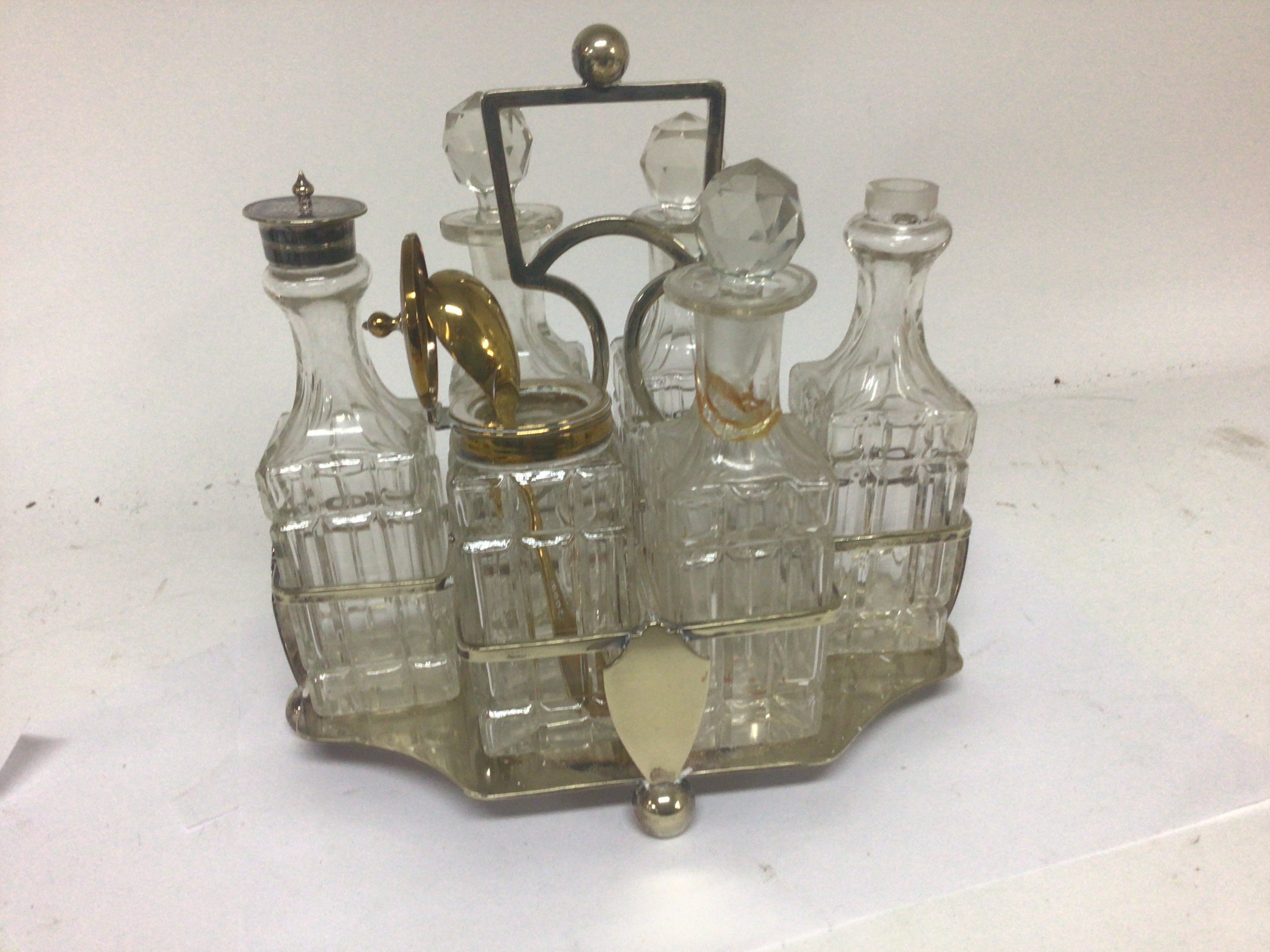 A late Victorian metal oil lamp base a hammered pewter box and other oddments and a silver plated cruite frame.