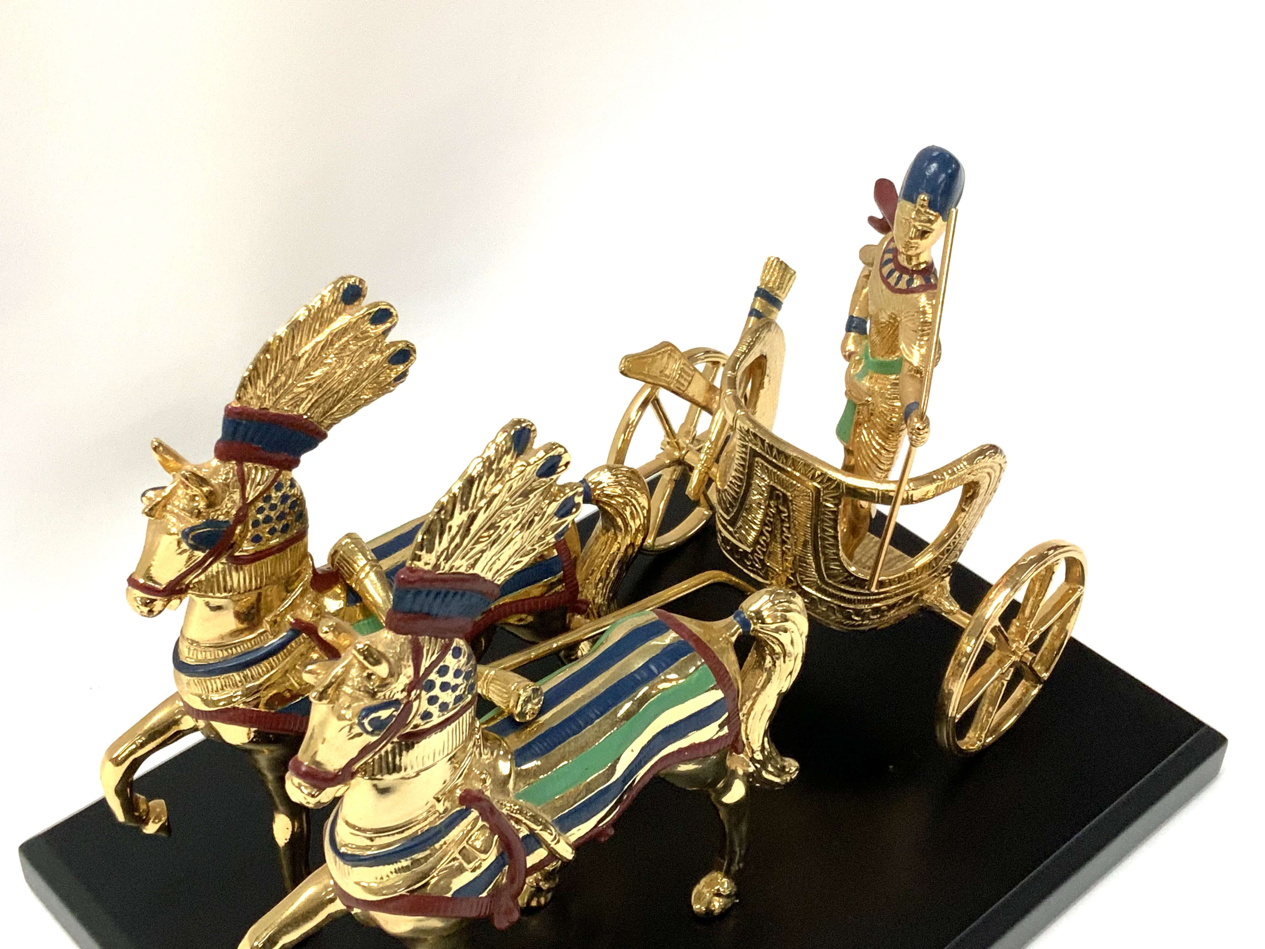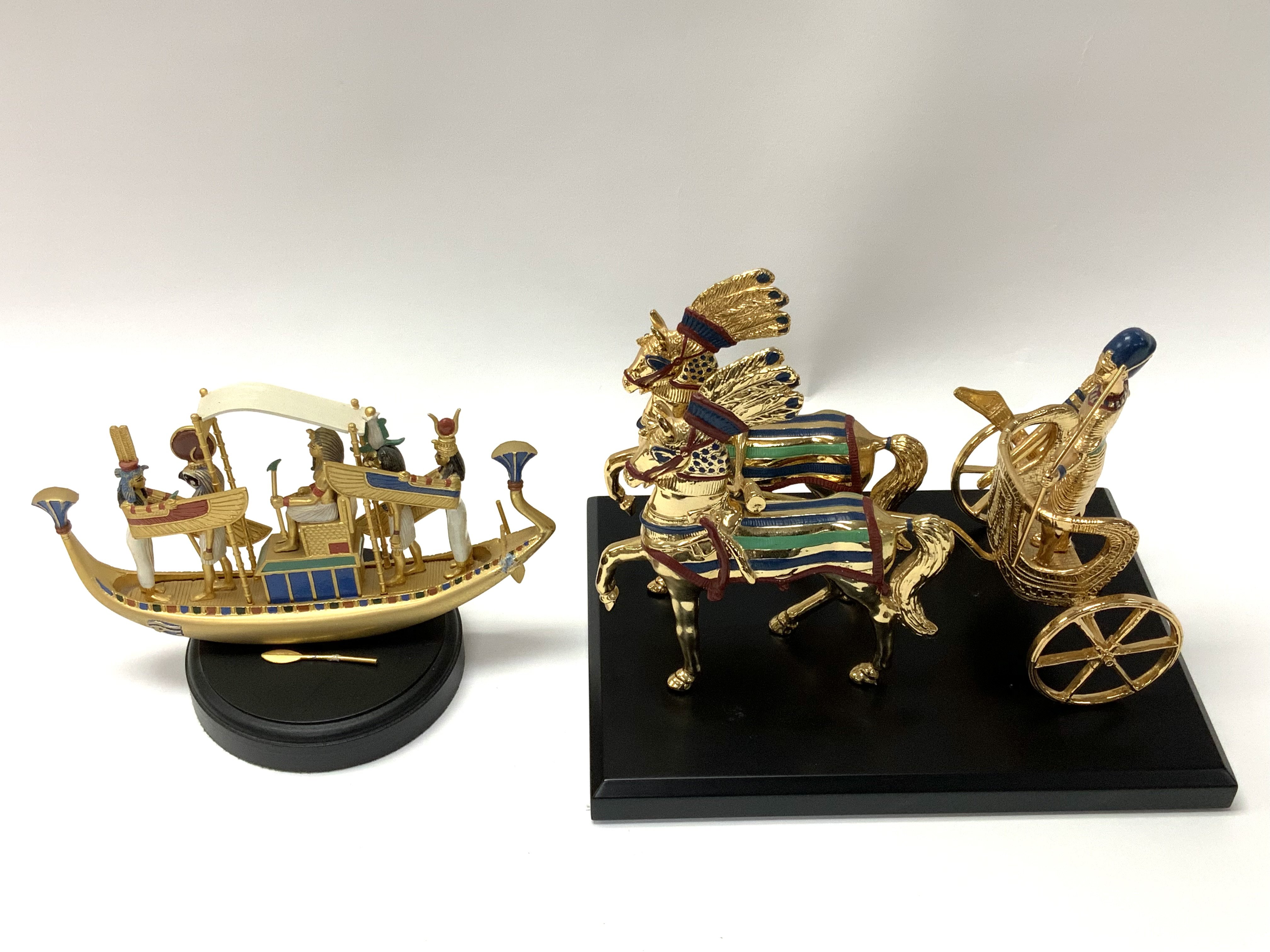 Compton & Woodhouse pewter figure group The Golden Chariot of Tutankhamen together with a gilded gondola. (D)