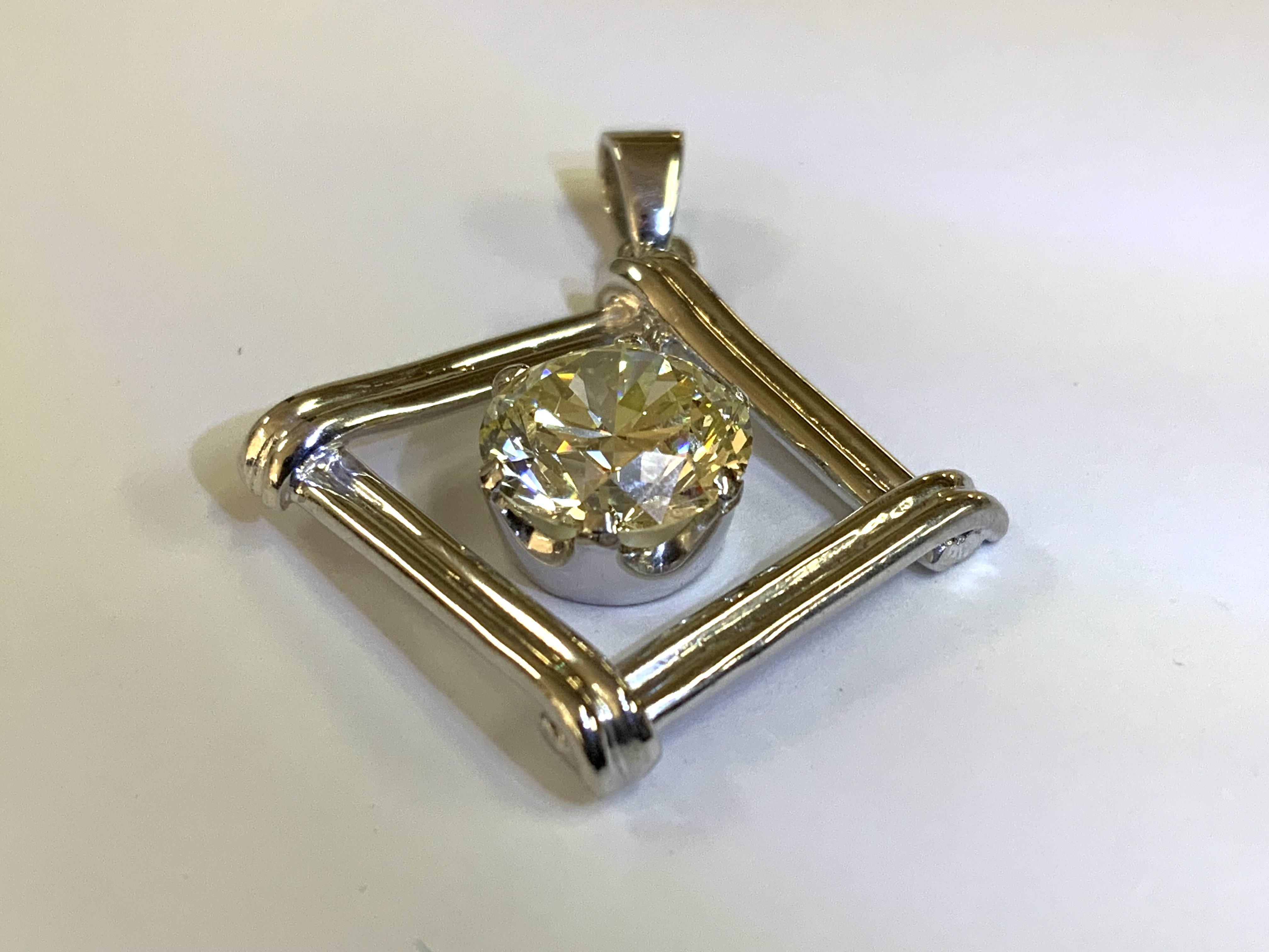 A single 2.05ct round brilliant cut diamond, Colour O/P, Clarity VS2 ( stone measurements 8.17-8.30 x 4.85mm. Mounted in an 6 claw 9ct white gold pendant mount with a 14ct gold rope necklace. (A)