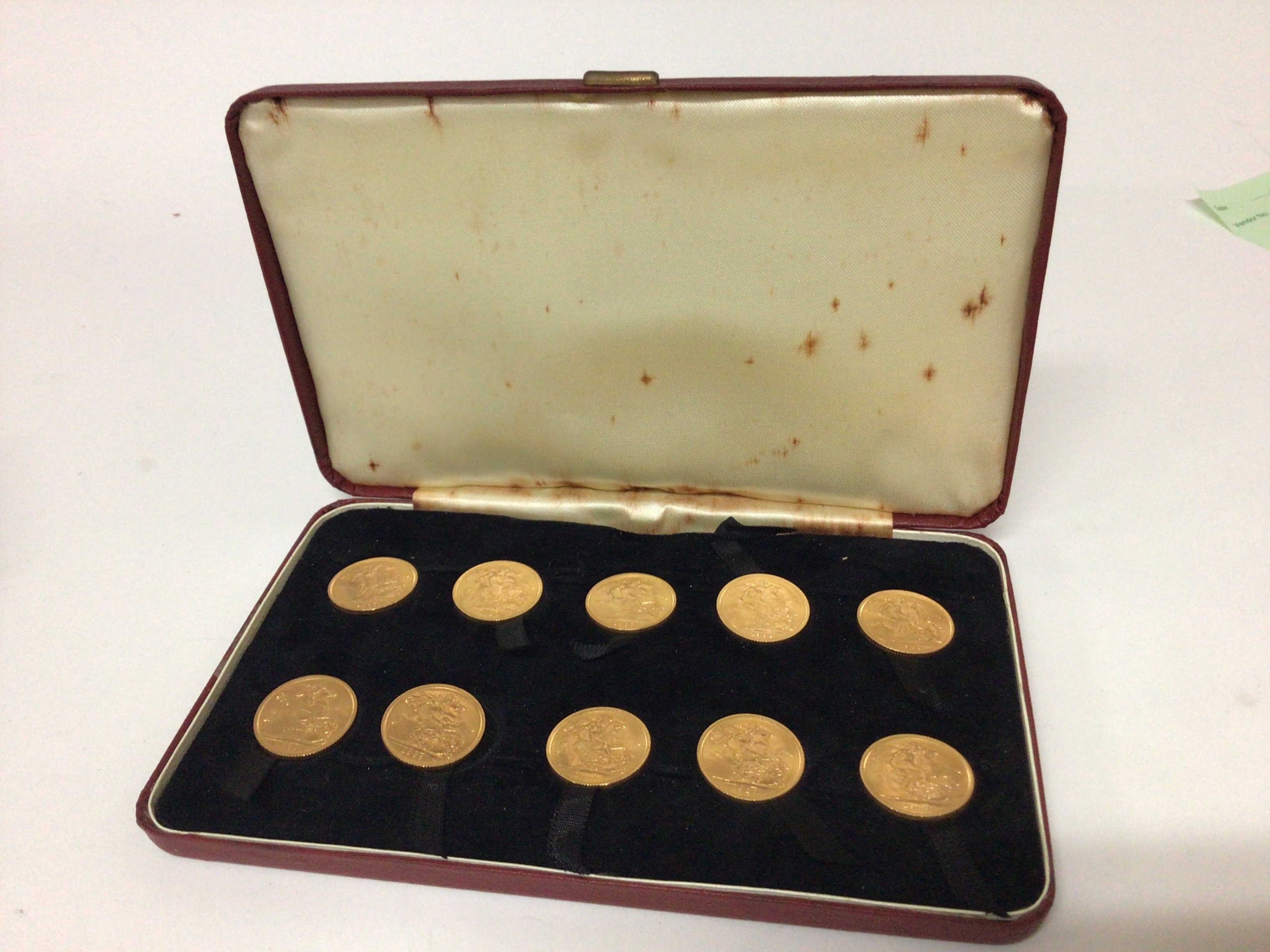 A case containing ten gold sovereigns Elizabeth II 1957-59 then 1962 two 1963 1964-68 (10)
