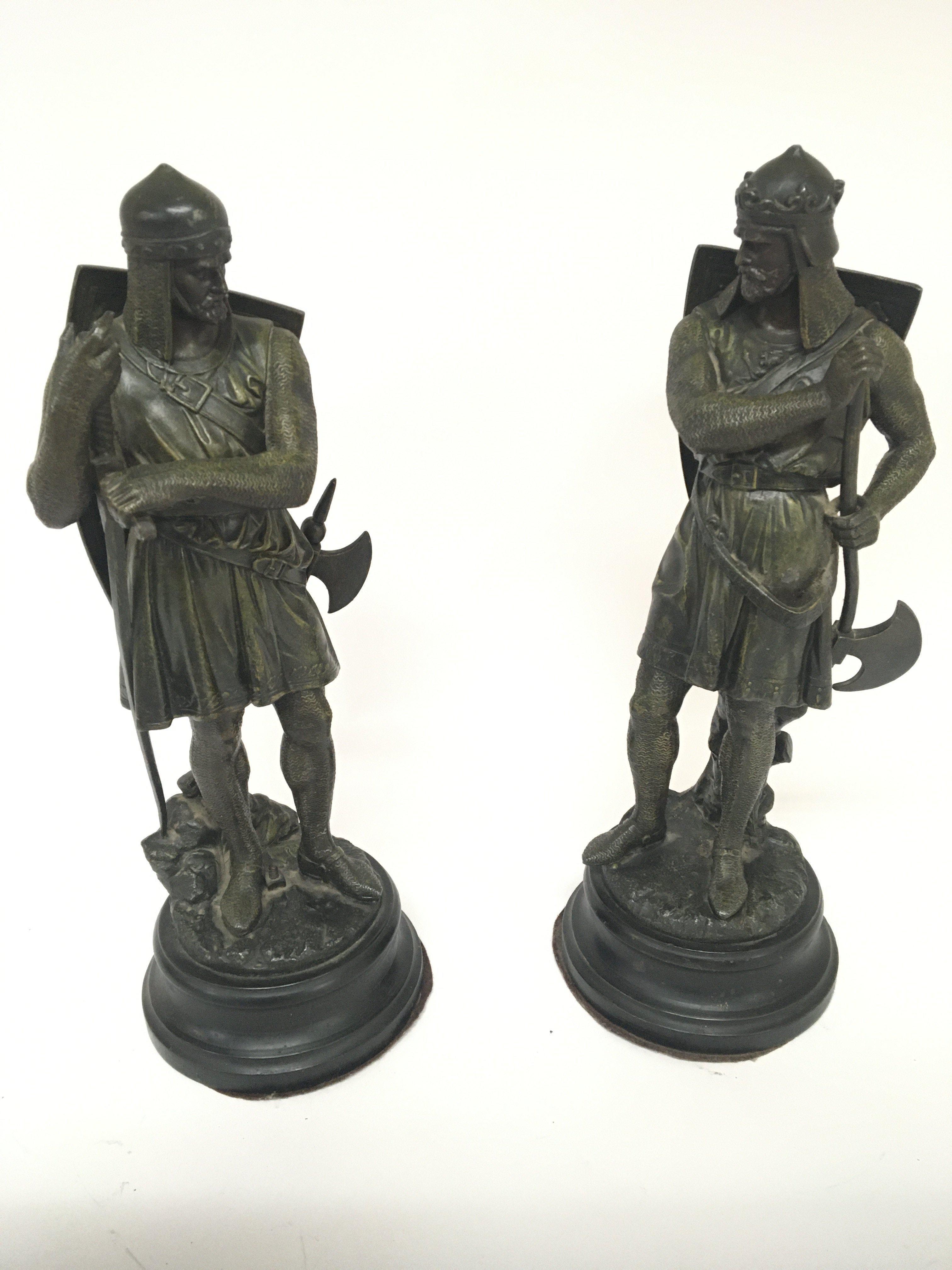 A pair of late Victorian Spelter figures of Crusader warriors. Height 39cm