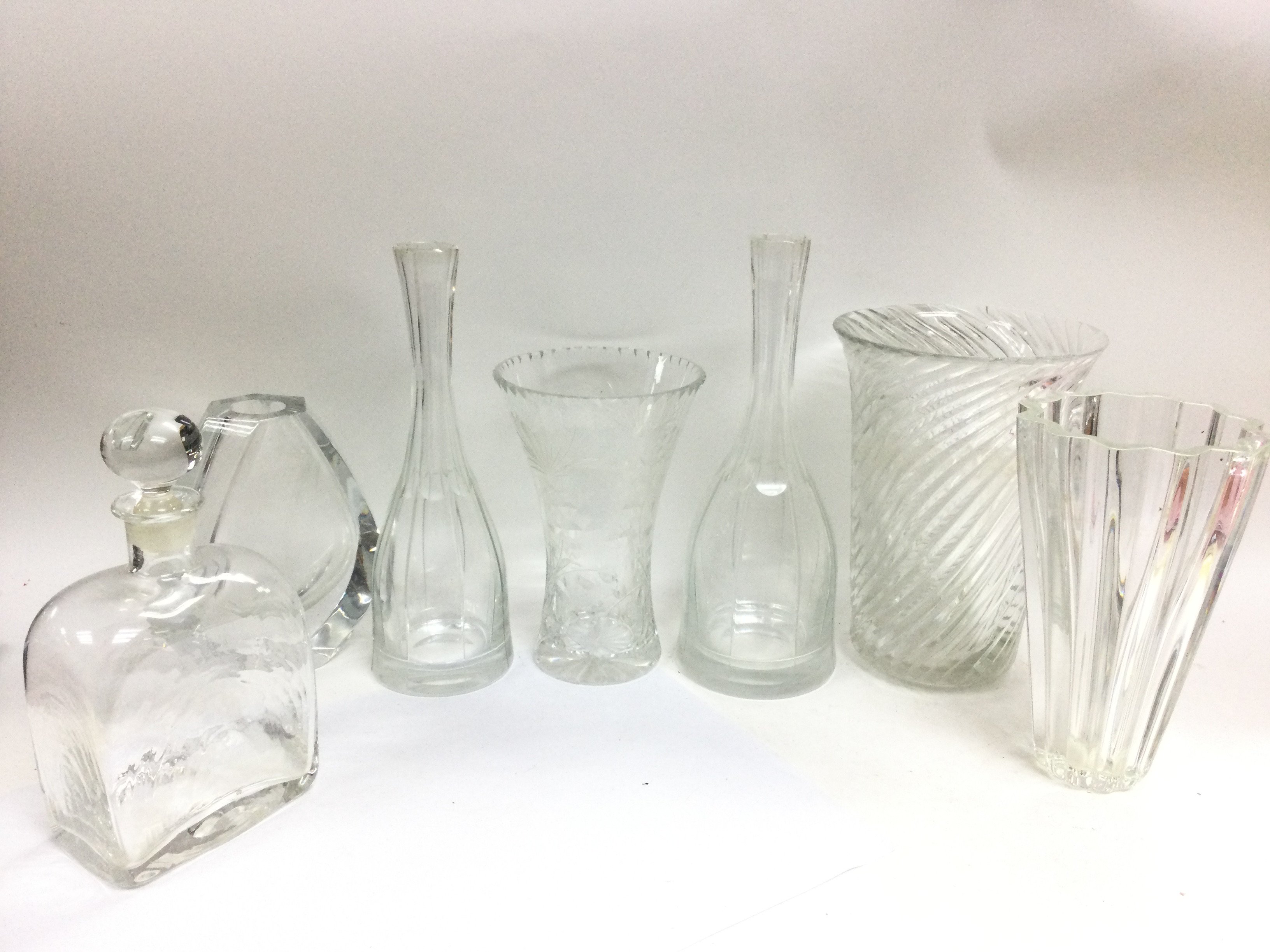 A collection of cut glass vases including Atlantis, Baccarat and others. 18 to 29cm tall. This lot cannot be posted. NO RESERVE